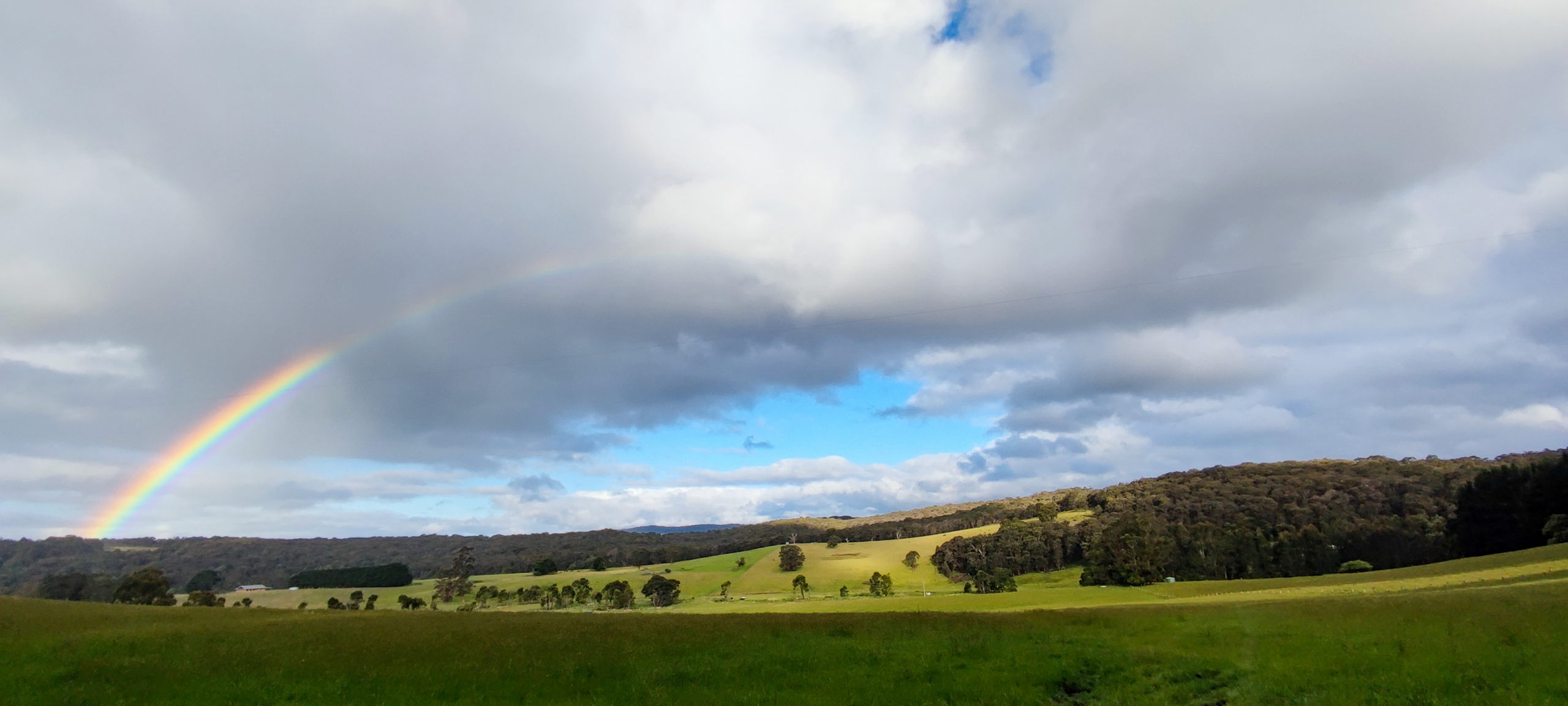 Etwas enttäuscht düse ich weiter zum Treffpunkt für die Tour zu den Schnabeltieren. Die Brauerei in Forrest. Es ist noch genug Zeit, um bei einem Bier auf Bruce, den Guide zu warten. Leider wird daraus nichts, da die Brauerei geschlossen ist. ☹️ Hmmm, ich könnte ja schon zum Lake Elizabeth fahren und eine Runde drehen. Vielleicht lässt sich ja bereits eines der Schnabeltiere blicken. Ich gehe dem Ufer entlang bis zum Platypus Beach. Und tatsächlich schwimmt in einiger Entfernung eines im Wasser. Cool, aber mit den Kanus der Tour kommt man sicher noch etwas näher. Also zurück zur Brauerei. Aus dem Augenwinkel sehe ich eine hübsche Aussicht und halte an. Was für ein schöner Regenbogen.