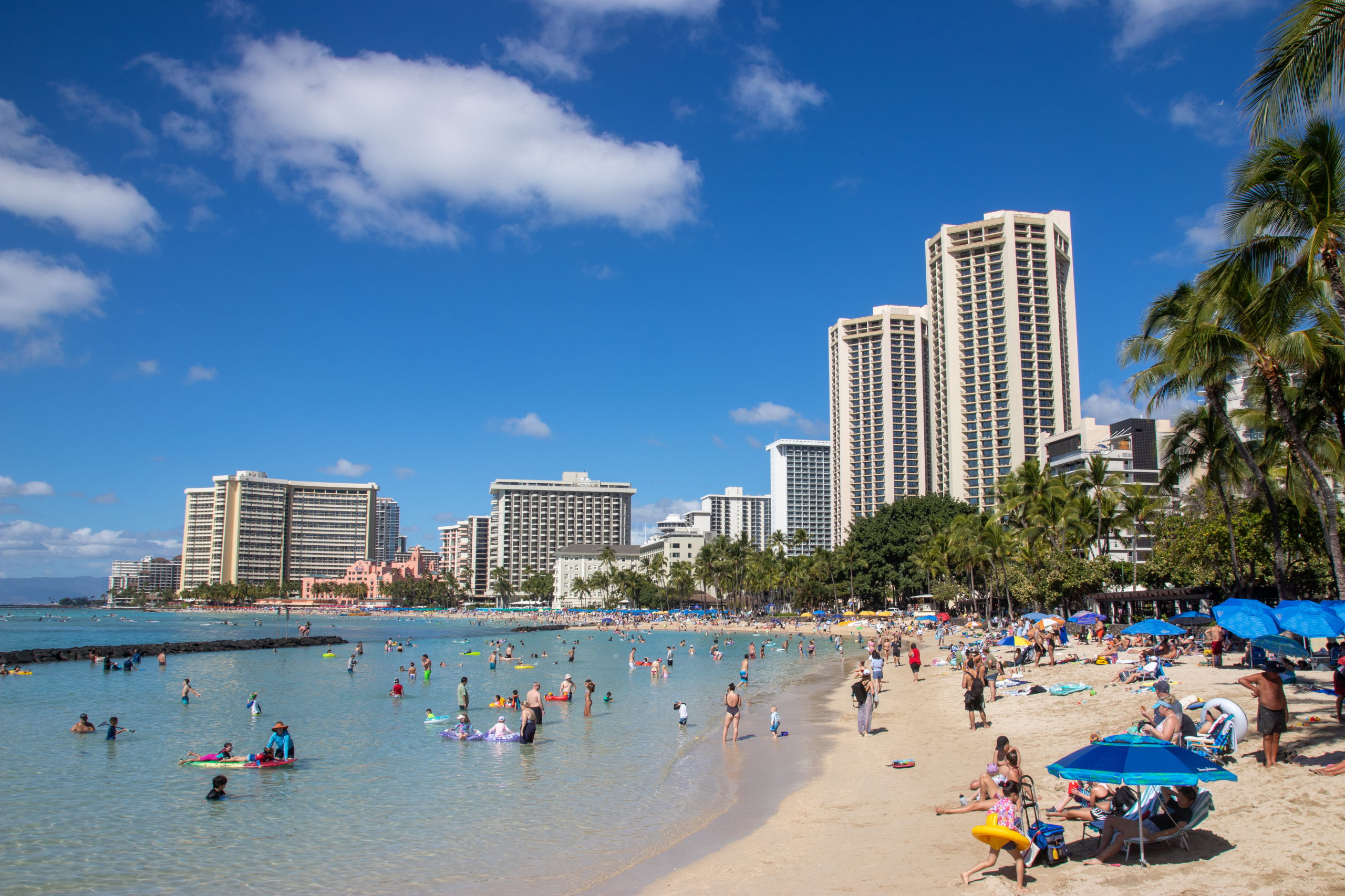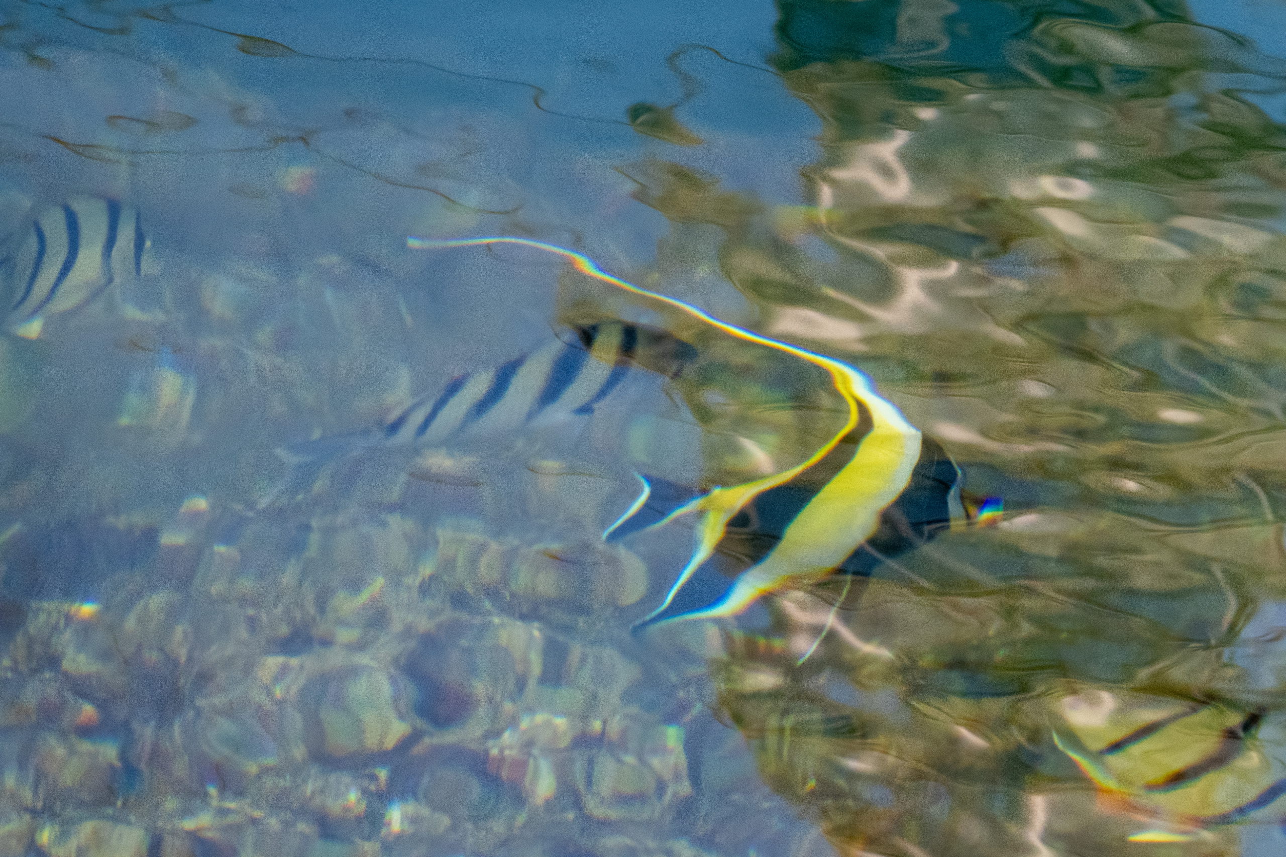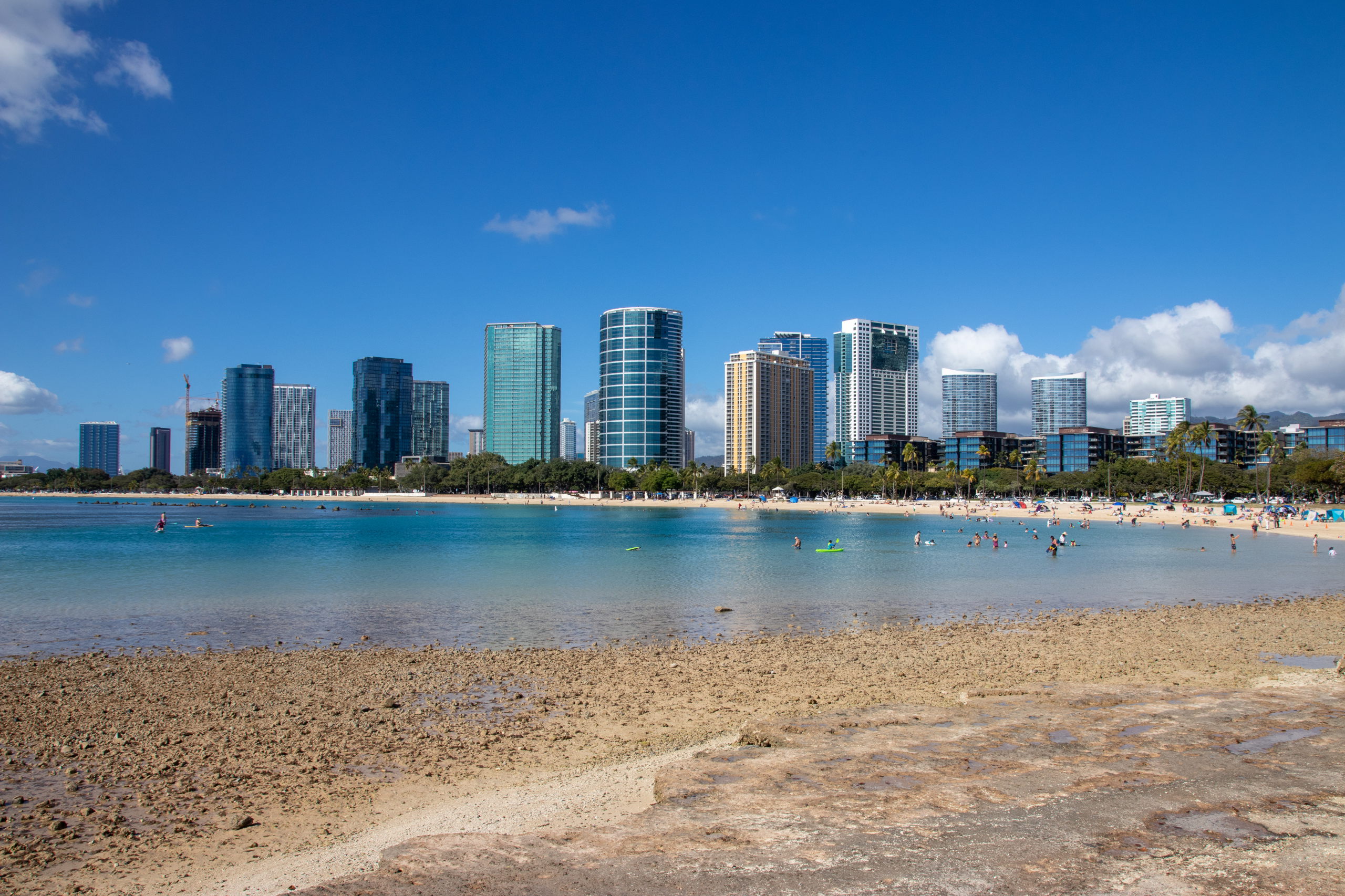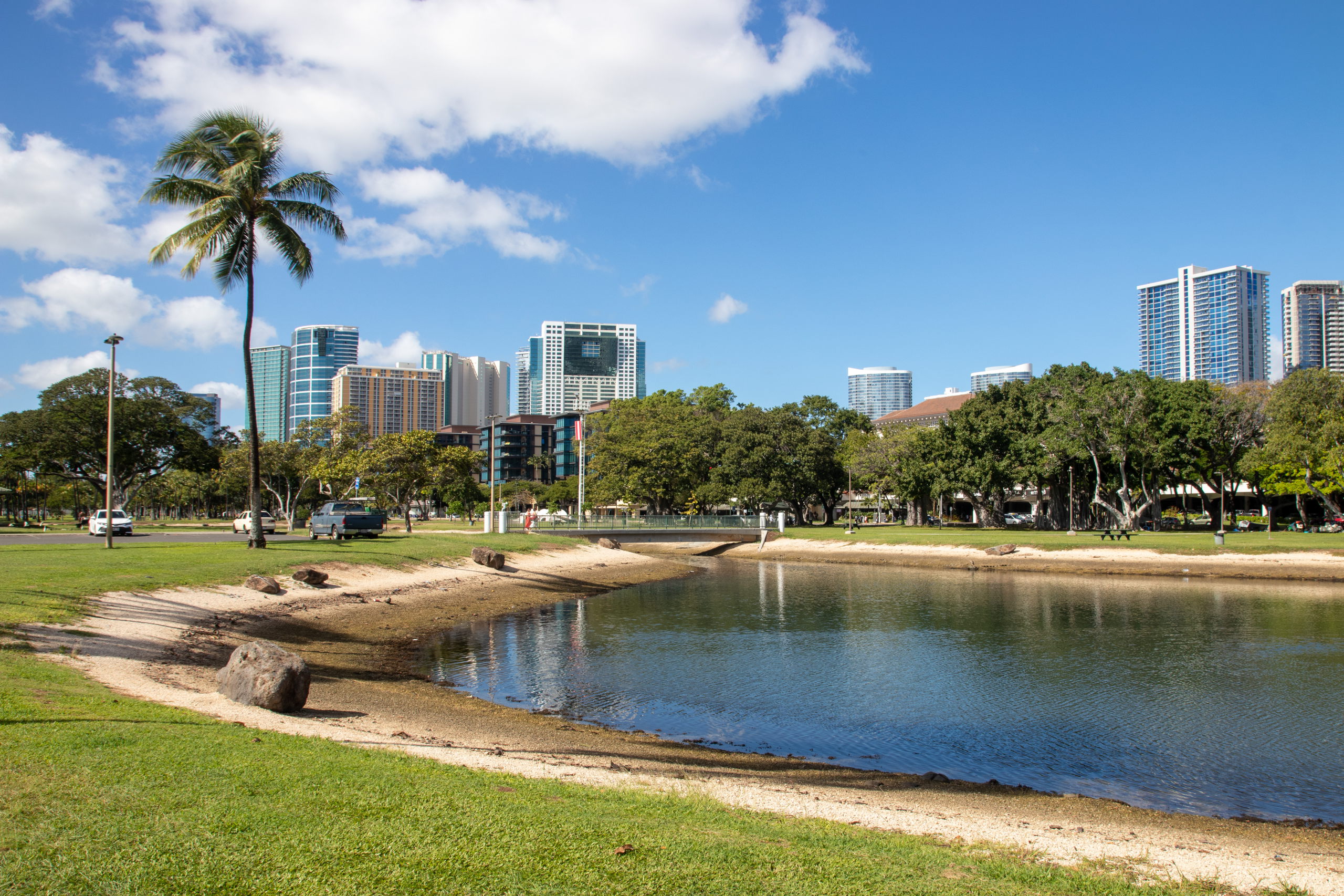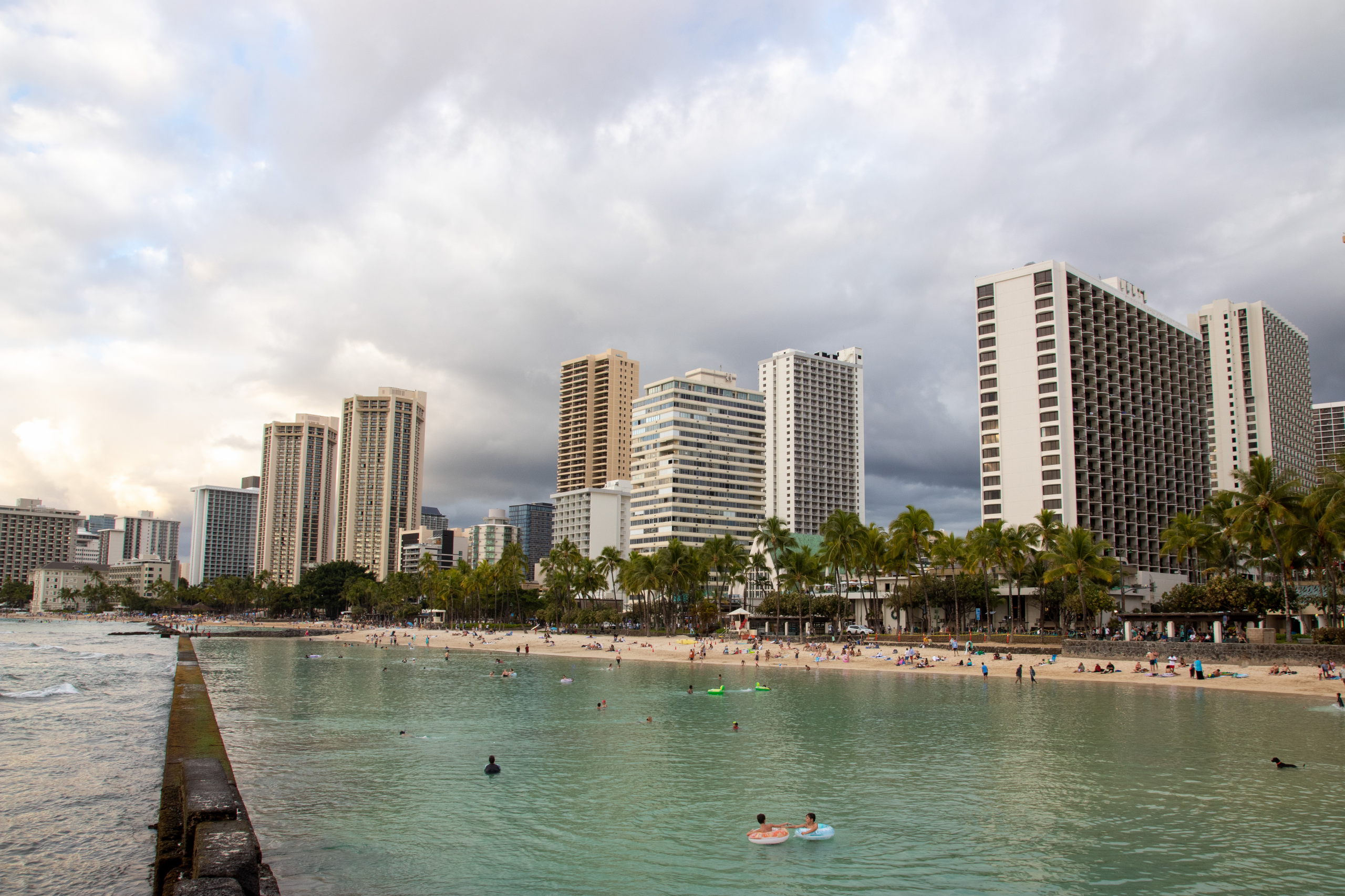 Zu Mittag mache ich mich vom Polynesian Hostel Beach Club auf, um die Stadt und den weltberühmten Waikīkī Beach zu erkunden. Nach nur zehn Minuten werde ich schon gefragt, ob ich Gras brauchen kann. Äääh, nö. Danke. Etwas Müdigkeit macht dich bereit, weshalb ich Kirsch-Cola versuche. Hoffentlich wirkt es besser als es schmeckt. Als ich die Hilton Lagoon erreiche, einen öffentlichen Badeteich vom gleichnamigen Hotel, ist das gewöhnungsbedürftige Getränk zum Glück schon alle. Hier ist einiges los, weshalb ich gleich weiter zur Marina gucke. Im Wasser tummelt sich die halbe Belegschaft von „Findet Nemo“. Ob hier auch gerade Fische aus einem Aquarium ausgebrochen sind?