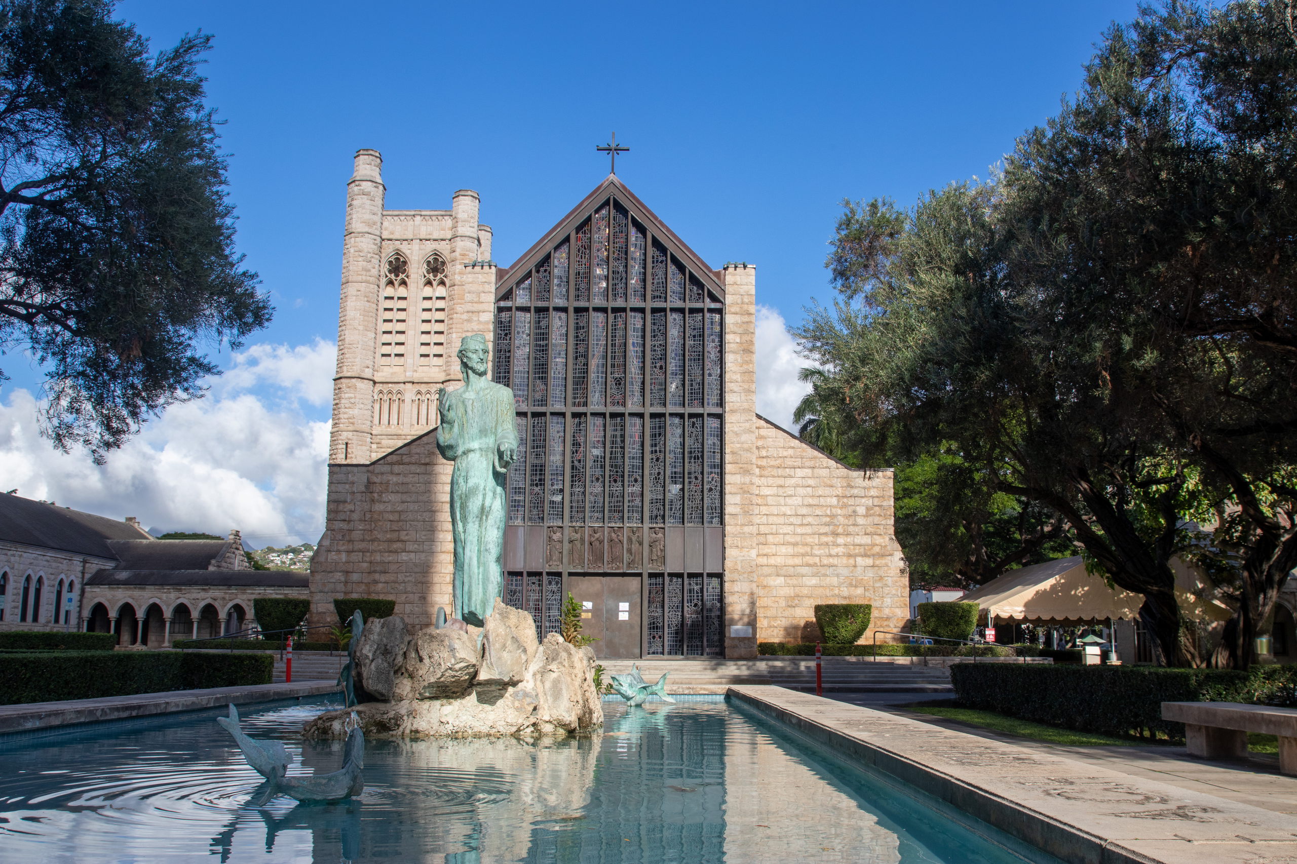 Ich schlendere einen kurzen Abstecher hinaus zur Magic Island, eigentlich einer Halbinsel, und sehe eine junge Frau in der Wiese liegend schlafen. Sie hat die Reste von einem Brot in der ausgestreckten Hand und ein Dutzend Vögel pickt es ihr aus der Hand. Wäre ein cooles Foto, aber etwas indiskret und nicht nett. Also lasse ich es bleiben. Die Positionsanzeige auf Google Maps bewegt sich heute extrem langsam. Ich lasse mir zwar echt viel Zeit, aber das kann es nicht sein. Dann bemerke ich, dass die Distanz in Meilen angezeigt wird. Klar, ich bin ja in den USA. Das erklärt einiges. Gegen drei Uhr erreiche ich endlich den Aloha Tower, der leider geschlossen ist. Schade, aber irgendwie hatte ich schon so eine Vorahnung. Also weiter zum Iolani Palace, der echt nett anzusehen ist und in einem schönen Park mit einem Mix aus Laubbäumen und Palmen liegt. Weiter geht es zum Washington Palace und zur Cathedral of St. Andrew.