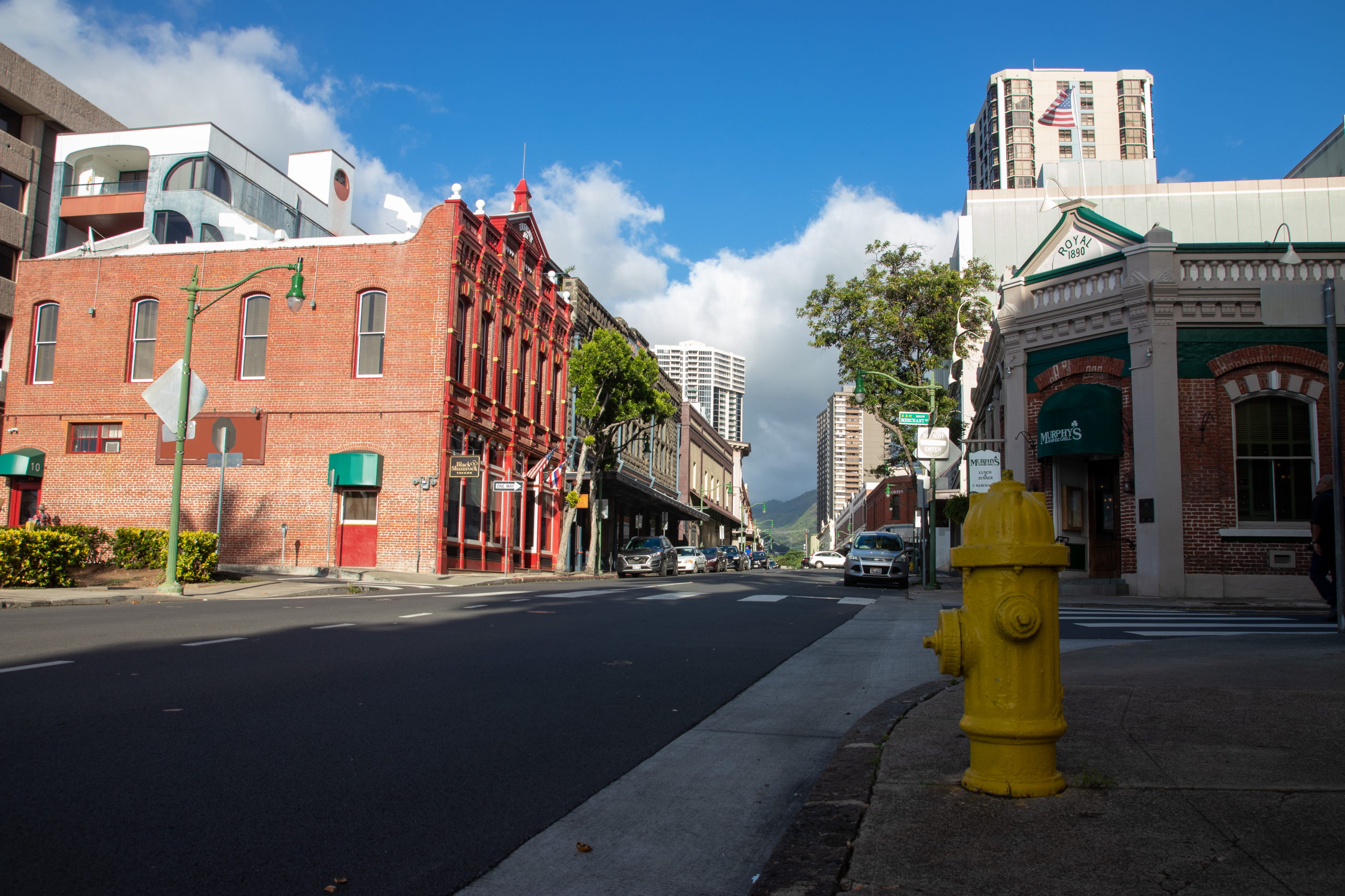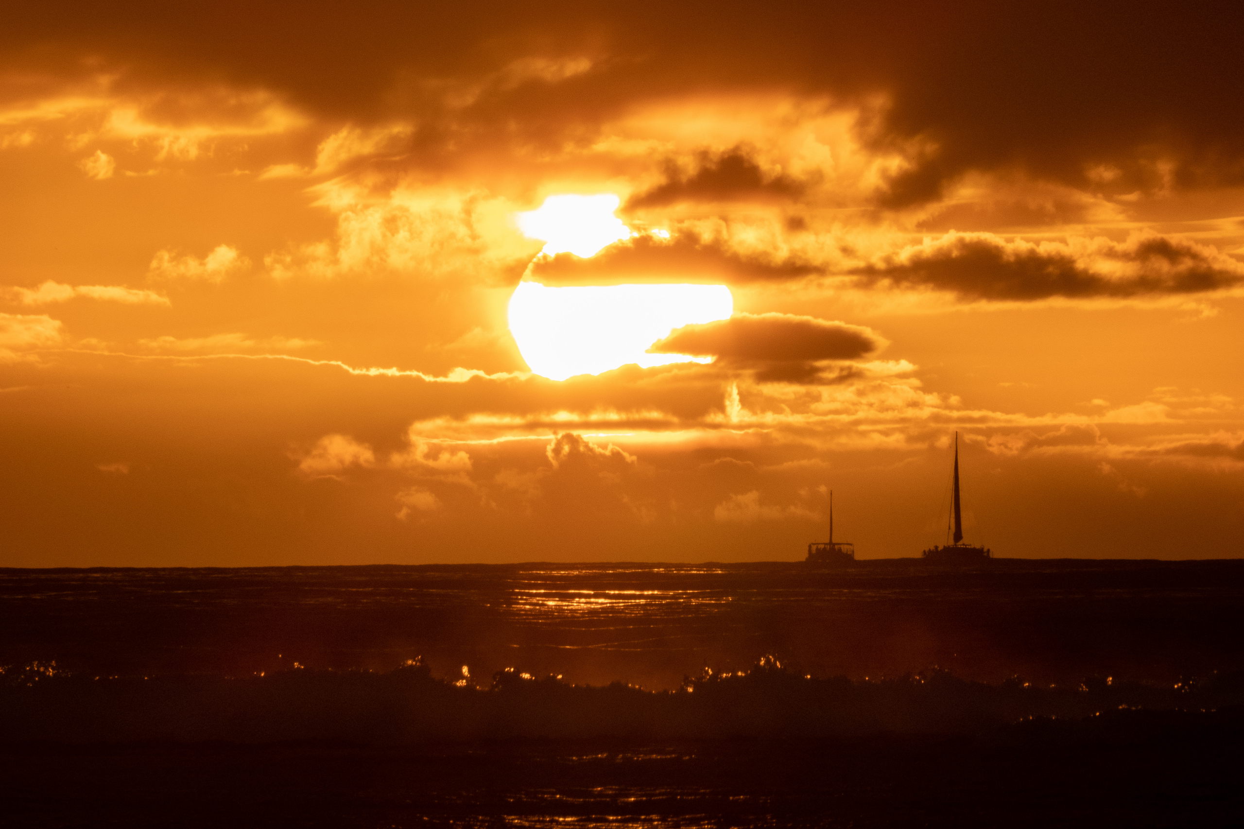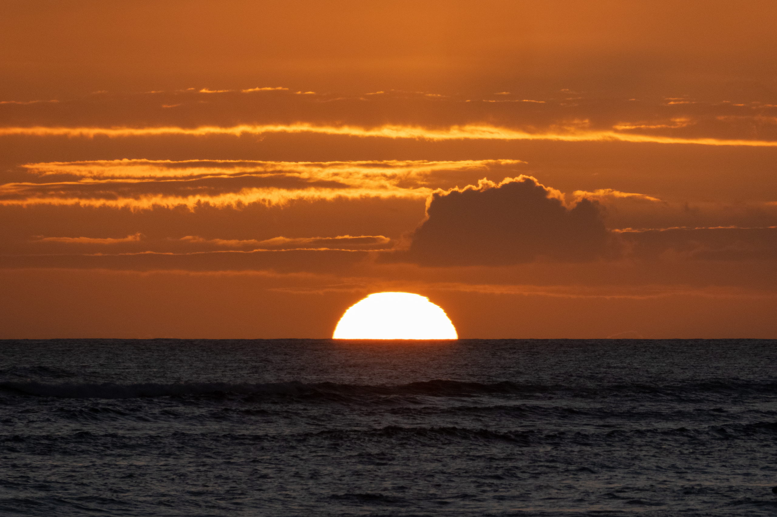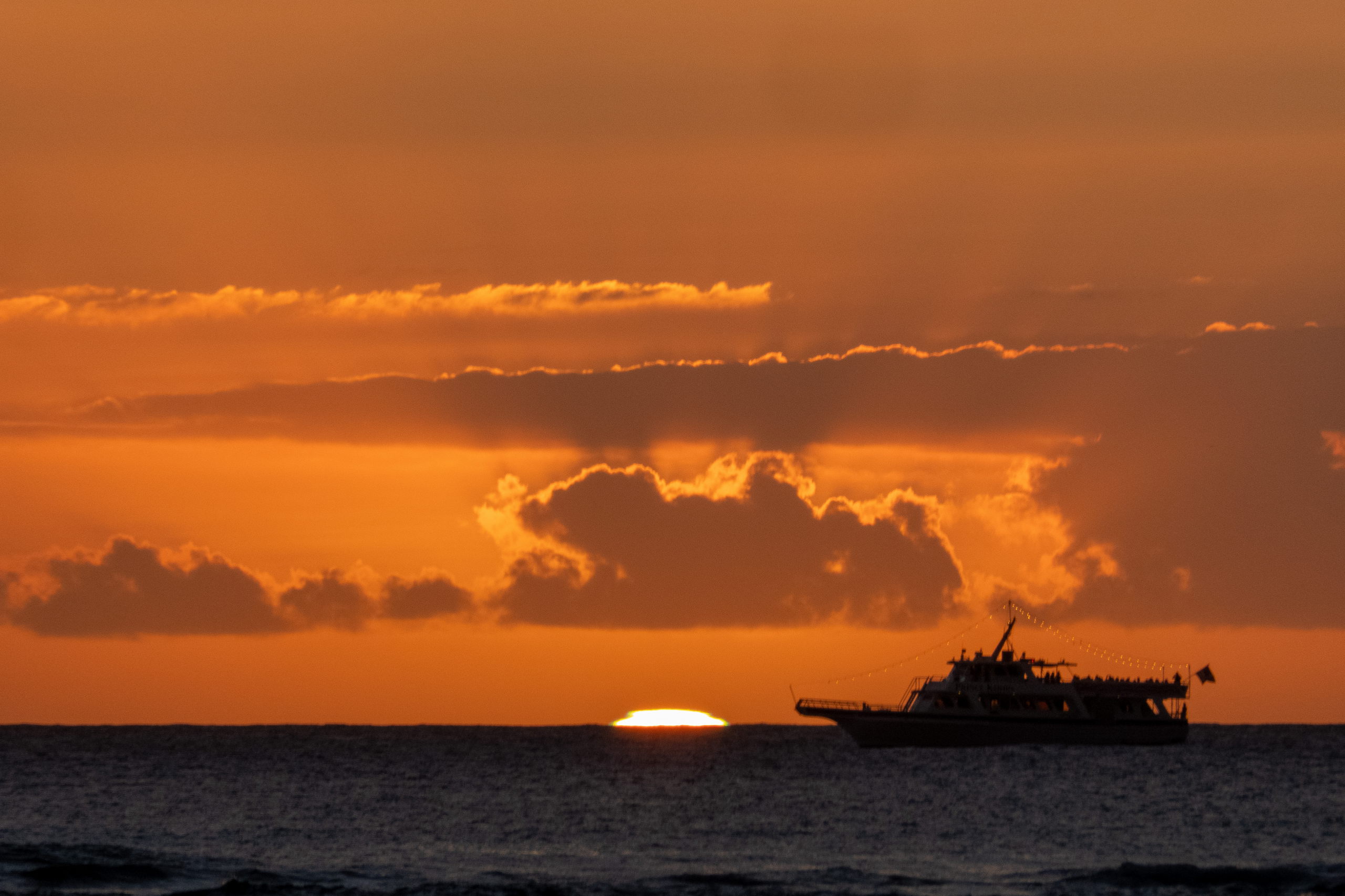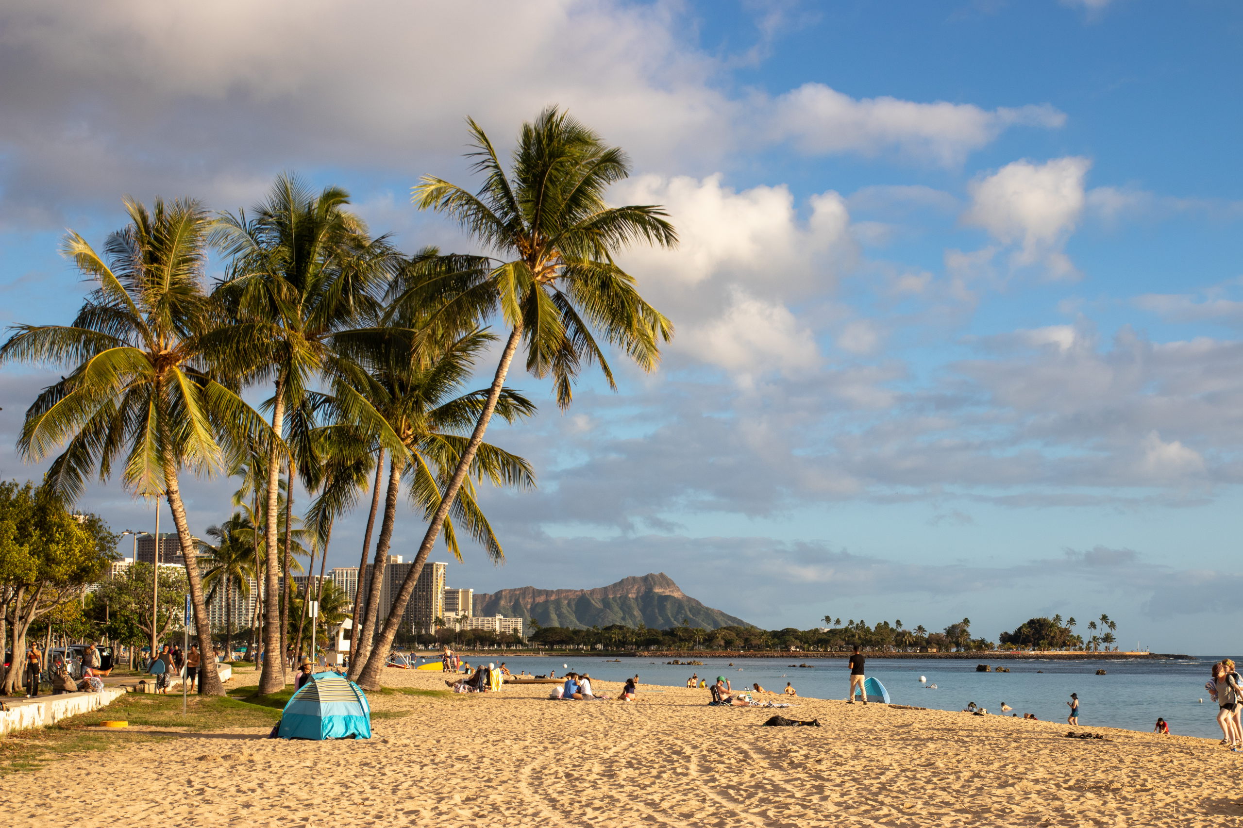 Da mich bereits der Hunger plagt, mache ich noch einen Umweg nach Chinatown. Leider hat fast alles geschlossen und das Viertel hat ohne das Gewusel wenig Flair. Schade. Zumindest gibt es in einem Shop Kokoswasser. Der Rückweg über vier Meilen zieht sich und da ich nun viel nördlicher als in Australien bin, ist der Sonnenuntergang bereits um sechs Uhr. Gefühlt hat sich ganz Honolulu am Strand versammelt, um sich das Schauspiel anzusehen. Meine Wenigkeit natürlich auch.