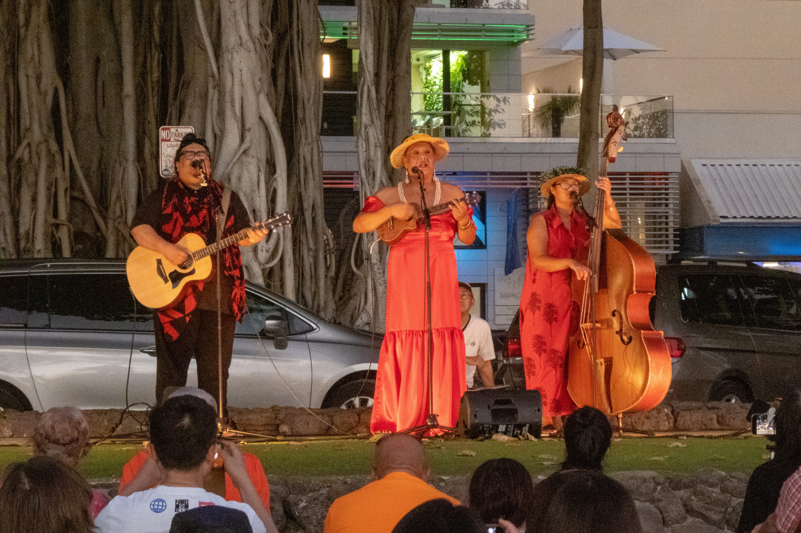 Mit dem Bus geht es zurück und ich erreiche pünktlich zum Sonnenuntergang den Waikīkī Beach. Nur ein Stück weiter beginnt eine öffentliche Hula-Show. Es ist interessant, es einmal gesehen und gehört zu haben, aber das Hula-Gejammere ist definitiv nicht meins und ziemlich langweilig. Nach einer Viertelstunde verziehe ich mich, besorge etwas zum Futtern und setze mich damit in den Gemeinschaftsbereich vom Hostel.