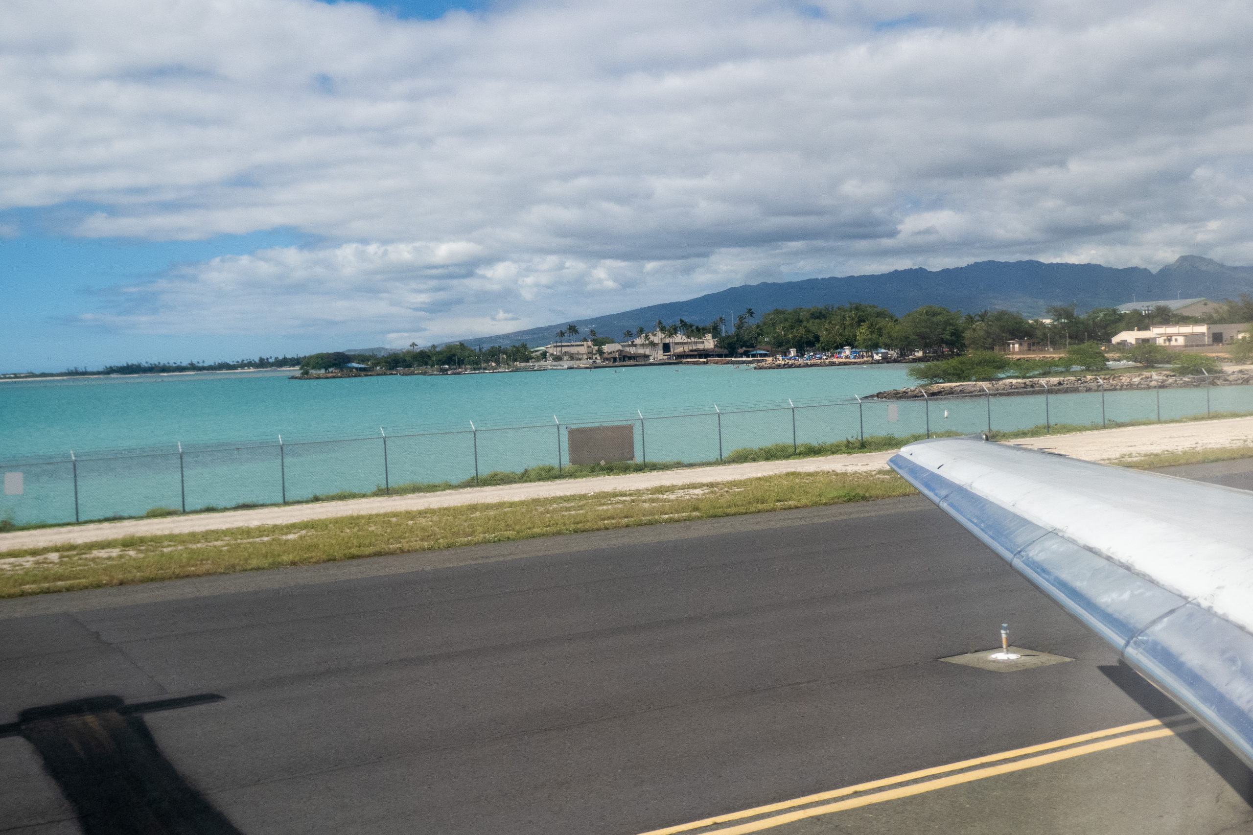 Heute ist bereits um halb acht Uhr Tagwache. Ich bin steif wie ein Brett. Es wird echt Zeit, wieder mit dem Trainieren zu beginnen. Nachdem das Zelt abgebaut und alles verräumt ist, düse ich im Regen in die Nähe vom Flughafen von Honolulu, tanke voll und treffe mich mit dem Vermieter des Autos. Die Rückgabe ist lediglich die Schlüsselübergabe. Fertig. Netterweise fährt er mich noch zum Terminal. 👍 Zeit für das Frühstück, bestehend  aus den Resten der Verpflegung. Also Erdnussbutterbrote. Happy, da voller Fett und Zucker gehe ich zum Self Check-In und durch die Sicherheitskontrolle. Wieder einmal habe ich eine volle Wasserflasche dabei. Und tschüss. Grrr, wie dämlich kann man sein? Gegen Mittag sitze ich am Gate und recherchiere noch etwas über Kauai. In meinem Kopf formt sich ein grober Plan. Perfekt.
