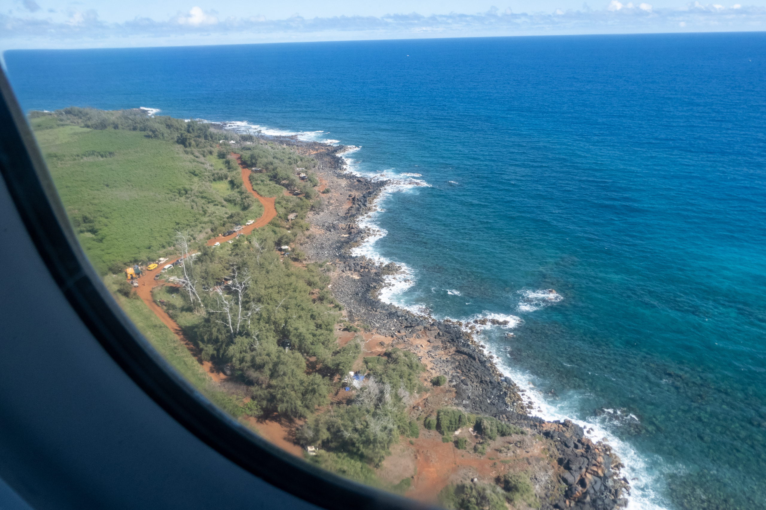 Fast pünktlich hebt das Flugzeug ab und kaum hat der Passionsfruchtsaft den Magen erreicht, beginnen wir schon mit dem Sinkflug und landen um halb zwei Uhr in Lihue, der nördlich gelegenen Insel Kauai, auch Garteninsel genannt und die älteste der hawaiianischen Inseln. Direkt beim Ausgang wartet bereits ein Shuttle von Turo und bringt uns zu einem Parkplatz, wo die Autos ausgefasst werden. Die meisten sind mit Zahlencode zu öffnen. Bei meinen ist die Tür offen und der Schlüssel liegt in der Mittelkonsole. Easy. Von der Vermieterin bekomme ich die Info, dass das Auto vor der Rückgabe in einer Waschanlage zu waschen und innen zu reinigen ist. Hmmm, das klingt nicht koscher. Ich frage lieber mal beim Support von Turo nach, ob das legitim ist. Dann kann ich der Dame immer noch sagen, dass ich diese Info gerne vor der Buchung gehabt hätte.