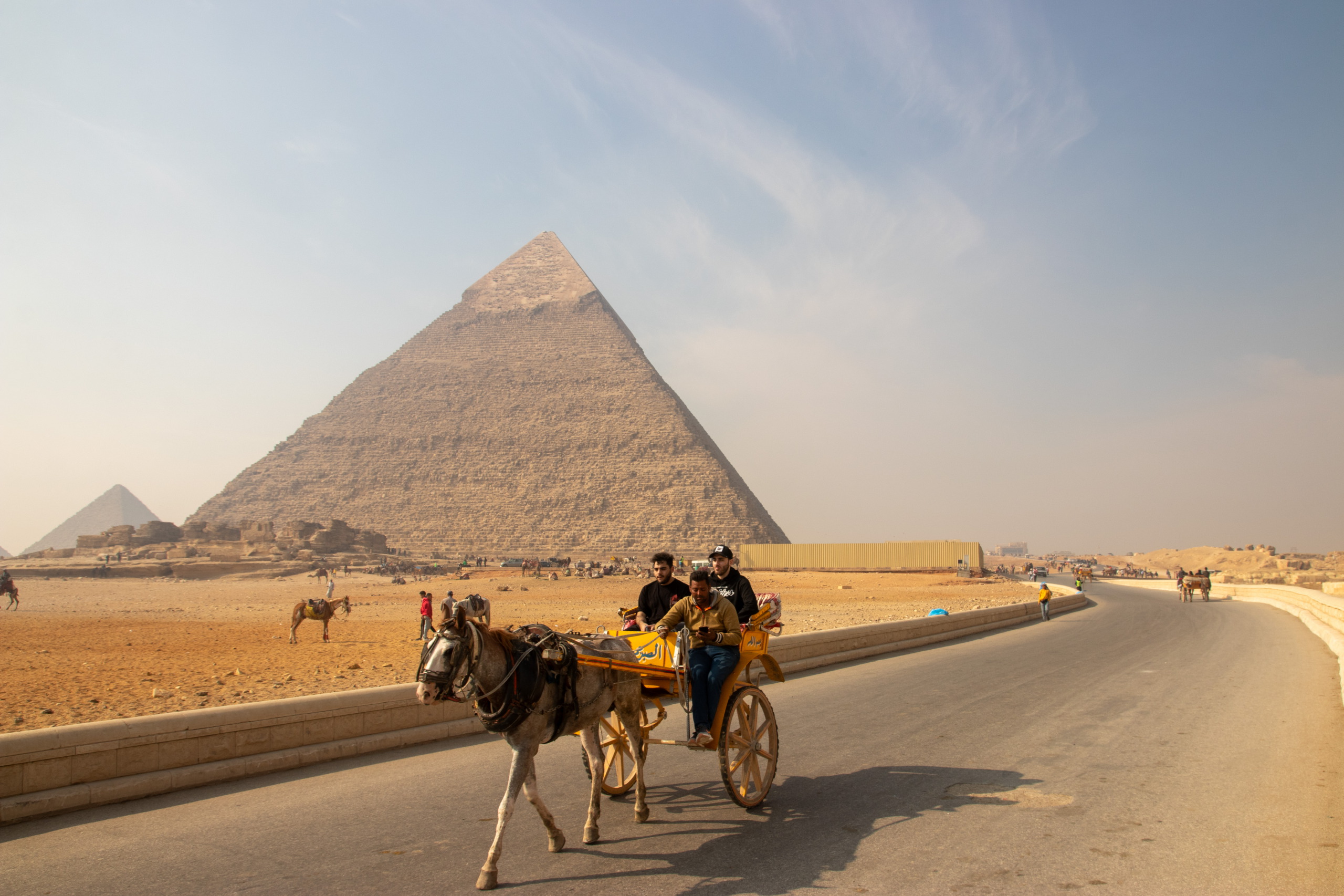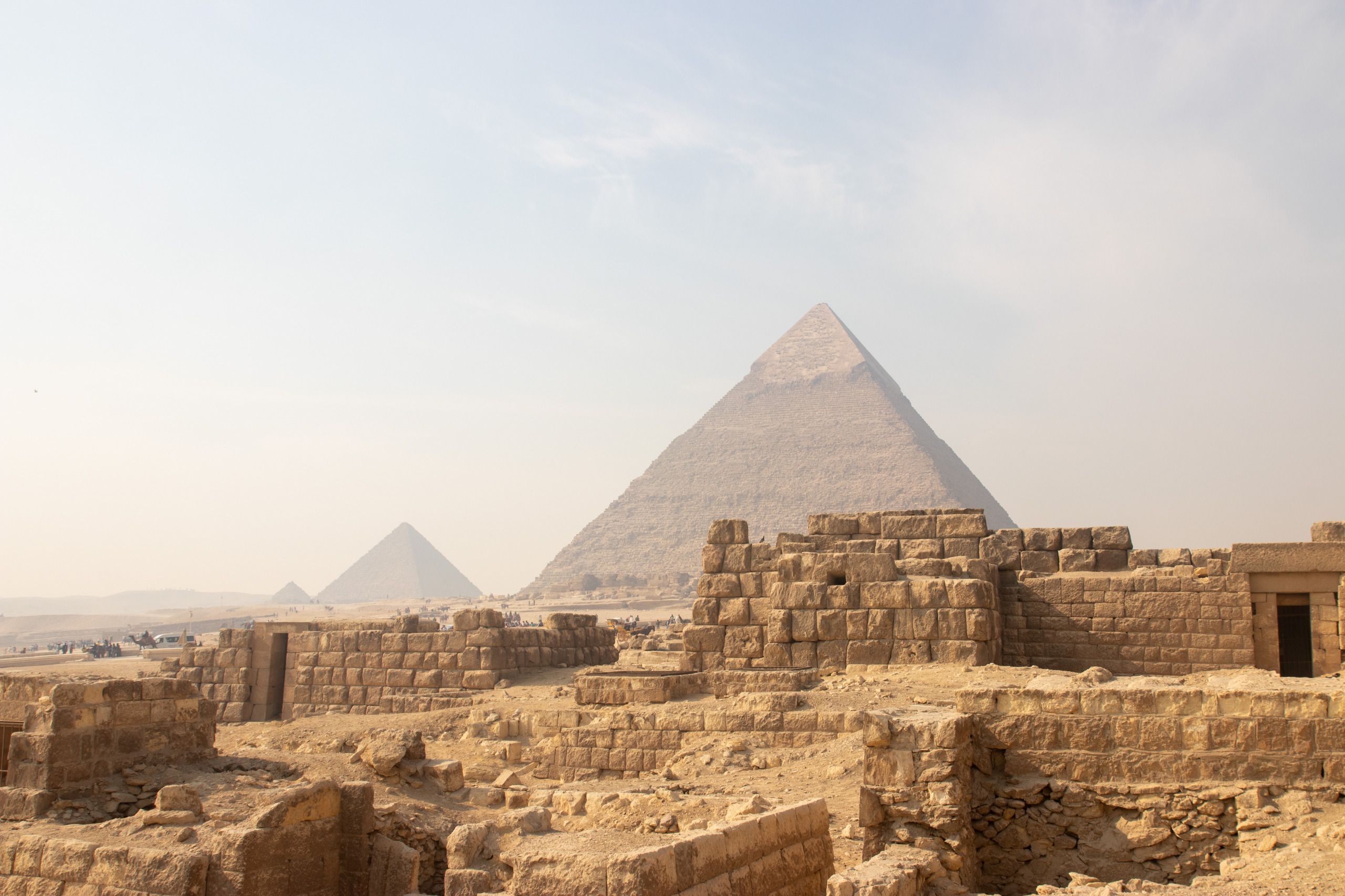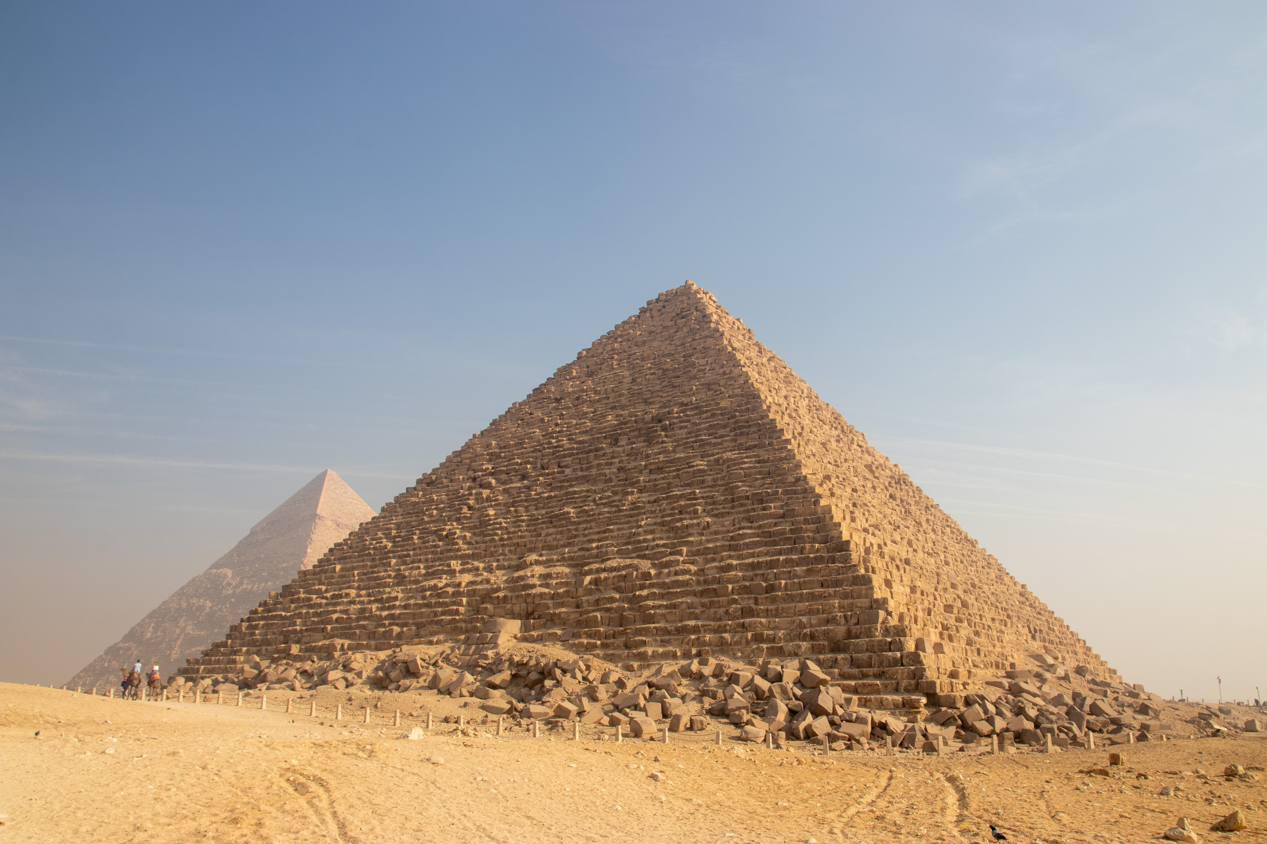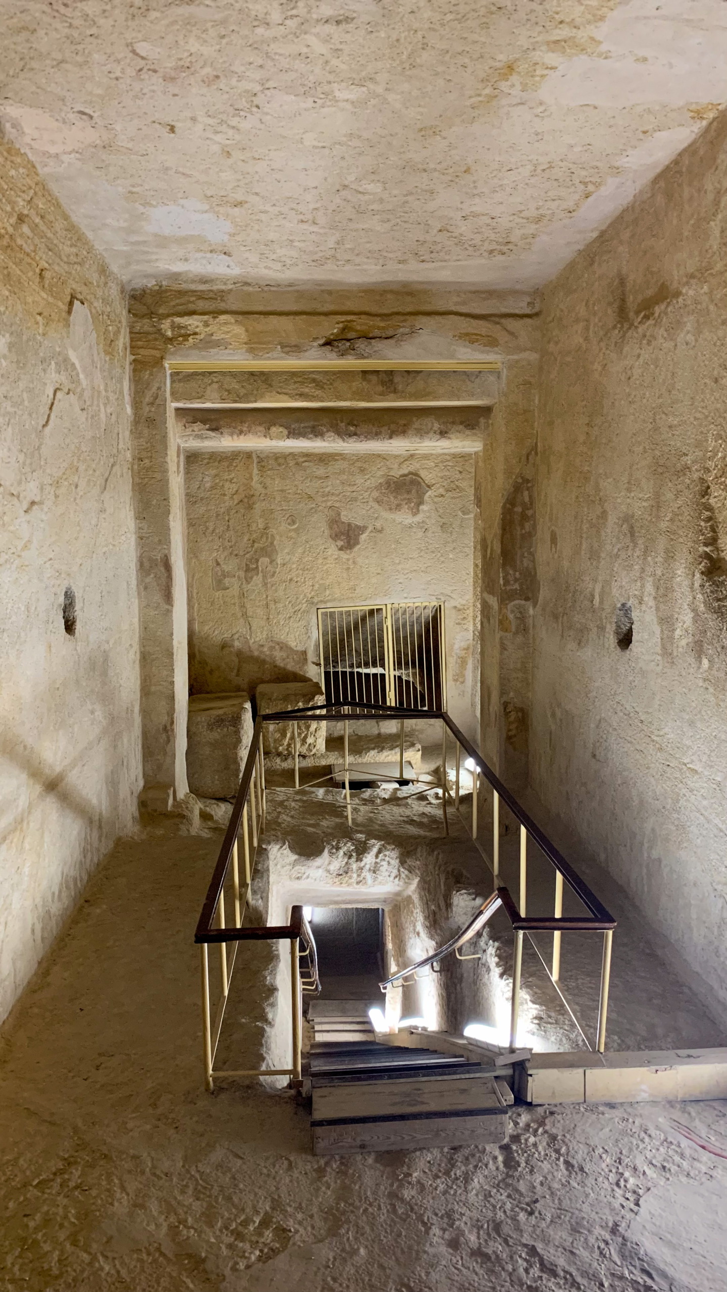 Noch sind nicht viele Leute unterwegs und so starte ich an der Sphinx vorbei hoch in Richtung Cheops-Pyramide. Davor aber noch schnell zum Grab der Hetepheres I. Über einen steilen, engen Gang geht es einige Meter hinunter zur Grabkammer. Dabei muss ich fast auf allen Vieren kriechen. Okay, damals waren die Leute zwar kleiner, aber so klein waren sie sicher auch nicht. 😁 Die Grabkammer ist nicht gerade spektakulär, dafür im allgemeinen Ticketpreis enthalten. Es ist unangenehm warm hier drinnen. Nachdem ich mich wieder ans Tageslicht gekämpft habe, geht es weiter um die Cheops-Pyramide herum. Hier sind schon deutlich mehr Leute, die mit Bussen angekarrt werden. Also schnell ein paar Stufen an der Pyramide hoch und in den nächsten engen Schlurf hinein. Diesmal geht es allerdings aufwärts zur Grabkammer. Und das ist sogar im Stehen möglich. 👍 Wenn auch die Grabkammer sehr unspektakulär ist, ist es dennoch faszinierend, dass sie bereits vor 4500 Jahren erbaut wurde. Nun geht es weiter zur Mykerinos-Pyramide und hinunter zur Grabkammer. An einigen Wänden sind sogar Malereien zu sehen. Cool. Wieder draußen angekommen, fragen mich mehrere “Kamelfahrer”, ob ich nicht zum Aussichtspunkt hoch möchte. Klar möchte ich, aber zu Fuß. Einer sieht das nicht recht ein und flucht oder schimpft mir noch nach. Na dann erst recht nicht.