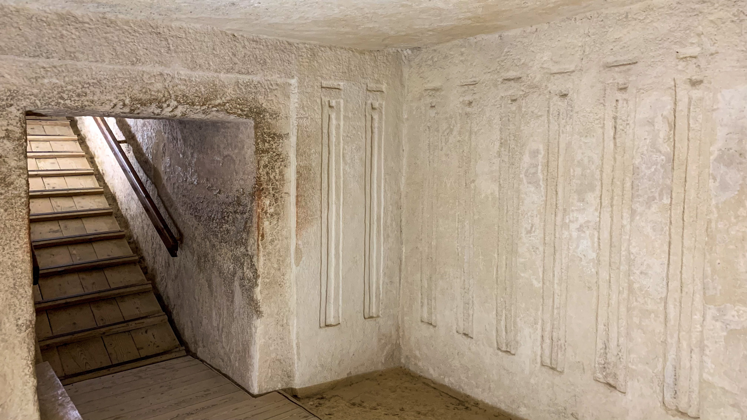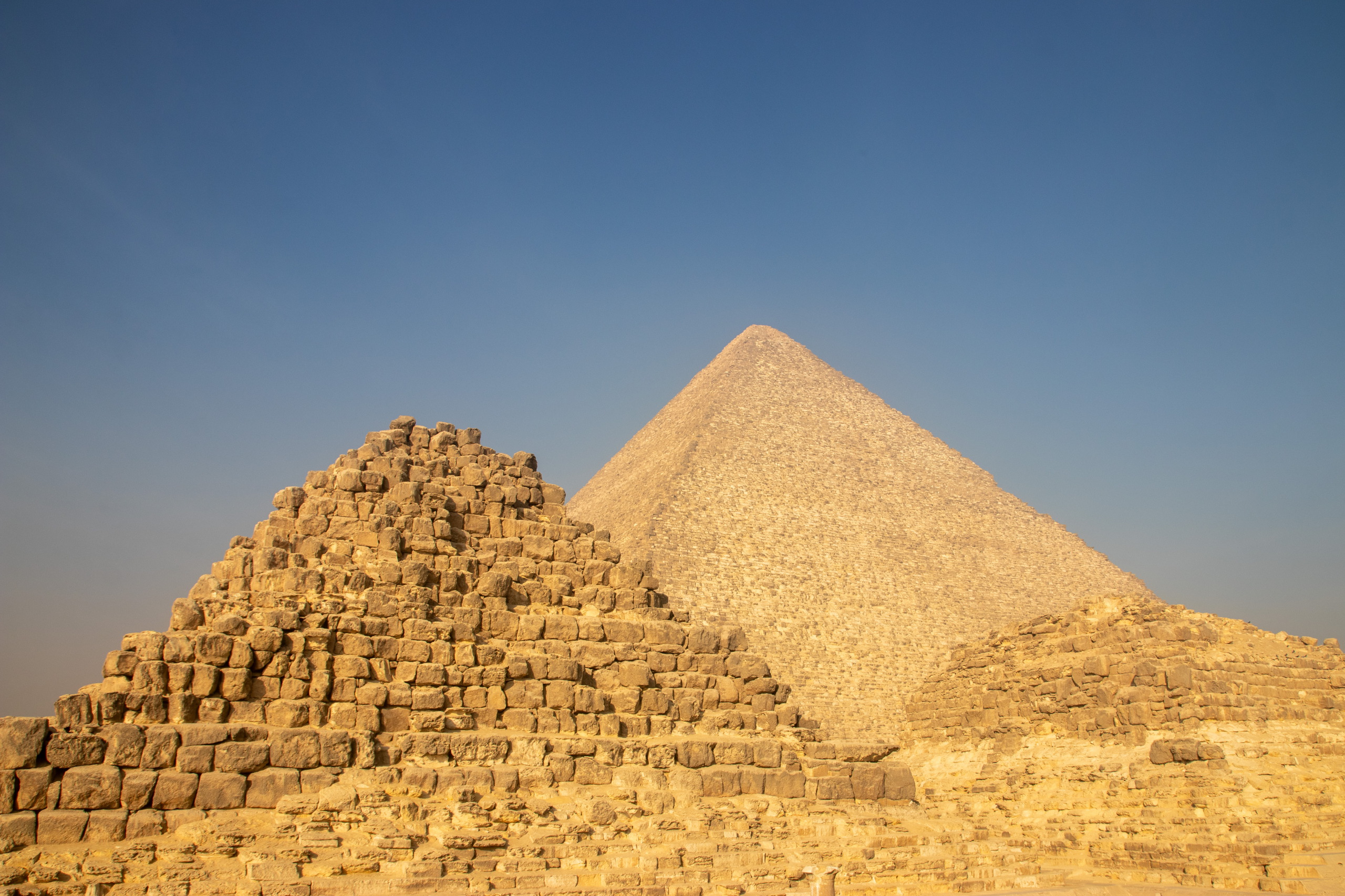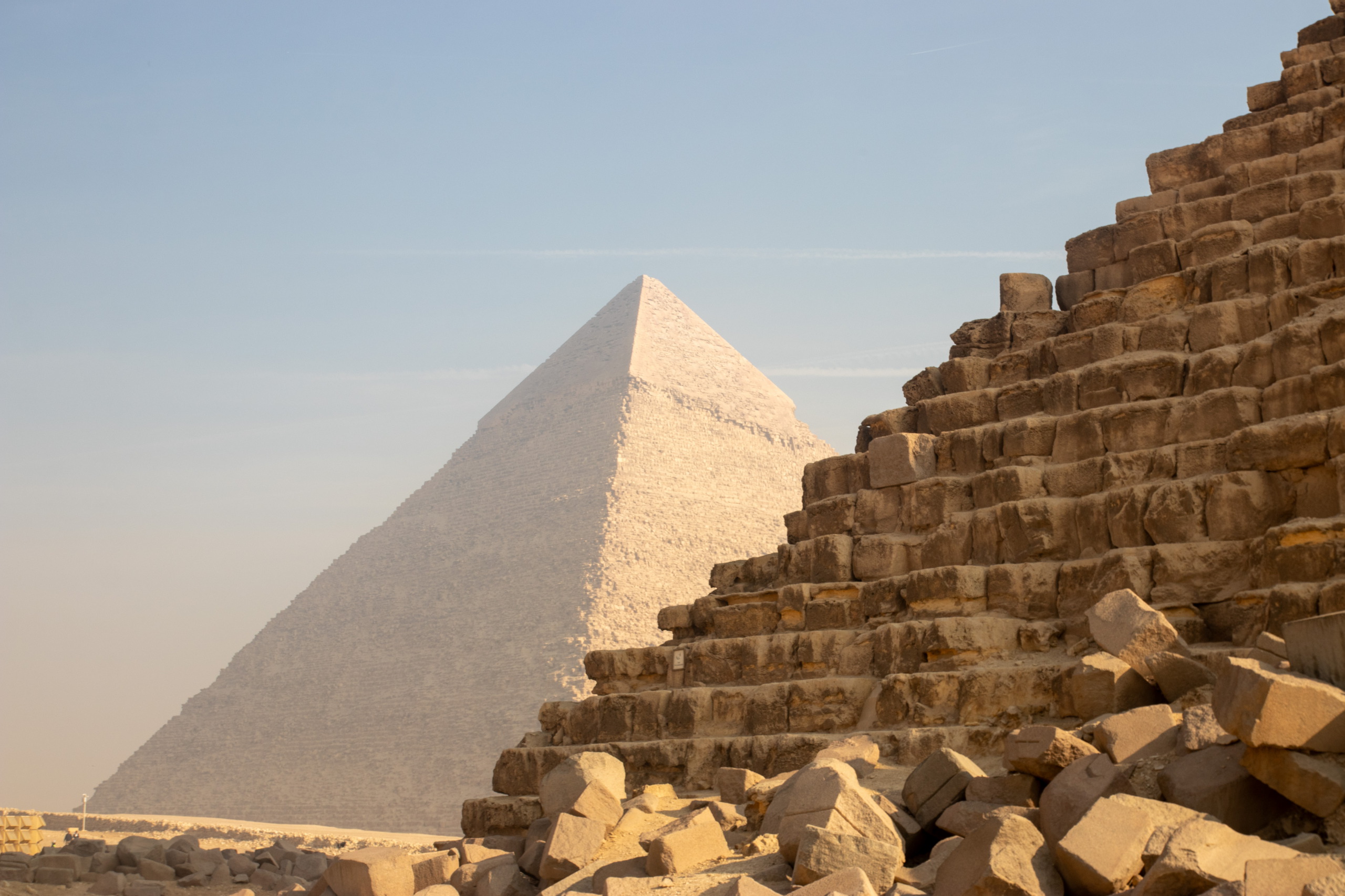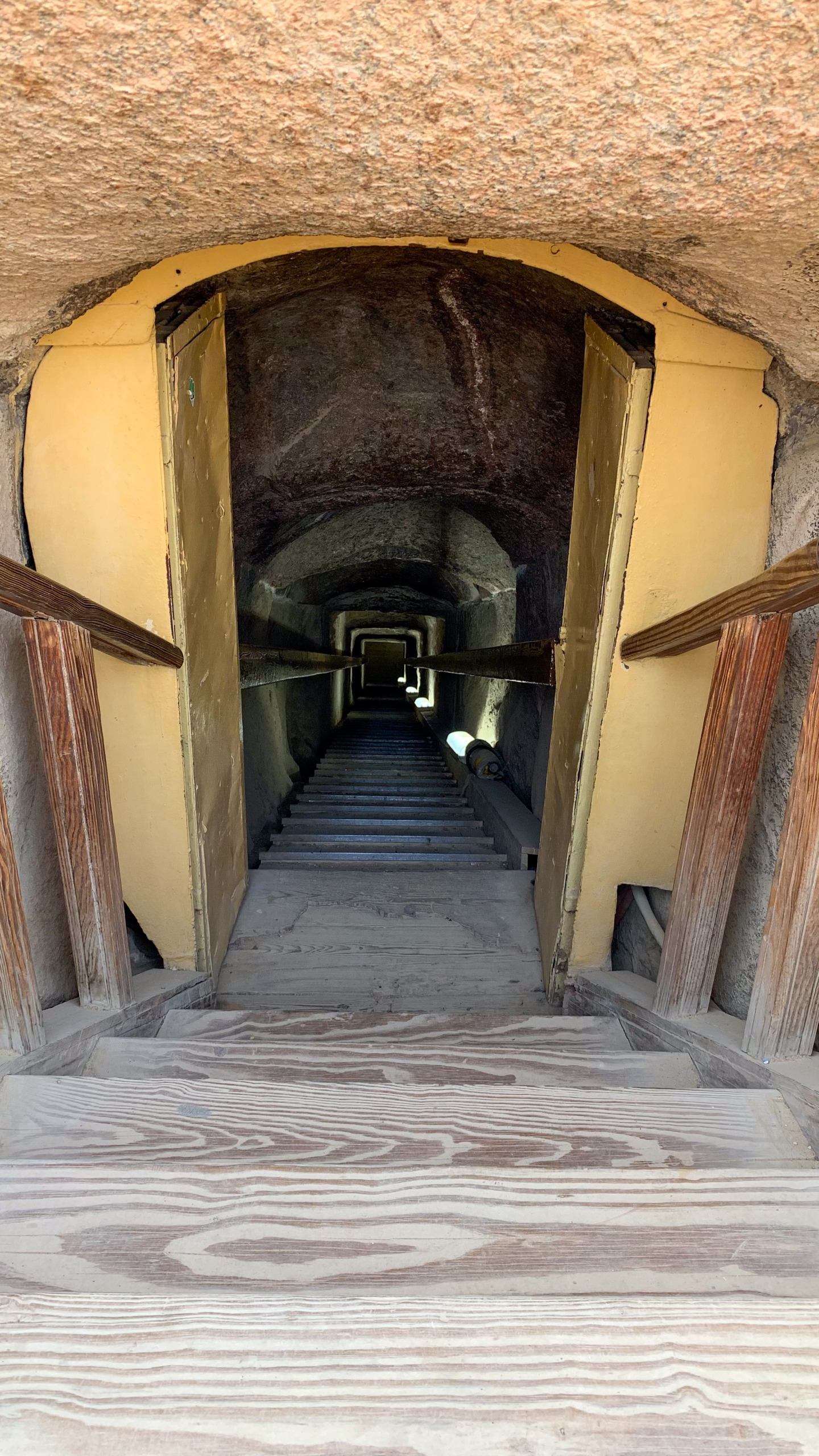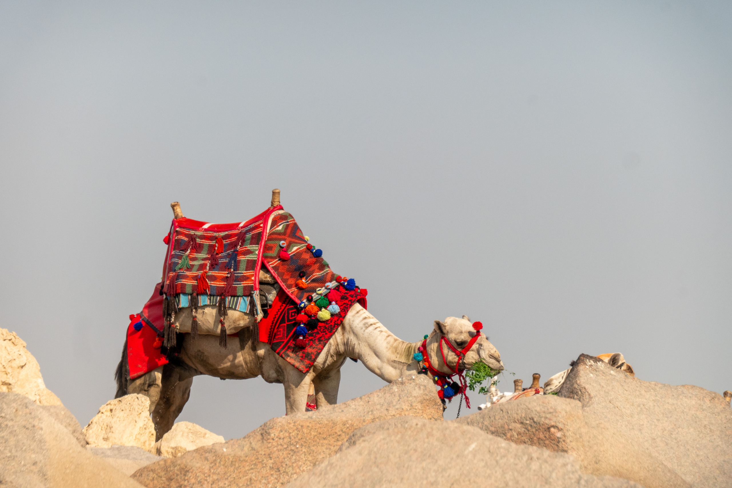 Noch sind nicht viele Leute unterwegs und so starte ich an der Sphinx vorbei hoch in Richtung Cheops-Pyramide. Davor aber noch schnell zum Grab der Hetepheres I. Über einen steilen, engen Gang geht es einige Meter hinunter zur Grabkammer. Dabei muss ich fast auf allen Vieren kriechen. Okay, damals waren die Leute zwar kleiner, aber so klein waren sie sicher auch nicht. 😁 Die Grabkammer ist nicht gerade spektakulär, dafür im allgemeinen Ticketpreis enthalten. Es ist unangenehm warm hier drinnen. Nachdem ich mich wieder ans Tageslicht gekämpft habe, geht es weiter um die Cheops-Pyramide herum. Hier sind schon deutlich mehr Leute, die mit Bussen angekarrt werden. Also schnell ein paar Stufen an der Pyramide hoch und in den nächsten engen Schlurf hinein. Diesmal geht es allerdings aufwärts zur Grabkammer. Und das ist sogar im Stehen möglich. 👍 Wenn auch die Grabkammer sehr unspektakulär ist, ist es dennoch faszinierend, dass sie bereits vor 4500 Jahren erbaut wurde. Nun geht es weiter zur Mykerinos-Pyramide und hinunter zur Grabkammer. An einigen Wänden sind sogar Malereien zu sehen. Cool. Wieder draußen angekommen, fragen mich mehrere “Kamelfahrer”, ob ich nicht zum Aussichtspunkt hoch möchte. Klar möchte ich, aber zu Fuß. Einer sieht das nicht recht ein und flucht oder schimpft mir noch nach. Na dann erst recht nicht.
