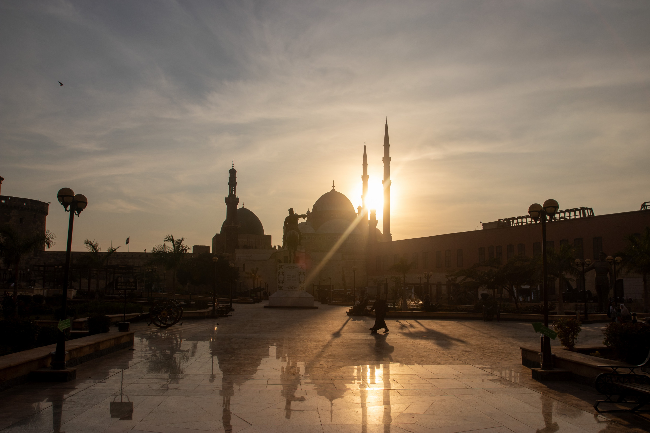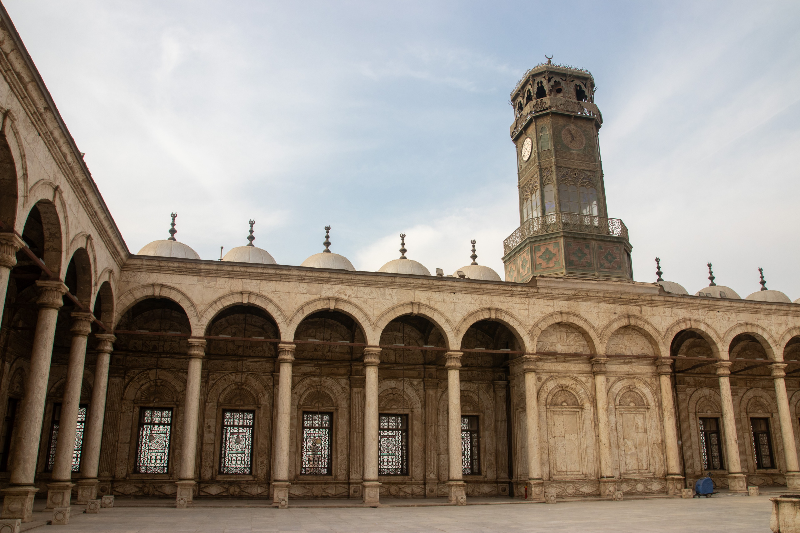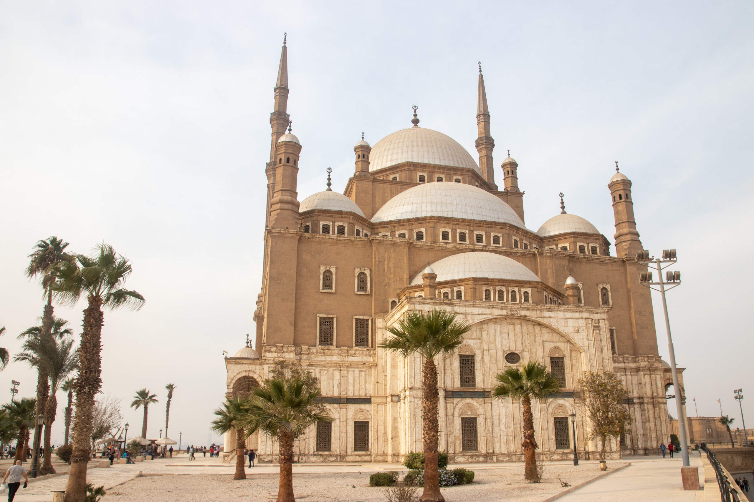 Am frühen Nachmittag düse ich mit einem Uber nach Kairo zur Zitadelle von Saladin, wo es zuerst den Hügel hinauf zur Muhammad-Ali-Moschee geht. Von hier hat man einen tollen Blick über ganz Kairo. Die Pyramiden kann ich leider nicht ausmachen, da es immer noch sehr diesig ist. Wie auch schon in einigen anderen Ländern, möchte jemand ein Foto mit mir. Diesmal ist es eine Gruppe Halbwüchsiger. Oki, warum nicht. Nun aber ab und die Moschee. Mit den vielen Lampen und den verzierten Kuppeln sieht das alles sehr schön aus. Im Innenhof wird gerade alles für eine Hochzeit aufgebaut. Hui, sieht das kitschig aus.