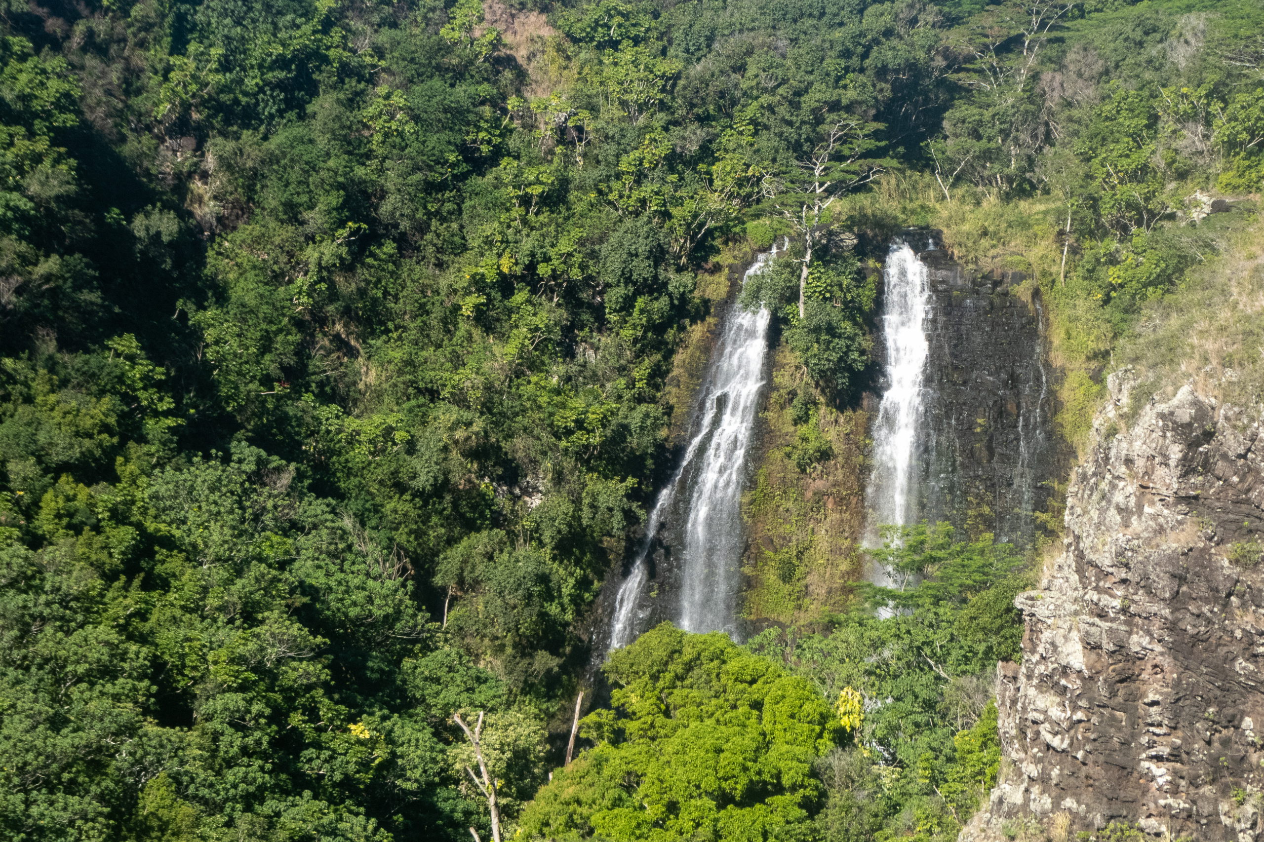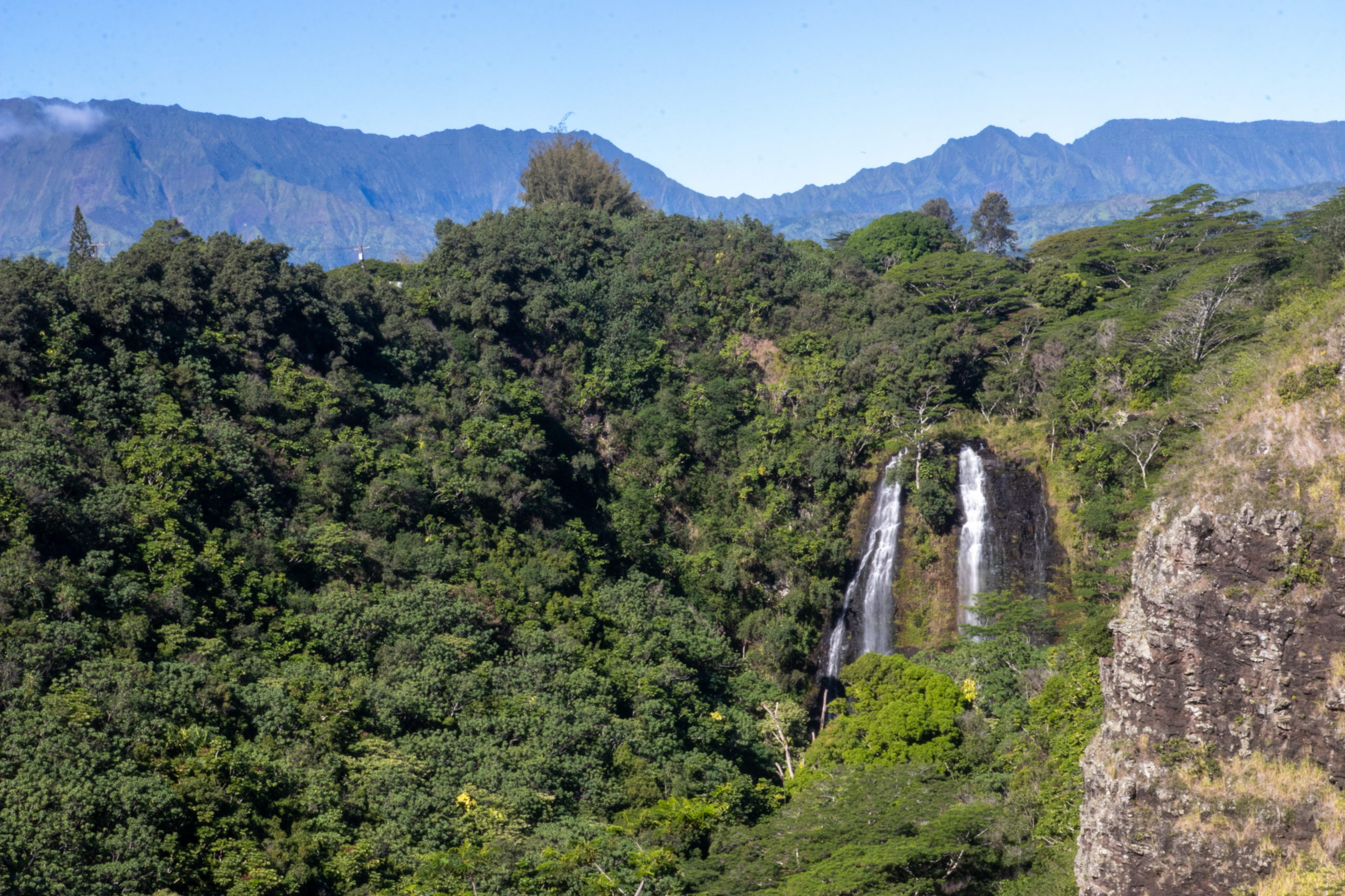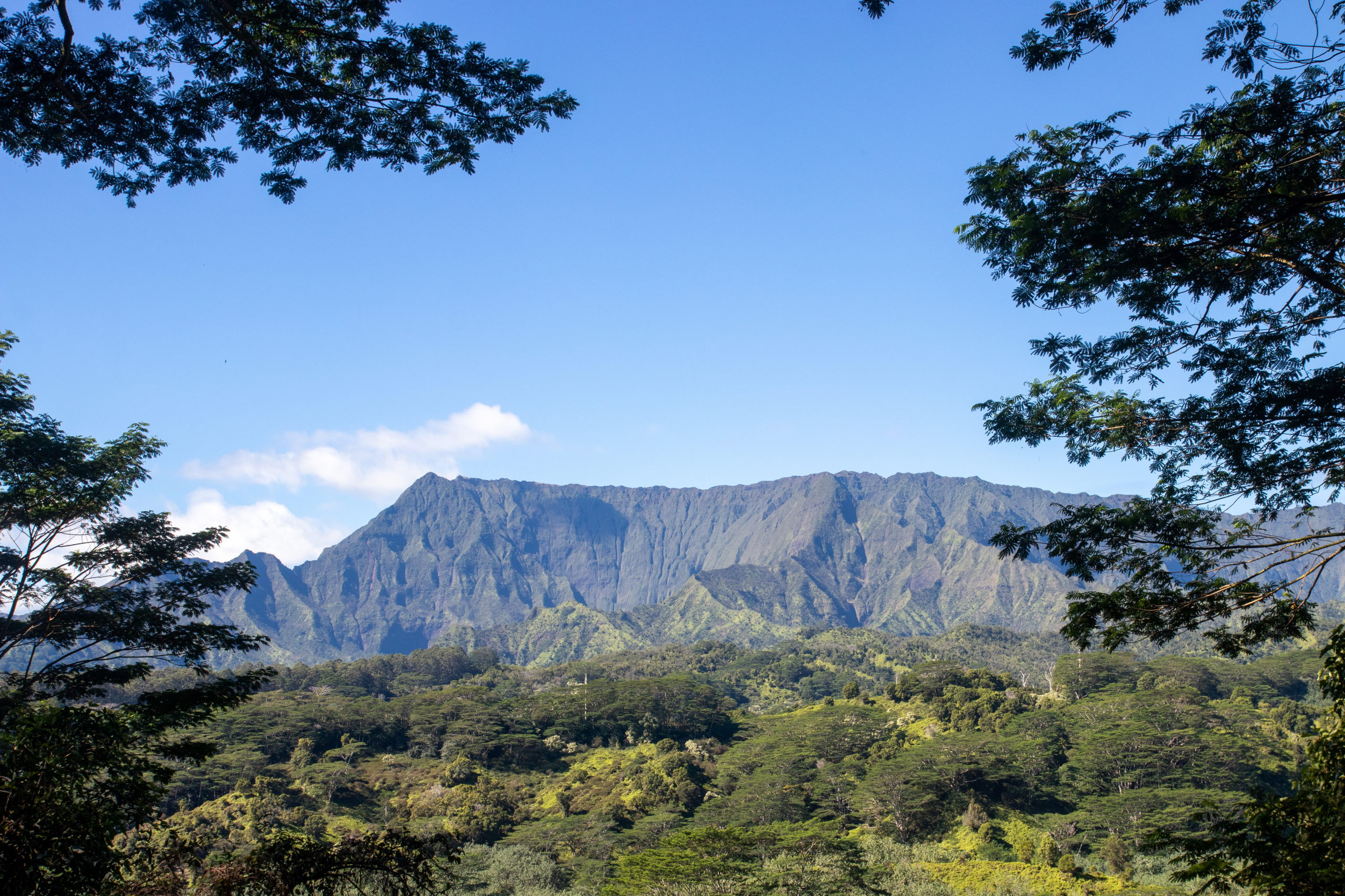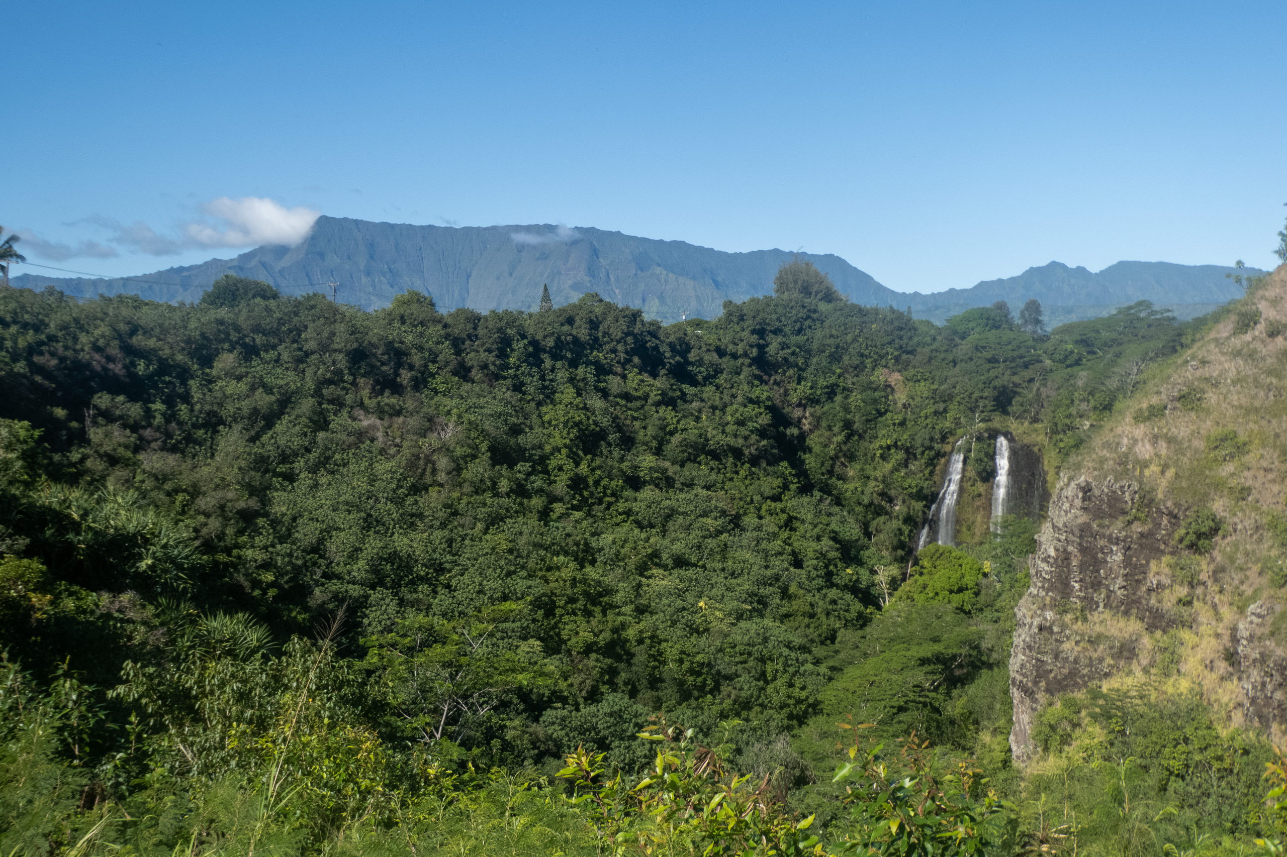 Obwohl ich schon früh eingeschlafen bin, halte ich es lange im “Bett” aus und stehe erst um neun Uhr auf, als es schon heiß wird. Am Himmel ist keine Wolke zu sehen. Suuuuper. Auf dem Weg zu meiner Wanderung halte ich kurz bei den Opaeka’a Falls. Bevor ich aber mit dem Kuilau Ridge Trail starten kann, muss ich noch meine Kopfbedeckung suchen, denn bei dem schönen Wetter geht heute nichts ohne.