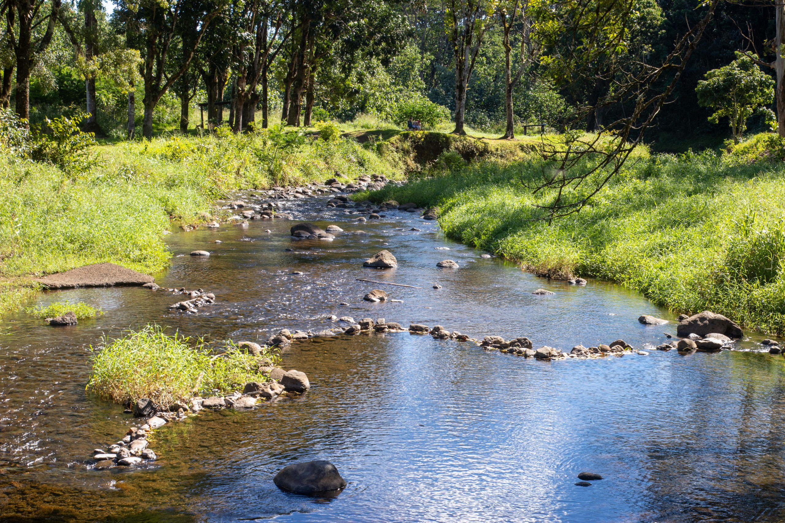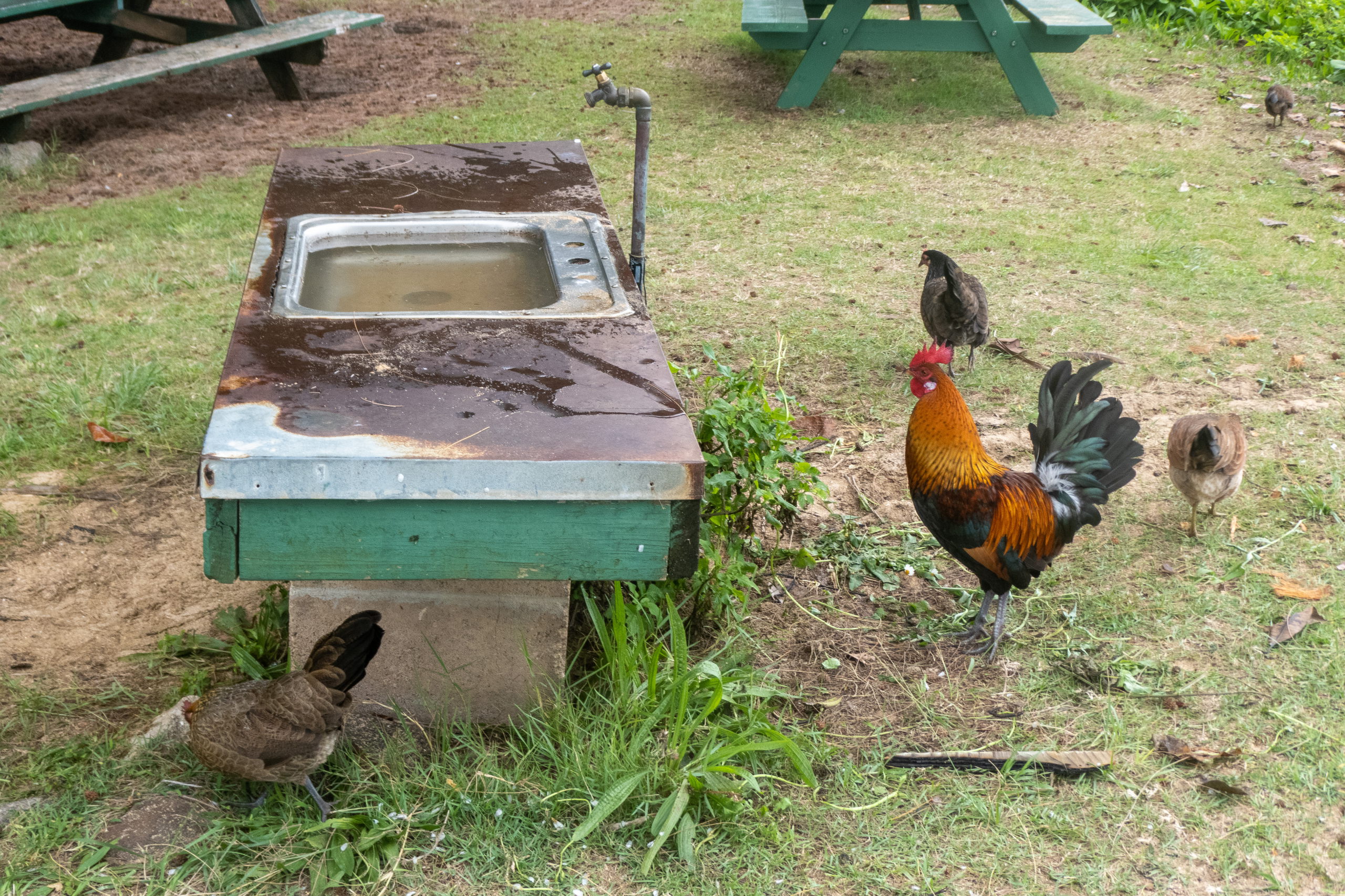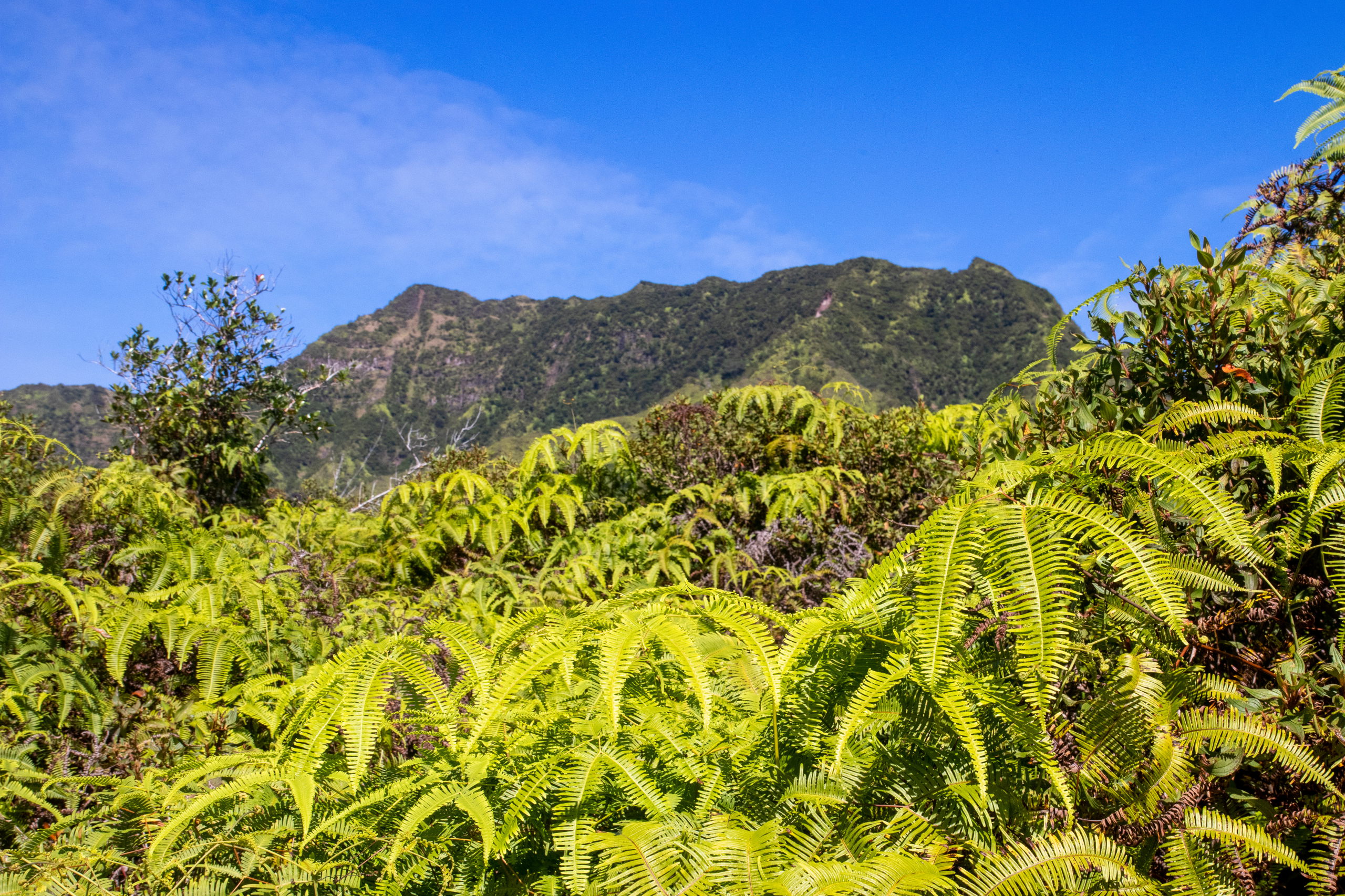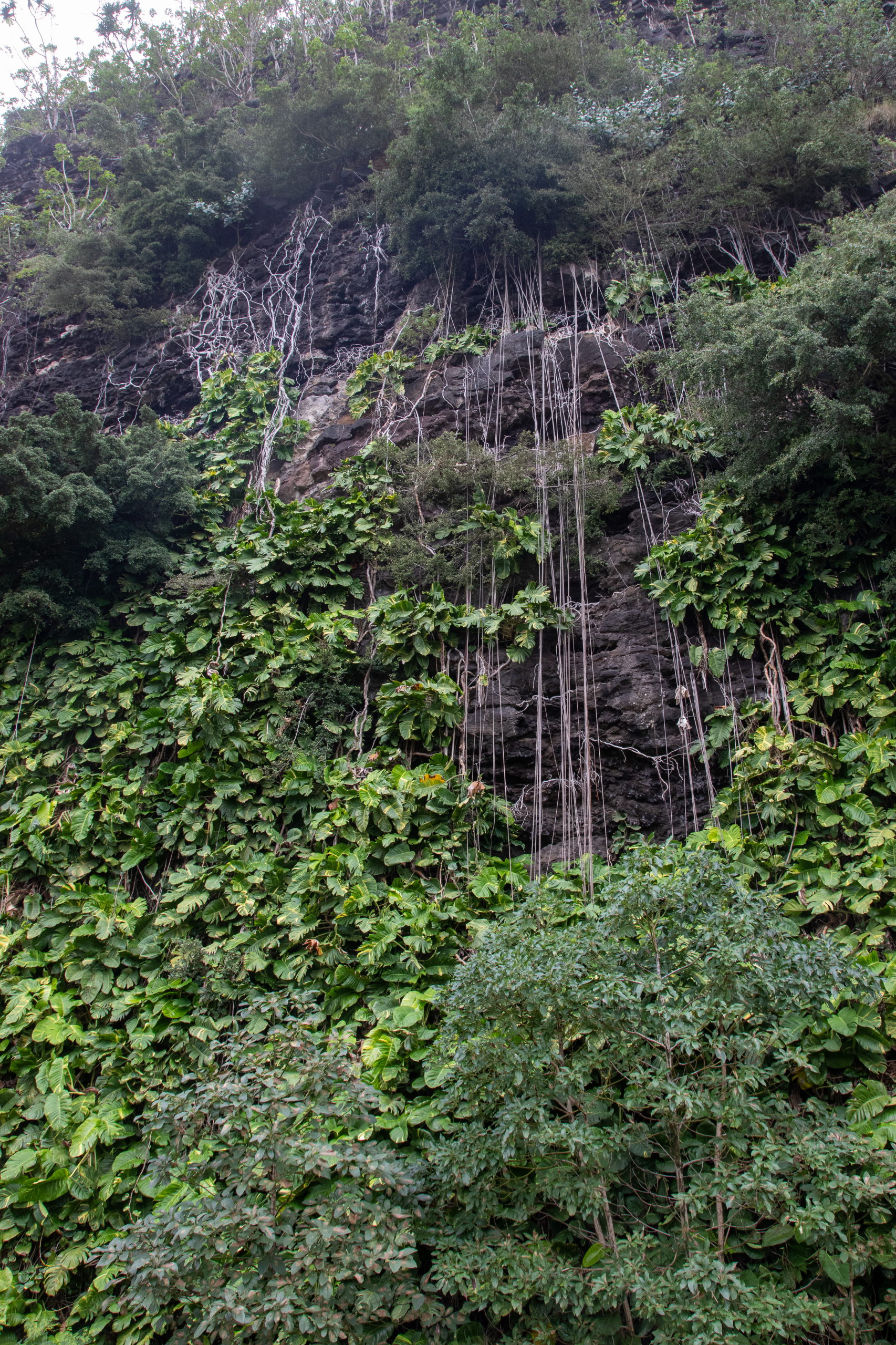 Obwohl ich schon früh eingeschlafen bin, halte ich es lange im “Bett” aus und stehe erst um neun Uhr auf, als es schon heiß wird. Am Himmel ist keine Wolke zu sehen. Suuuuper. Auf dem Weg zu meiner Wanderung halte ich kurz bei den Opaeka’a Falls. Bevor ich aber mit dem Kuilau Ridge Trail starten kann, muss ich noch meine Kopfbedeckung suchen, denn bei dem schönen Wetter geht heute nichts ohne.