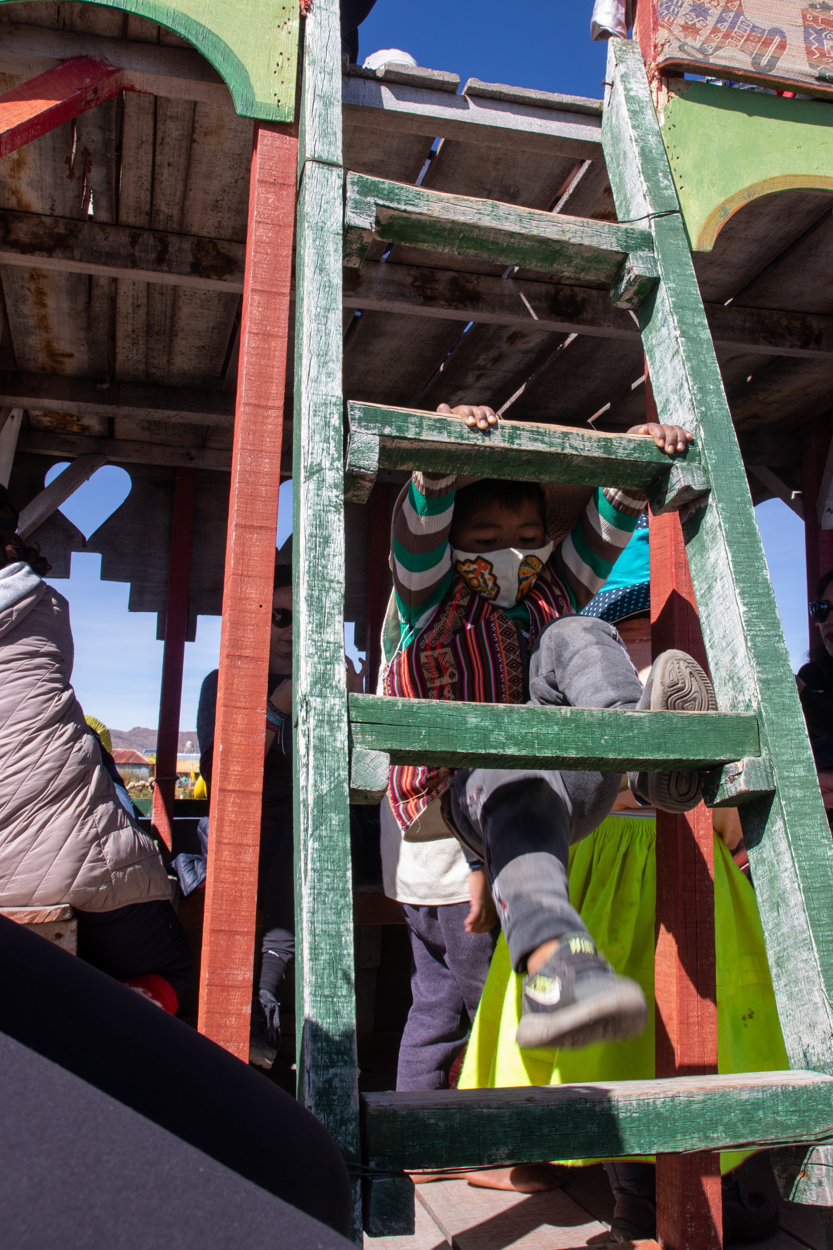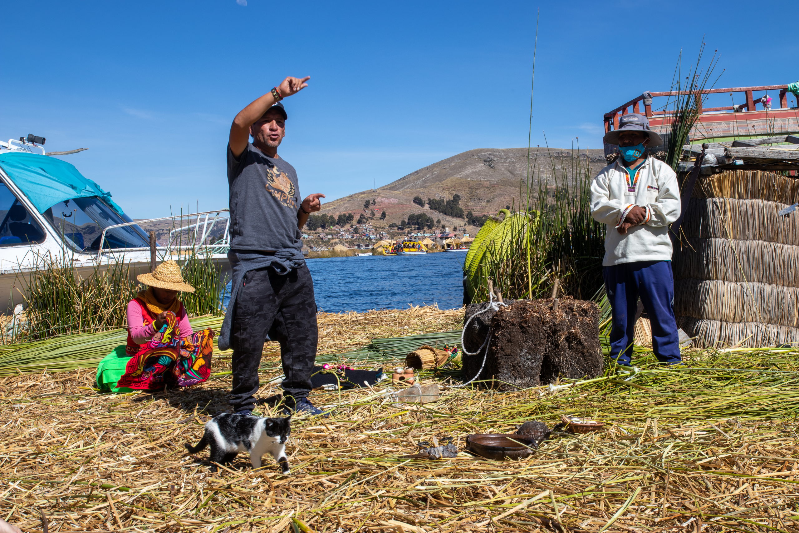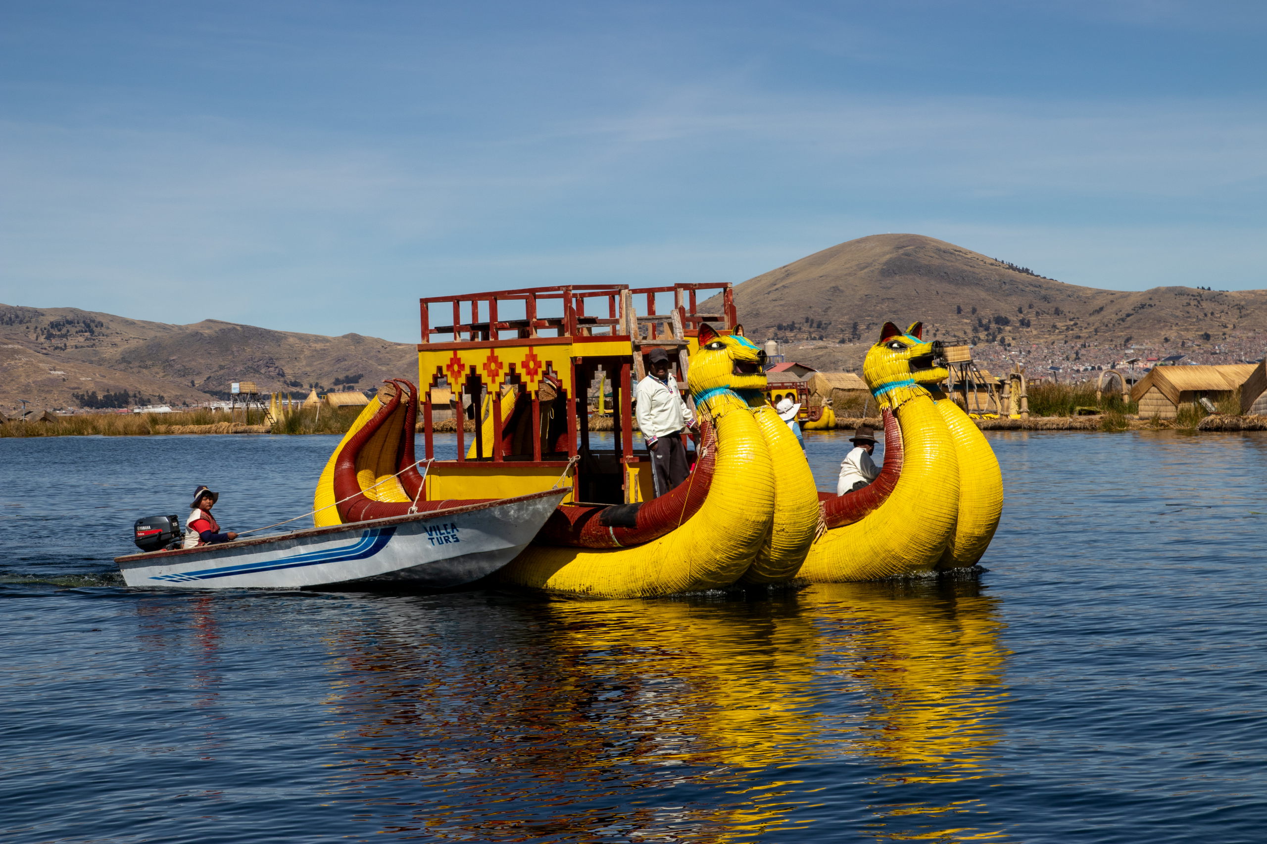 Die nächsten beiden Tage ist Full Service angesagt, da ich eine zweitägige Tour am Lago Titicaca gebucht habe. Kurz nach acht Uhr werde ich vom Hotel abgeholt und zum Hafen gebracht. Kurz darauf geht es mit dem Boot schon los. Wir tuckern sehr gemütlich nach Uros, den schwimmenden Inseln, die von Menschenhand gebaut sind. Wir werden nett von einer Familie empfangen und unser Guide und ein Mann erklären uns, wie das Leben hier so ist, wovon die Leute leben und wie die schwimmenden Inseln gebaut und instand gehalten werden. Es ist zwar sehr touristisch, dennoch ziemlich interessant. Im Anschluss werden wir mit einem traditionellen Festboot zu einem Restaurant geschippert. Hmmm, irgendwie fühle ich mich nicht ganz auf der Höhe, da ich schnell außer Atem bin. Ich hoffe dass legt sich wieder.