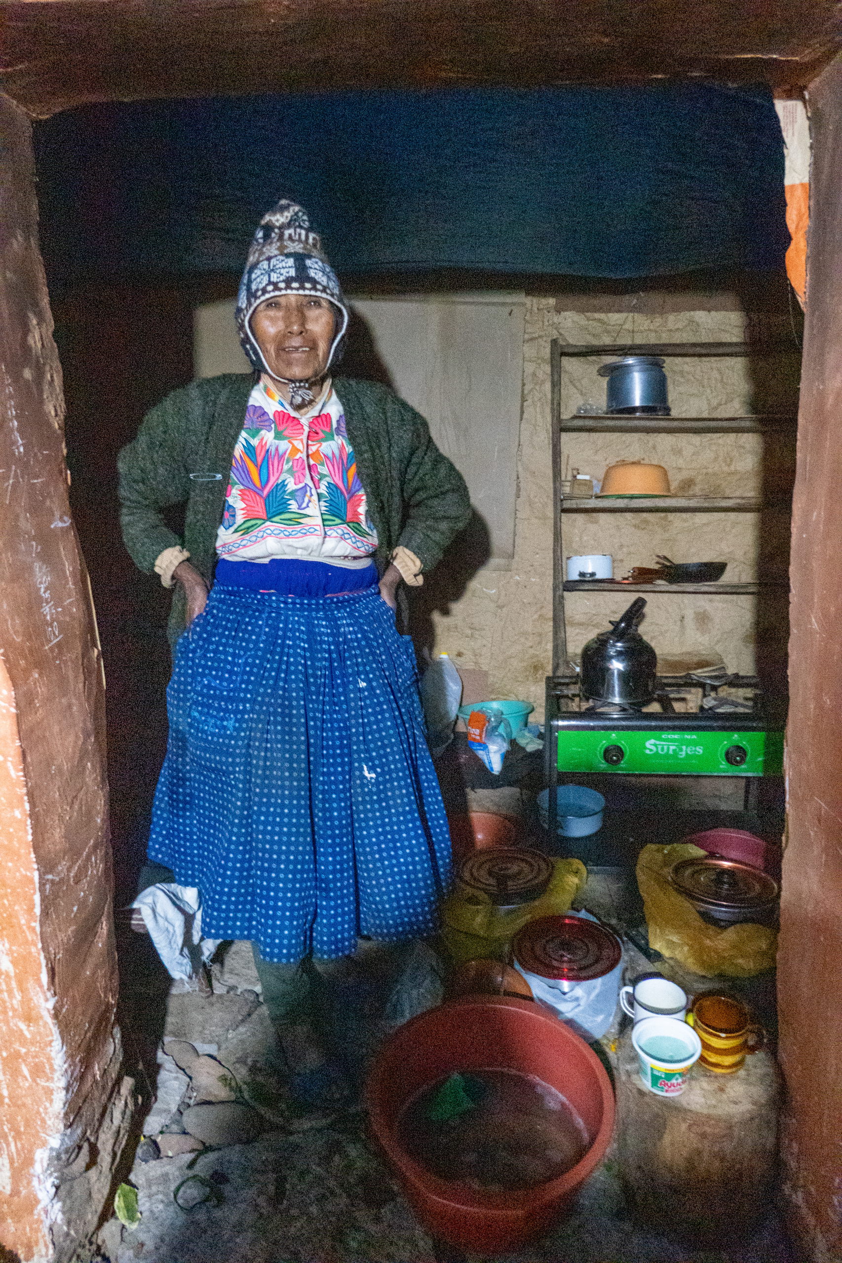 Nach einer zweieinhalbstündigen Fahrt über den See und etwas Schlaf erreichen wir die Insel Amantani, wo wir den restlichen Tag verbringen werden. Am Hafen warten schon die Familienoberhäupter auf unsere Zuteilung. Jeden Tag werden die Touristen einer anderen der zehn Gemeinden zugeteilt. So haben alle was vom Geld und es kommt kein Streit auf. Schlaues System. Ich werde mit zwei anderen Burschen eingeteilt und wir machen uns mit unserem Gastgeber auf den Weg zu seinem Haus. Die einfachen Zimmer sind schnell bezogen und dann gibt es auch schon Mittagessen. Köstliche Gemüsesuppe und Kartoffel, Oca und gegrillten Käse dazu Muña-Tee. Daniel und Krishna sprechen wenig bzw. kein Spanisch und ich muss den Dolmetscher machen. Hätte ich mir auch nie gedacht. 😁