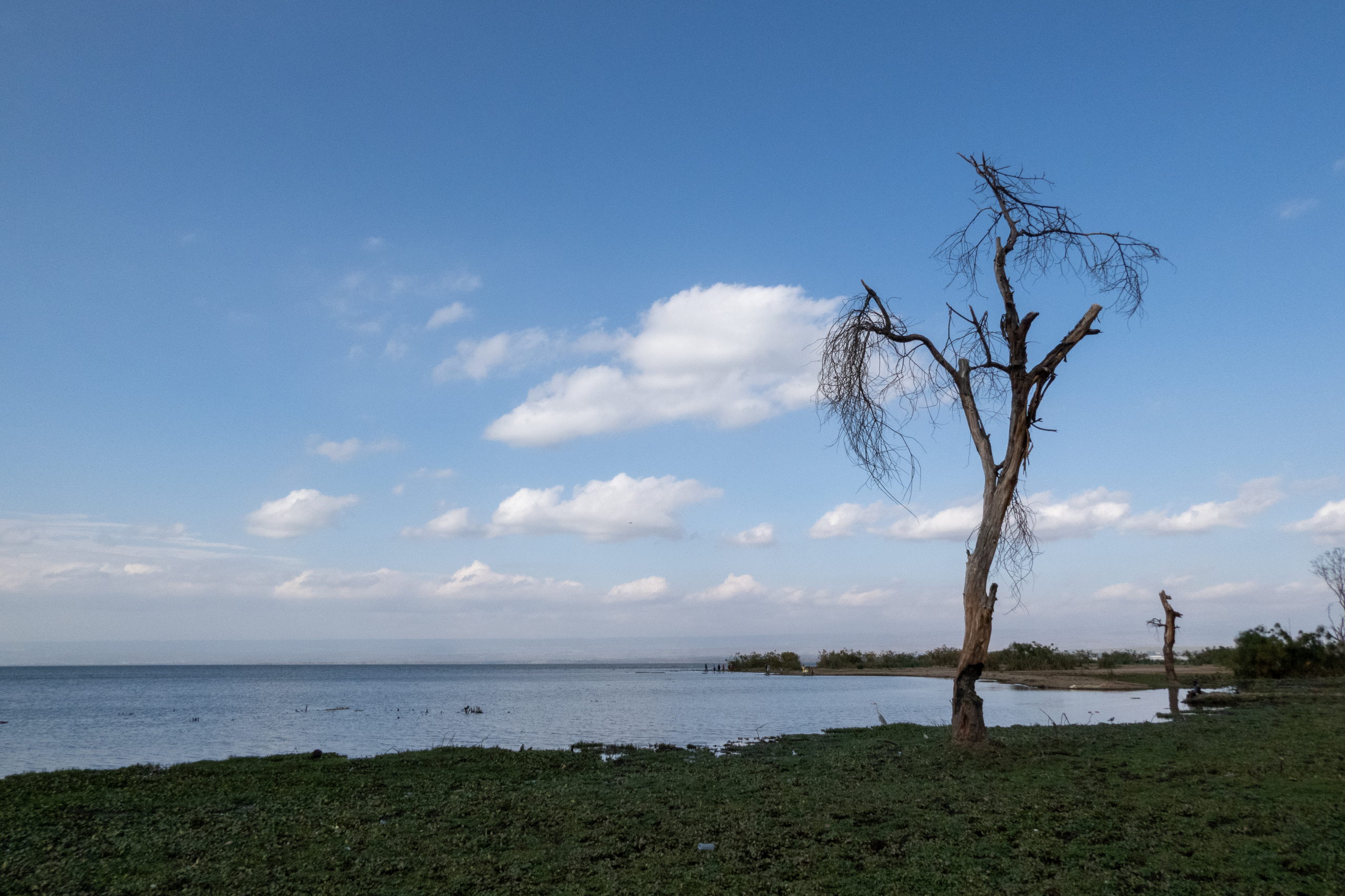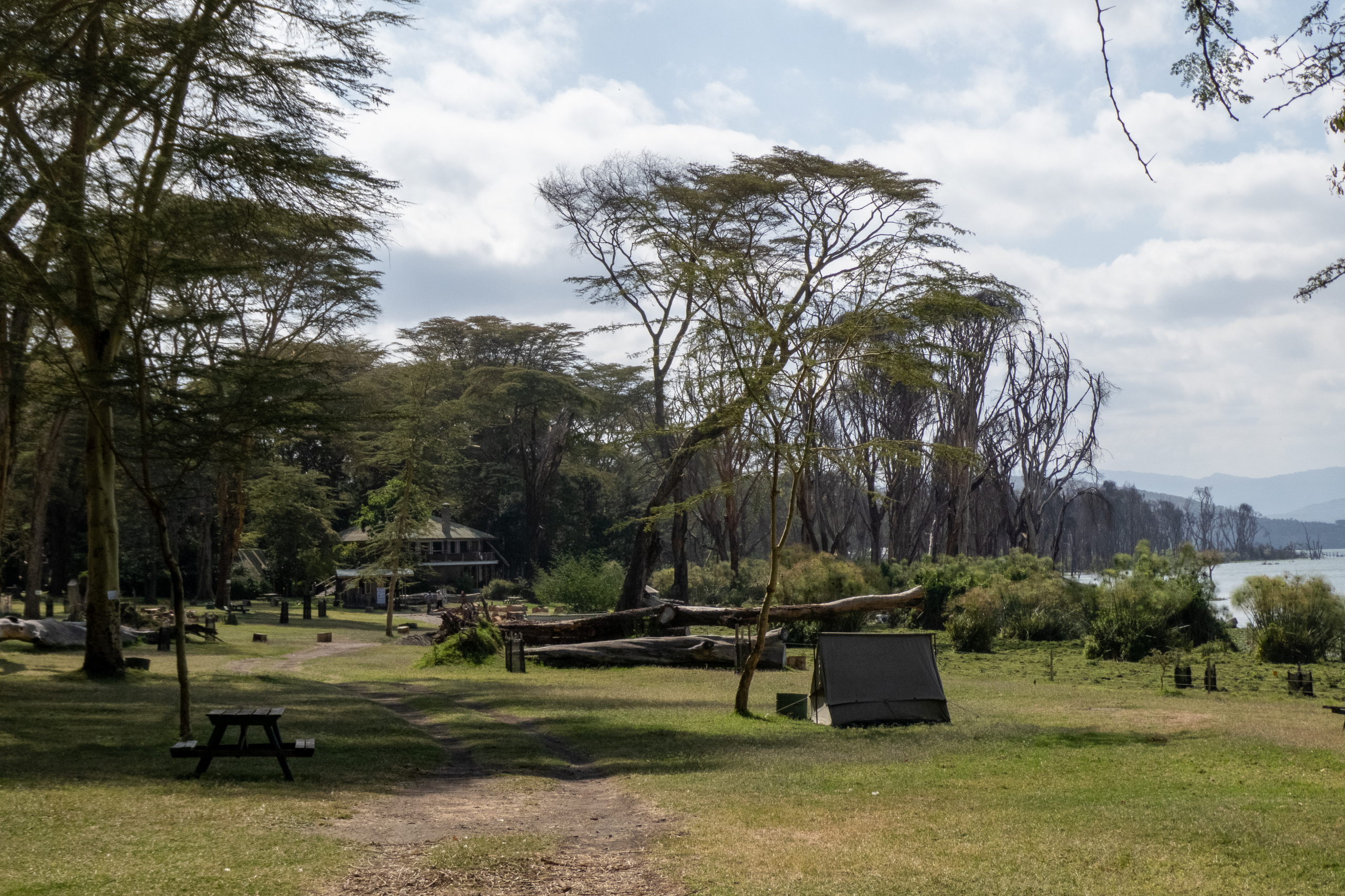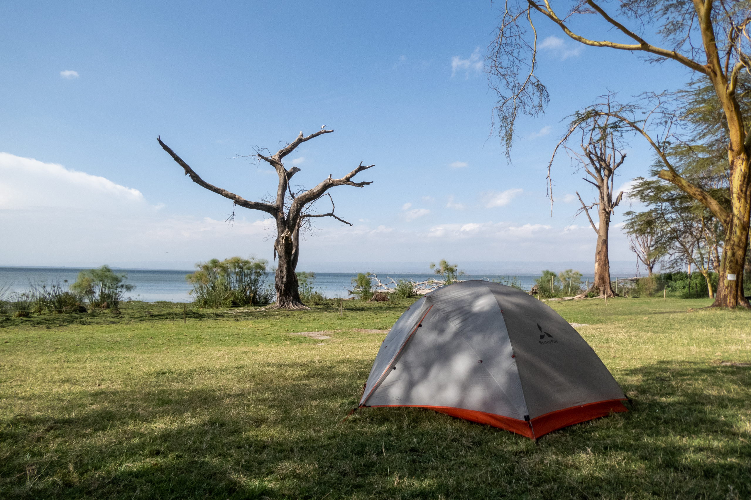 In Naivasha angekommen, geht es mit dem nächsten Matatu weiter zum Fischerman’s Camp am Lake Naivasha. Nach dem Check-In baue ich das Zelt nahe dem Elektrozaun auf, der hoffentlich die Nilpferde in der Nacht draußen hält. Ich spaziere noch eine Runde zum Lake Naivasha und im Anschluss in den Ort, wo ich Mutura, gegrillte Blutwurst, und gegrillten Mais esse. Zurück im Camp setze ich mich ins Restaurant auf ein kühles Tusker und köstliches Gemüsecurry. Beim Zelt treffe ich Noah und Salomé wieder, die gestern schon angereist sind. Wir gehen ins Restaurant und quatschen über die Tour zum Mount Kenia, die wir gemeinsam machen wollen. Nur wenige Meter von der Terrasse entfernt grasen friedlich ein paar Nilpferde. Nur gut, dass sie nicht wissen, dass im Zaun kein Strom ist. 😁 Kurz vor Mitternacht geht es zurück zu den Zelten. Ich bin müde und schlafe.