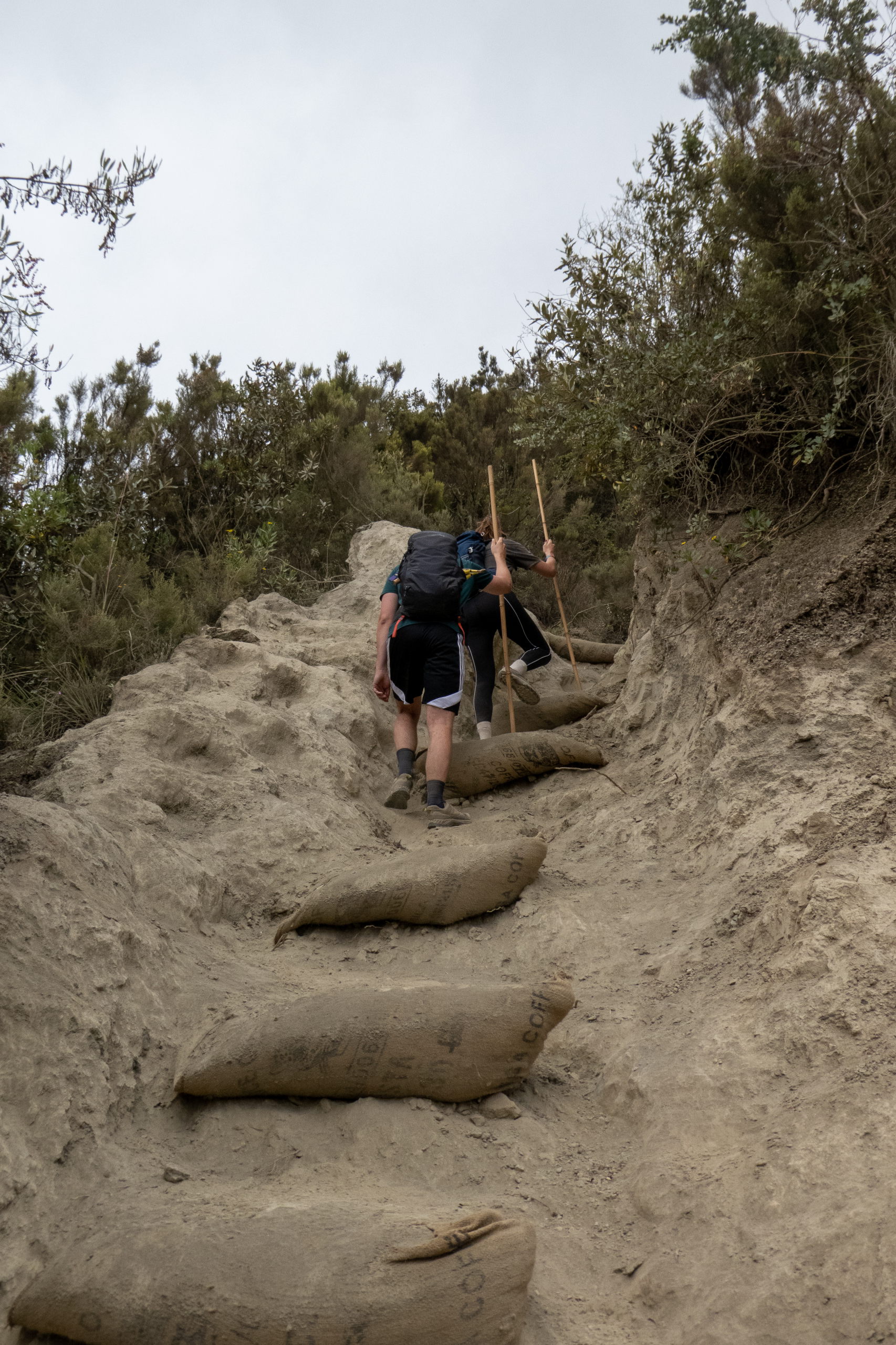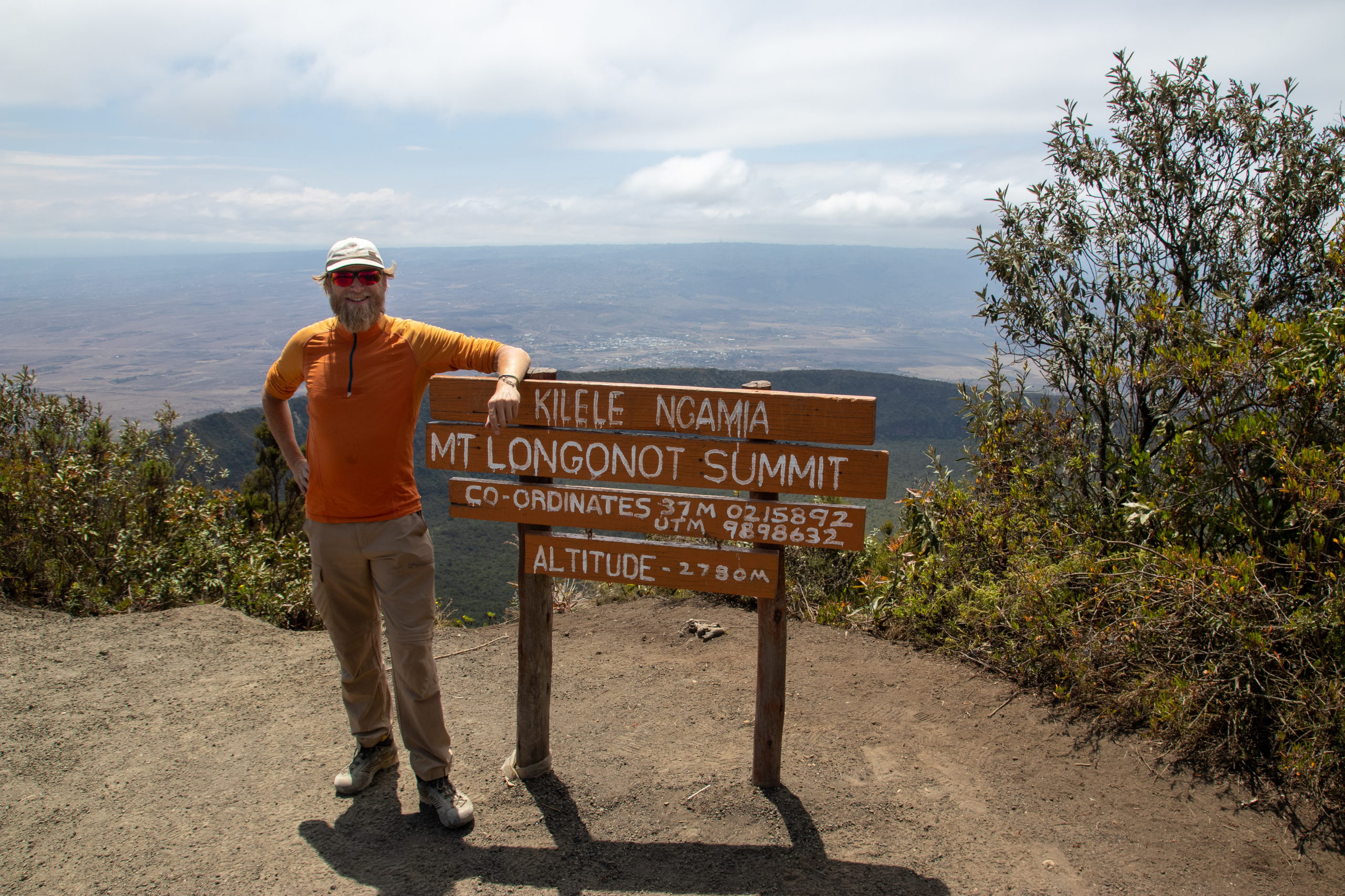 Es geht ziemlich gemütlich bergauf, jedoch bin ich etwas eingerostet. Zebras und Antilopen grasen gemütlich in etwas Abstand zum Weg. Nach einer Stunde erreiche ich den Kraterrand, wo ich auf das holländische Pärchen aus dem Greenwood Safari Camp treffe. Sie sind unschlüssig, ob sie den Krater umrunden wollen, entschließen sich dann aber doch dafür und wir gehen gemeinsam. Es geht gemütlich dahin, nur das letzte Stück zum höchsten Punkt ist steil und mit hohen Stufen aus Sandsäcken angelegt. Die Aussicht über den Krater und den Lake Naivasha ist super und auch zum Hell’s Gate National Park mit seinen Rauchsäulen sieht man gut. Wir machen Pause, essen ein wenig und gehen immer entlang des Kraterrandes weiter. Linda erzählt, dass der Blick von hier oben die Inspiration zu manchen Szenen aus dem Film “König der Löwen” war.