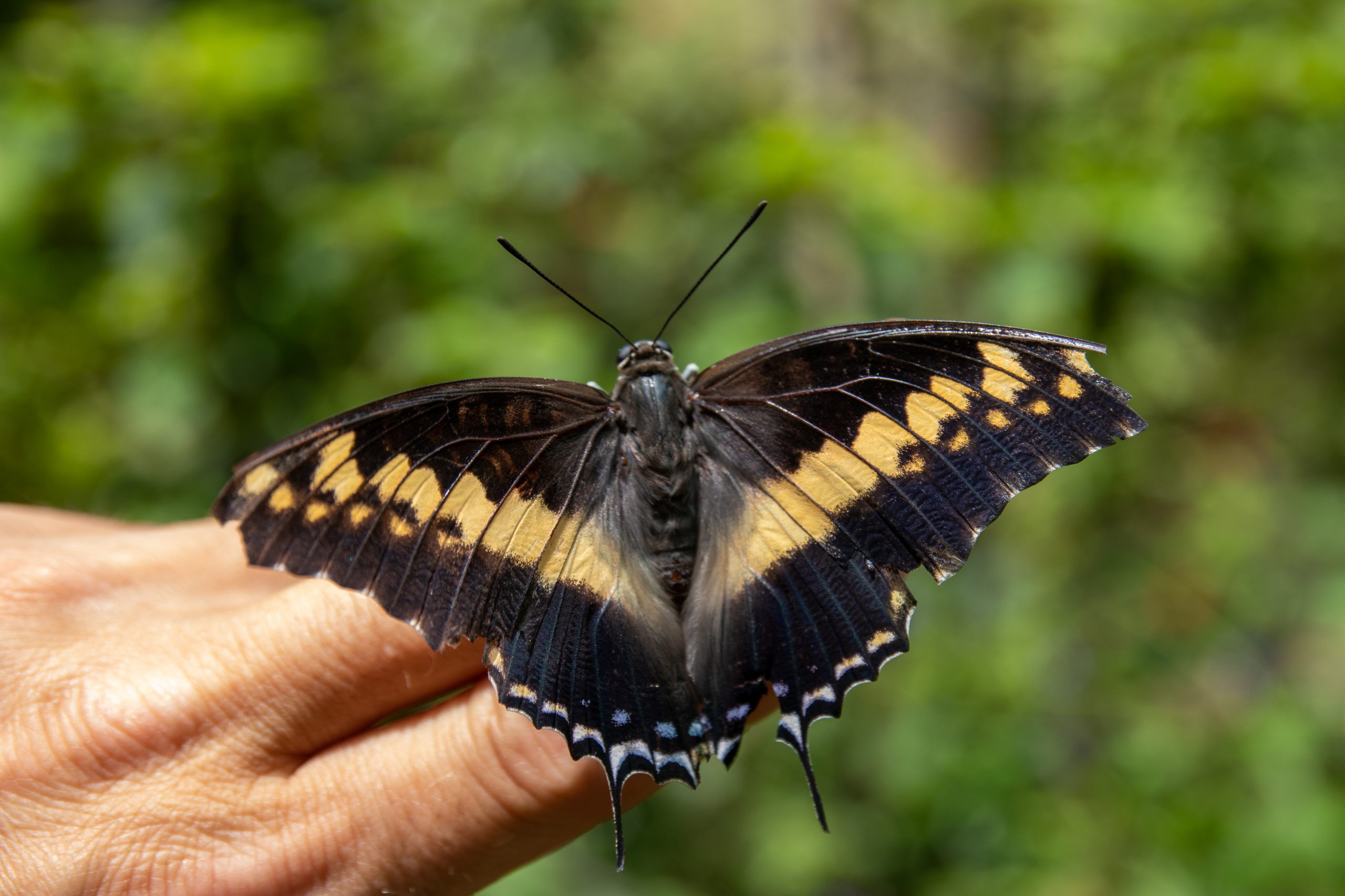 Es dauert ĂŒber eine Stunde, bis ich jemanden finde, um mein FrĂŒhstĂŒck zu ordern, habe aber schlieĂlich Erfolg. Nachdem das Zelt abgebaut ist, geht es mit einem Boda Boda zu den Gede Ruins. Die Ruinen sind interessant, allerdings ist nur wenig darĂŒber bekannt, da es keine Auszeichnungen gibt. Eine Stelle erinnert mich an Angkor Wat, wo ebenfalls Mauern von BĂ€umen umschlungen werden. Ich gehe durch die alten GemĂ€uer und komme schlieĂlich zum Reptile Protection Center, wo mir ein Angestellter die in der Umgebung gefangenen Schlangen zeigt und erklĂ€rt. Nach einiger Zeit werden diese in etwas Entfernung wieder freigelassen. ZurĂŒck beim Eingangstor sehe ich mir noch das Schmetterlingshaus an, in dem viele groĂe Schmetterlinge herum flattern. Mein Fahrer wartet schon, aber zuvor muss noch eine Kokosnuss daran glauben.