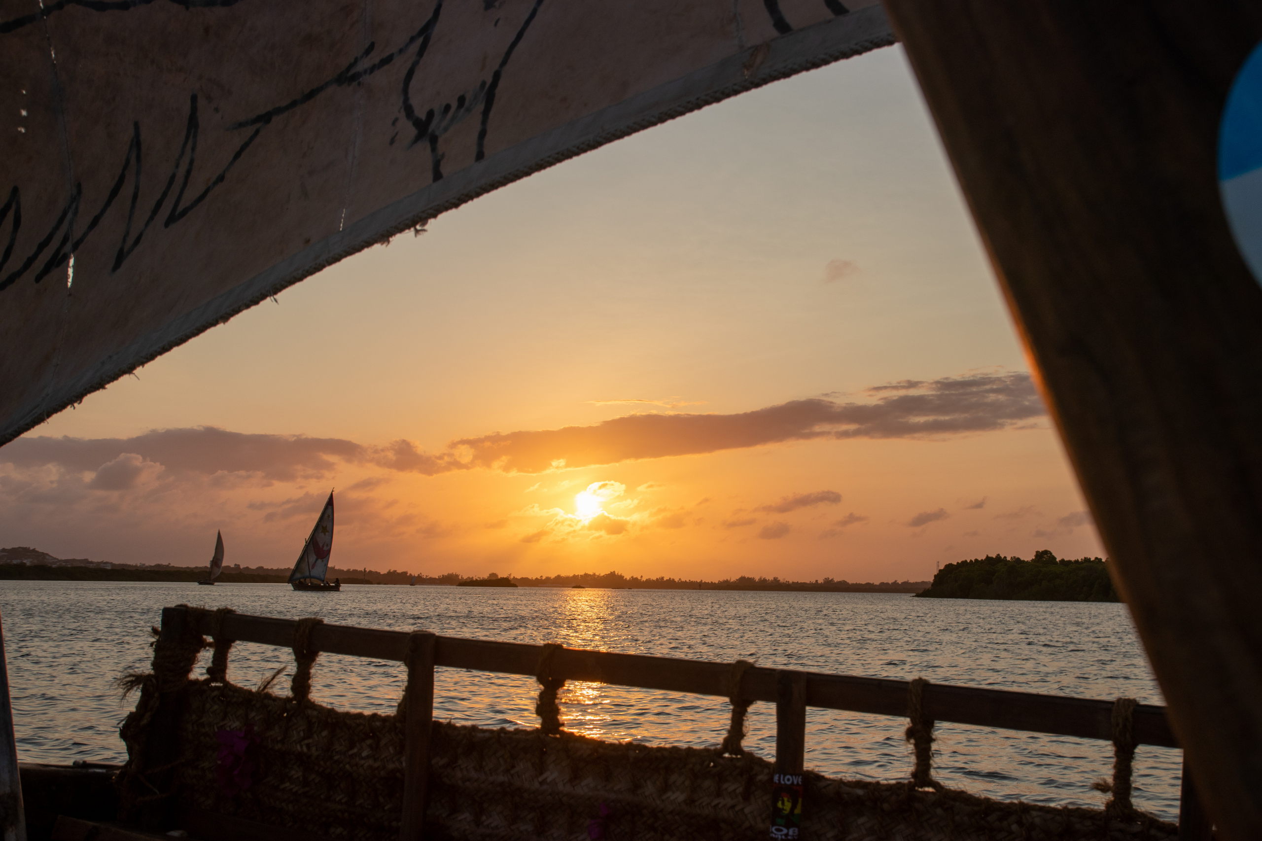 Der Himmel ist bewölkt und ich bin mir nicht sicher, ob ich die Sunset Tour machen soll. Darum gehe ich zur Unterkunft, da man aus dem obersten Stockwerk einen guten Blick in alle Richtungen hat. Sieht vielversprechend aus. Simane und Gaspard haben ebenfalls gebucht. Perfekt. In einer halben Stunde geht es schon los. Ich plĂŒndere noch einen ATM und treffe mich mit den anderen an der Jetty. Wir hĂŒpfen in eine Dhow und schon tuckern wir gemĂŒtlich los. Nach einer Weile wird der Motor abgestellt und gesegelt. Ich stelle mich nach hinten, um zu fotografieren. Cooles Feeling, wie der Wind um die Nase weht. Leider erfasst er auch meine Kappe und weht sie ins Wasser. Das Mann-ĂŒber-Board-Manöver dauert leider viel zu lange und die Kappe ist in der Zwischenzeit schon abgesoffen. Nicht schlimm, es war ohnehin eine neue fĂ€llig. Wir segeln entlang der MangrovenwĂ€lder von Manda Island. Es ist Ă€hnlich wie mit unseren Segelbooten, jedoch ist das Umlegen des Mastes beim Wendemanöver viel komplizierter. WĂ€hrend wir in den Sonnenuntergang segeln, werden Kenyan Coffee, der mehr wie GewĂŒrztee schmeckt, und Snacks gereicht. Es ist ein super GefĂŒhl, mit einer Dhow zu segeln und zu hören, wie sie leise durch das Wasser gleitet. Gegen sieben Uhr sind wir wieder zurĂŒck und schnappen im Restaurant gleich gegenĂŒber noch ein Bier. Ich erzĂ€hle ihnen von den köstlichen SpieĂen, die ich gestern noch hatte. Die beiden haben es nicht so mit Streetfood, wollen es aber trotzdem probieren. Es schmeckt ihnen so gut, dass wir noch einen Nachschlag und dazu noch eine gegrillte Languste bestellen. Und da wir ohnehin schon an einem Tisch vom gestrigen Restaurant sitzen, bestellen wir noch köstlichen Fruchtsaft, und Banana Pancake mit Schokosauce. Mjam. ZurĂŒck in der Unterkunft, werke ich noch am Laptop und gucke bis spĂ€t in die Nacht Star Trek Discovery.