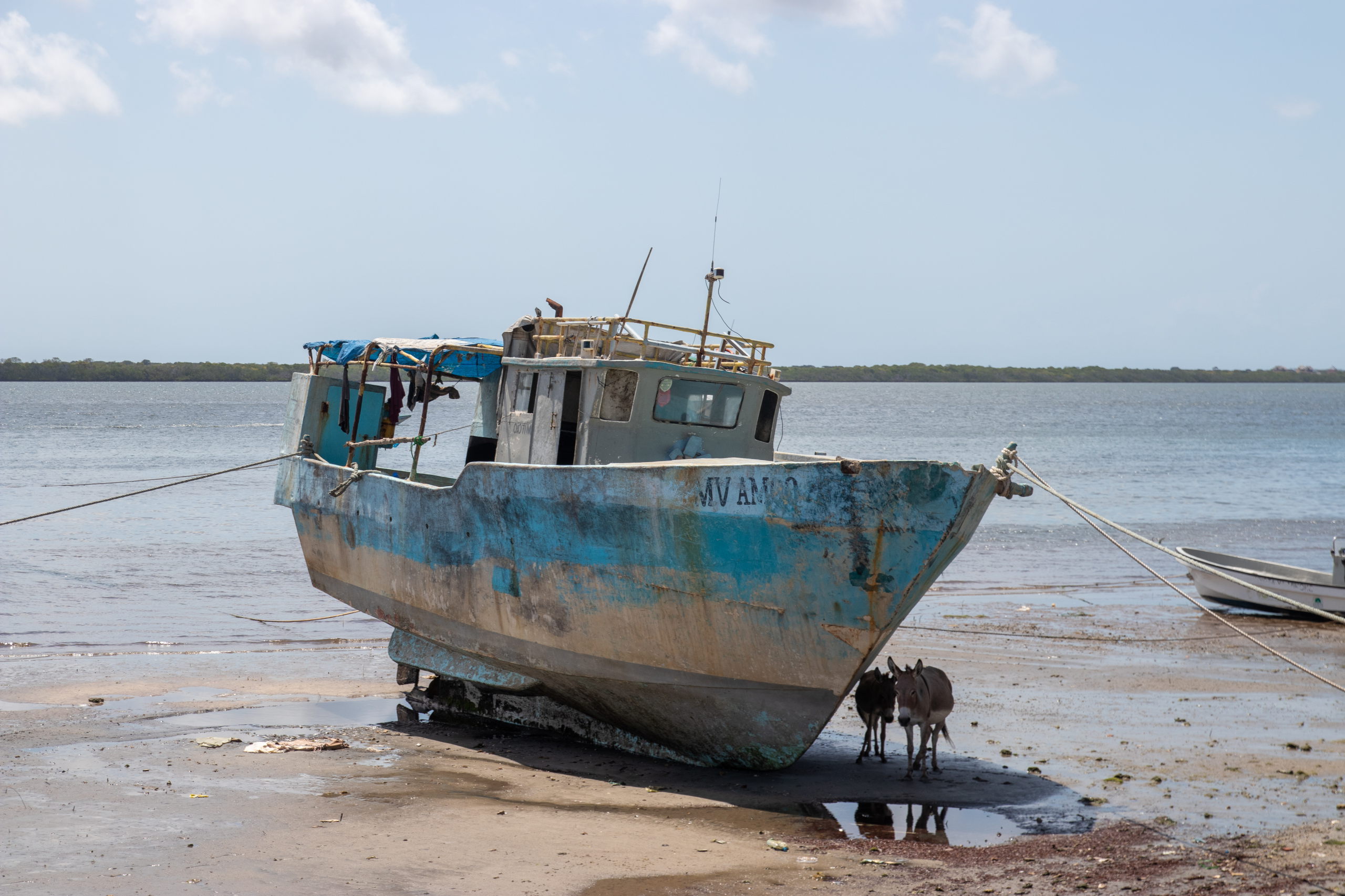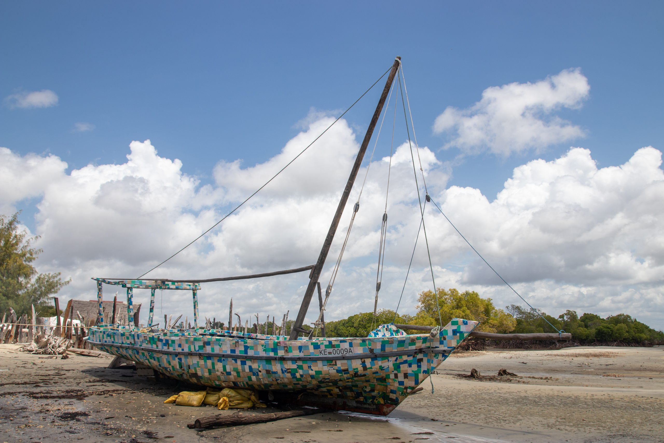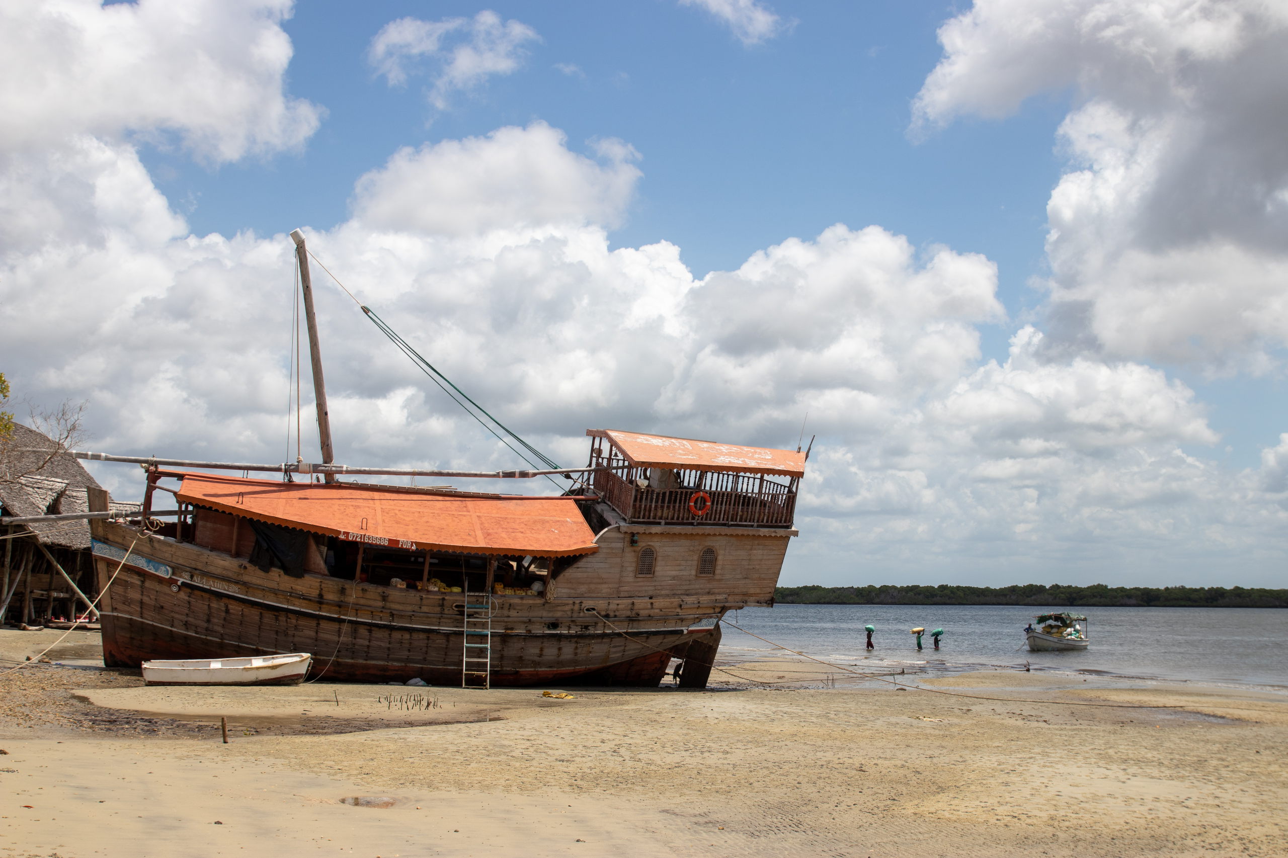 Zuerst geht es den Hauptweg der Stadt entlang, dann etwas auĂerhalb durch vermĂŒllte StraĂen, bis ich schlieĂlich an einen schönen Strand komme, dem ich bis zum FlipFlop Project folge. Das Projekt versucht, mehr Bewusstsein fĂŒr PlastikmĂŒll zu schaffen und hat aus altem Kunststoff ein komplettes Segelschiff gebaut. Am RĂŒckweg passiere ich eine Moschee und bin gegen ein Uhr in Lamu. Ich zische ein Cola und werfe ein paar Samosas ein, bevor ich am Ufer entlang nach Shela gehe. Die HĂ€user hier sind viel gepflegter, da die meisten AuslĂ€ndern gehören. Generell macht dieser Ort einen viel schöneren und vor allem saubereren Eindruck als Lamu, dafĂŒr aber auch viel touristischer. Ich setze mich in ein Restaurant auf einen Eisbecher. Perfektes Timing, denn nach fĂŒnf Minuten beginnt es zu regnen. Auf der Rechnung dann die Ăberraschung. 300 KES pro Kugel. Alter, das ist teurer als zuhause. Grrr. Naja, immerhin kann ich trocken weiter zum Shela Beach.