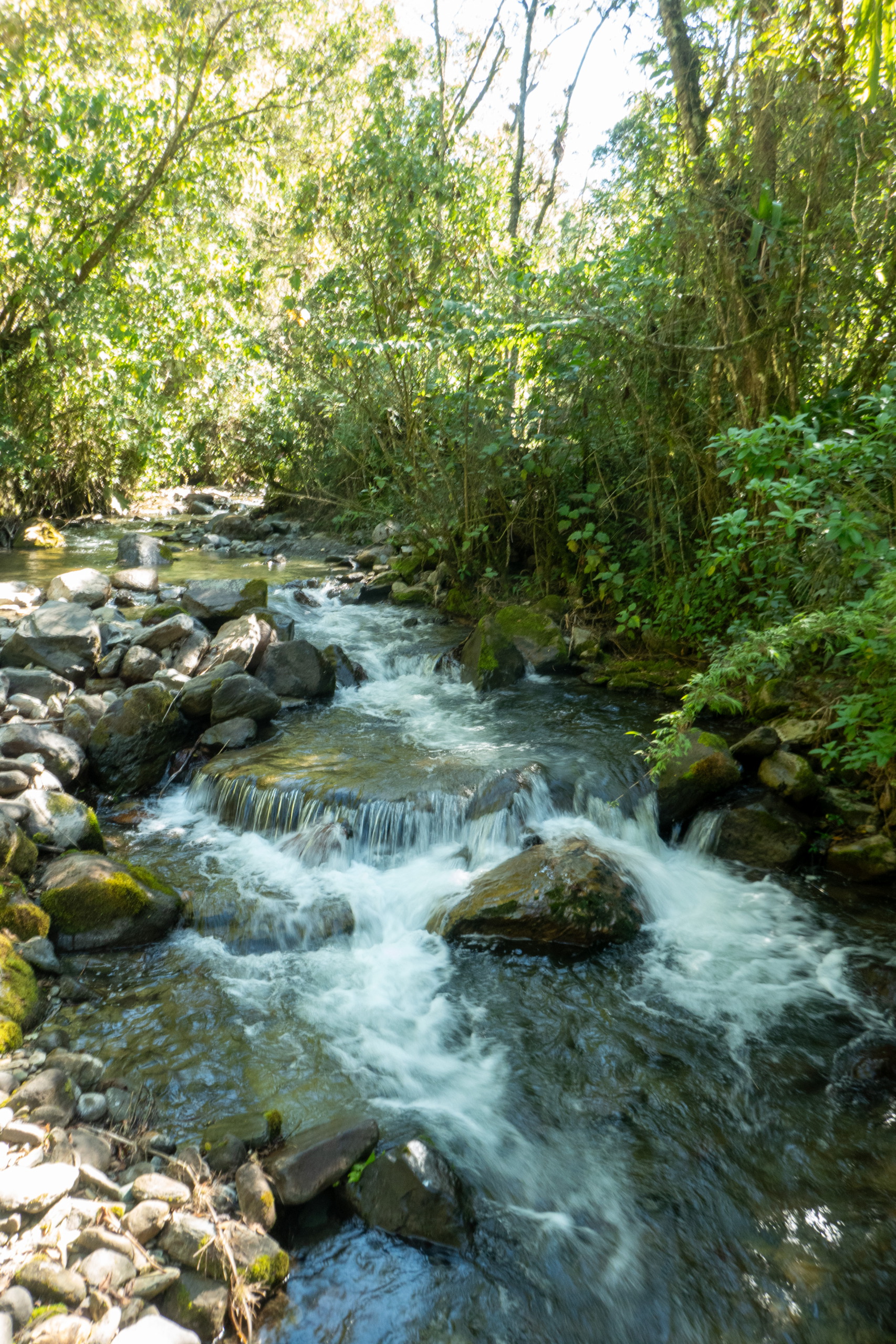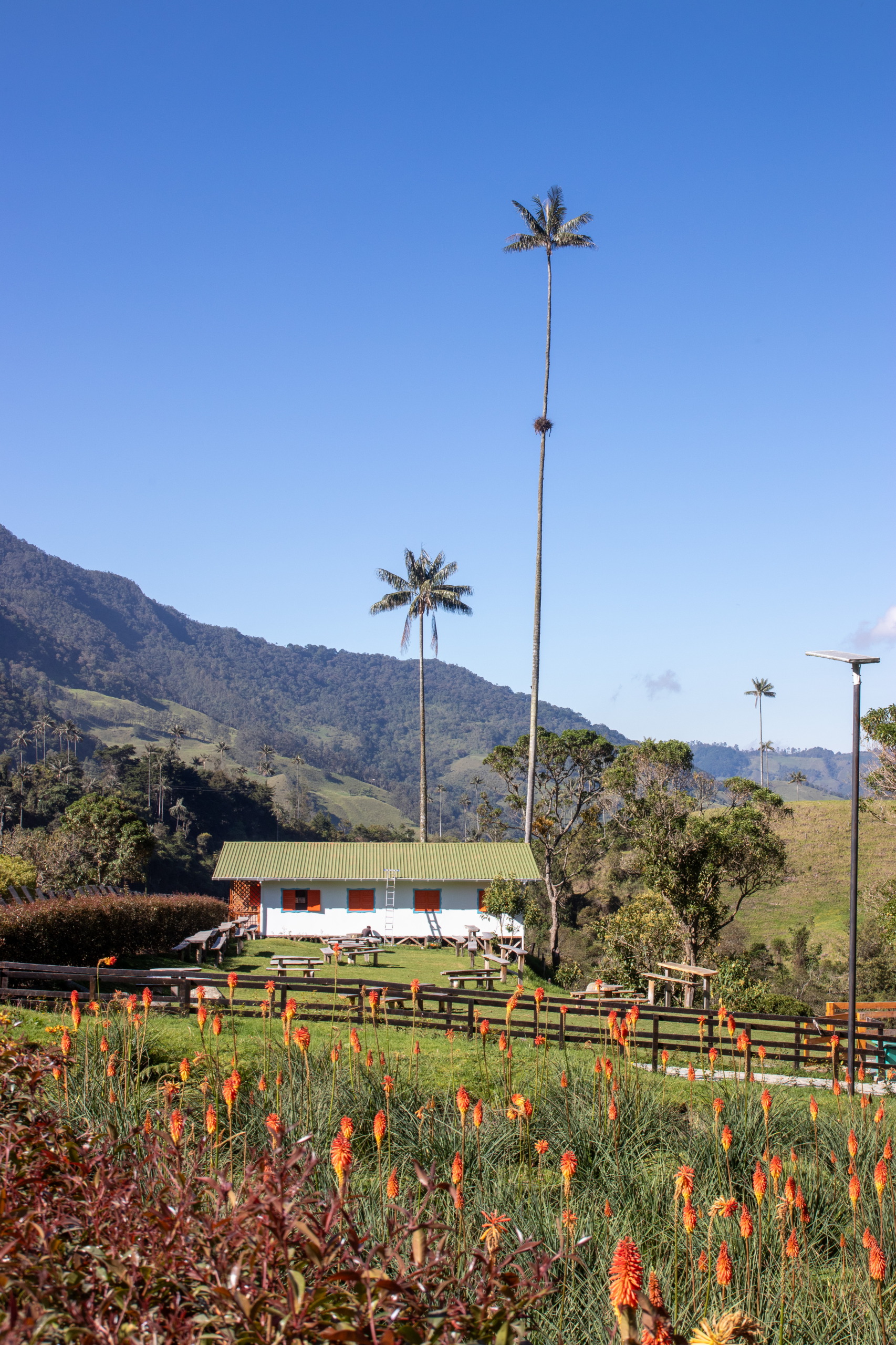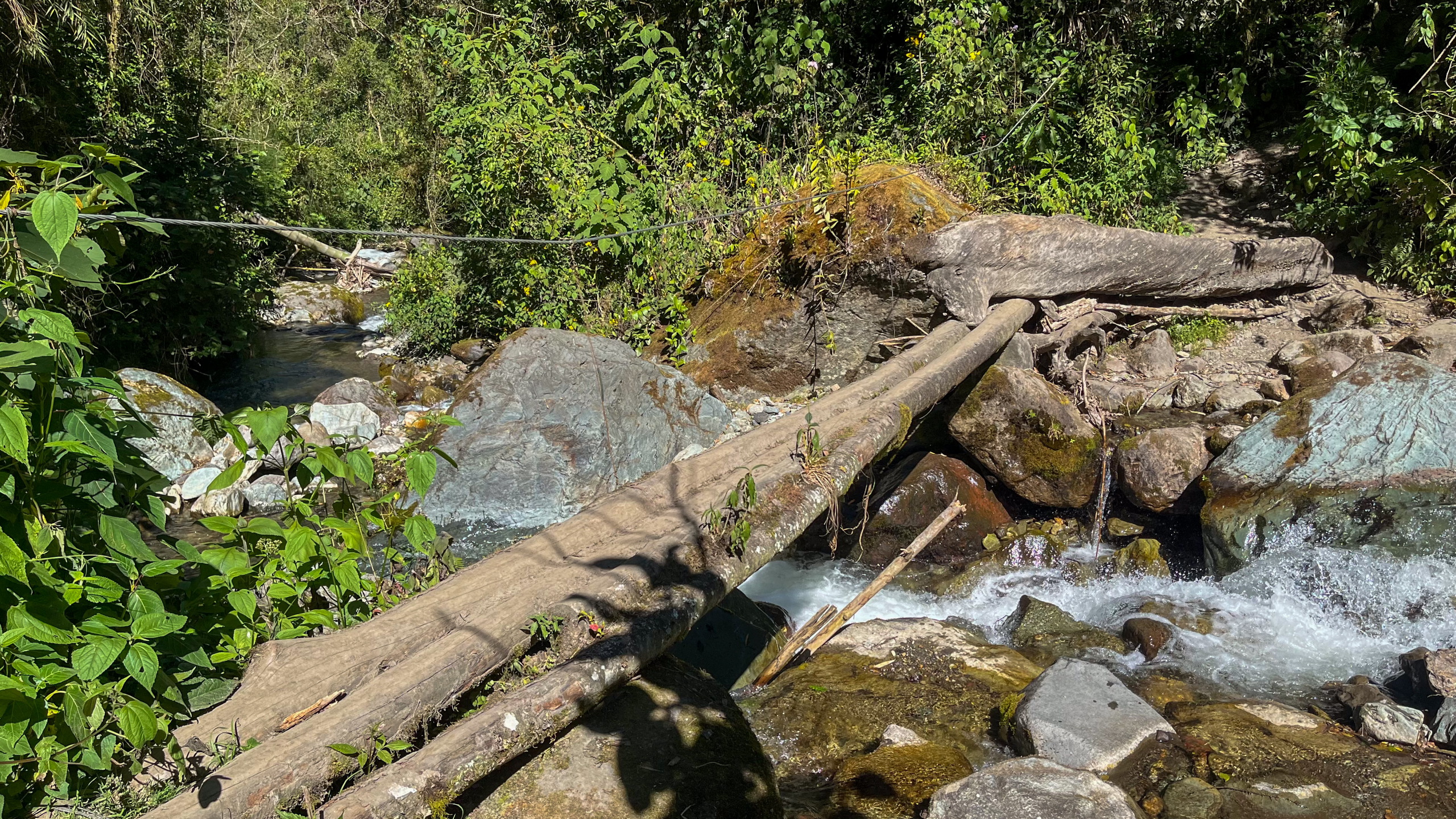 Um kurz vor neun Uhr starte ich mit der dreitägigen Wanderung im Los Nevados Nationalpark. Es soll auf über 4000 m hinauf gehen. Mögen die Qualen beginnen. Kaum bin ich an den Insta-Spots, mit den schönen und vor allem hohen Wachspalmen vorbei, bin ich alleine. Zuerst geht es mehrmals über einen Bach, wo ich einen Bergführer namens Santiago treffe. Cool. Ich frage ihn natürlich gleich zu meiner geplanten Tour und den Gegebenheiten des Weges aus und wir plaudern ein wenig. Er war fast am selben Tag beim Fitz Roy wie ich. Allerdings am Gipfel. 😁 Wie schräg ist das denn? Nachdem wir seine Gruppe mit dem anderen Guide erreicht haben, gibt es ein “Hasta Luego!”, denn wir haben mit der Finca Argentina das gleiche Tagesziel.