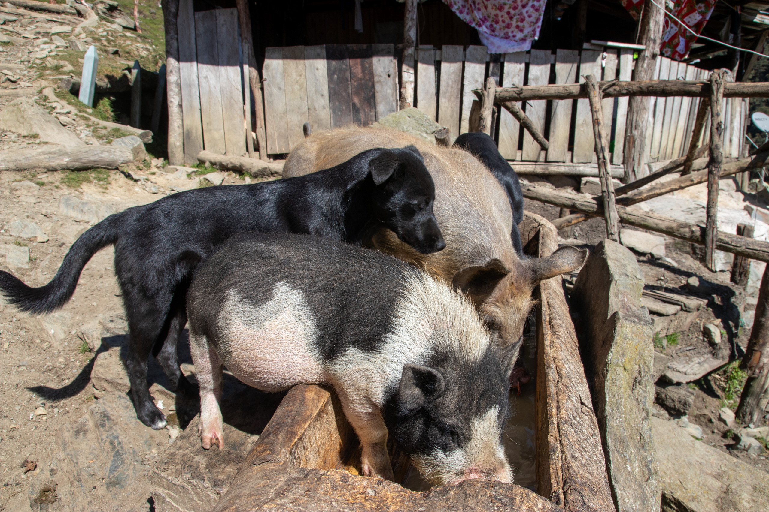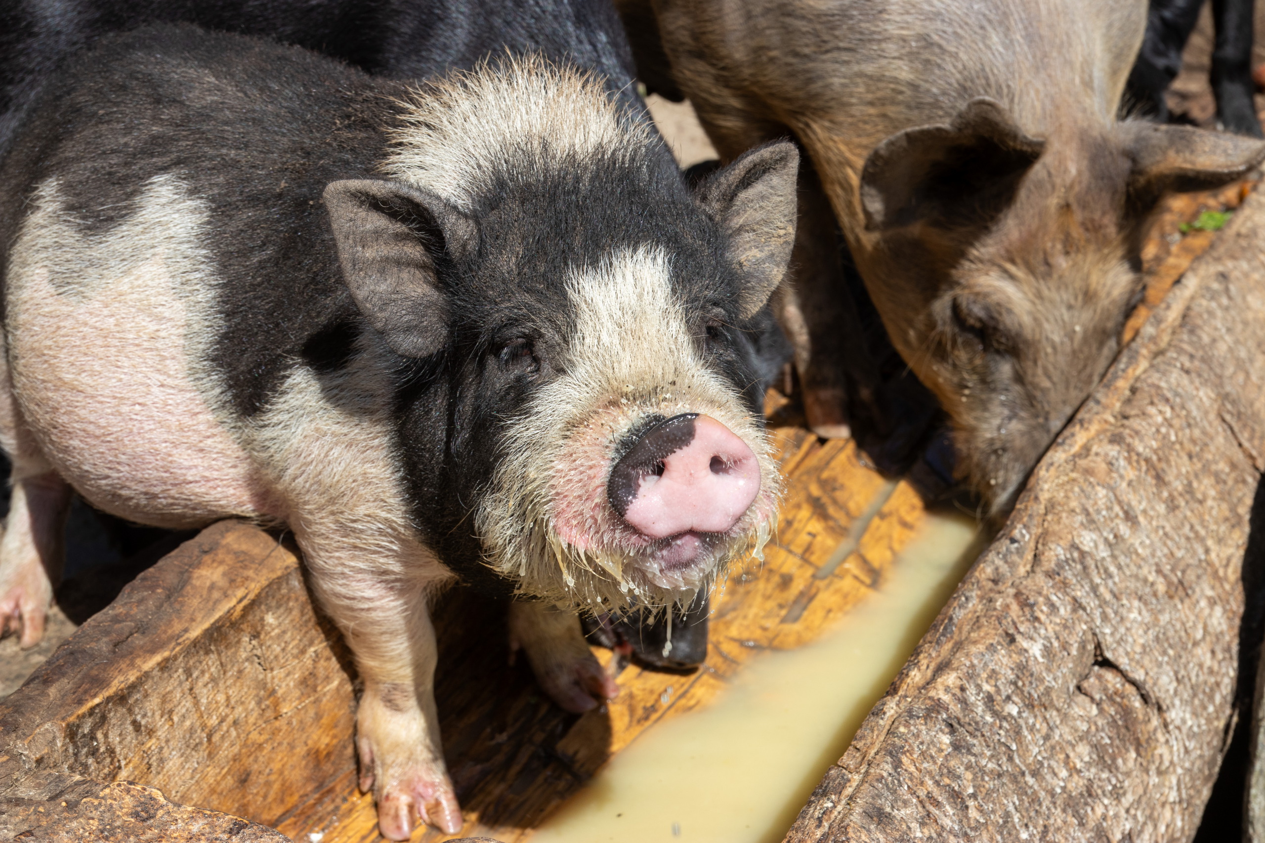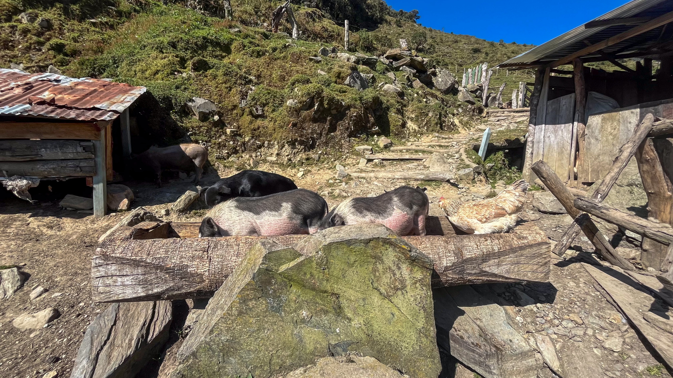 Vom Matsch, von dem die Typen vom Gummistiefelverleih gesprochen haben, ist nichts zu sehen. Ganz im Gegenteil, denn bei jedem Schritt staubt es. Gegen dreiviertel drei Uhr erreiche ich schließlich die Finca Argentina, wo mich Gloria herzlich willkommen heißt und mir mein Bett zeigt. Alles ist äußerst basic, aber es gibt alles, was man braucht. Zu meiner Freude laufen unzählige Tiere herum. Esel, Schafe, Schweine, Gänse, Hühner, Hunde und ein paar Katzen. Ein paar der Tiere fressen gerade aus dem Futtertrog. Zwei kleine Schweine hauen sich ordentlich ins Zeug und stehen sogar mitten drinnen. 😁