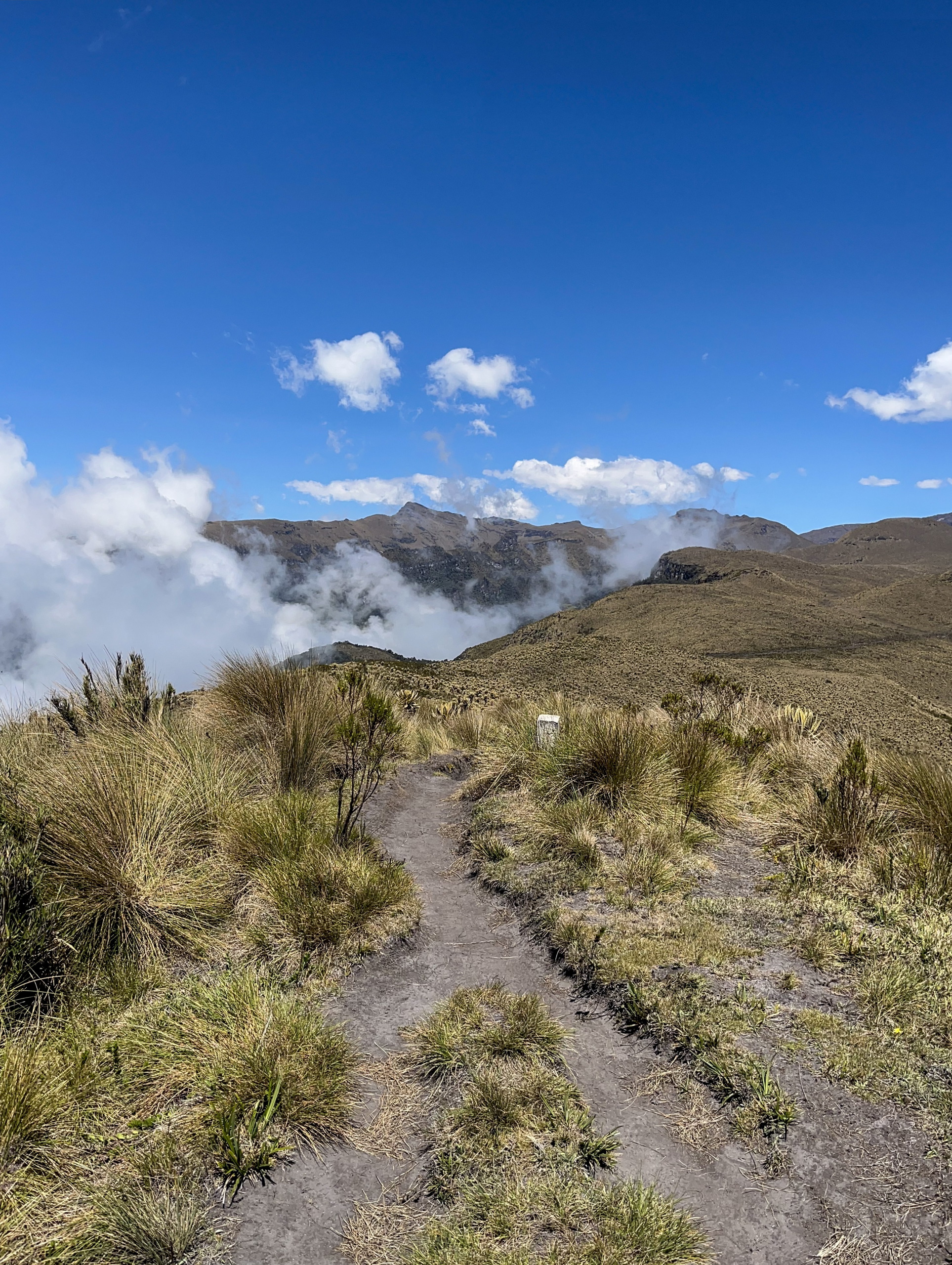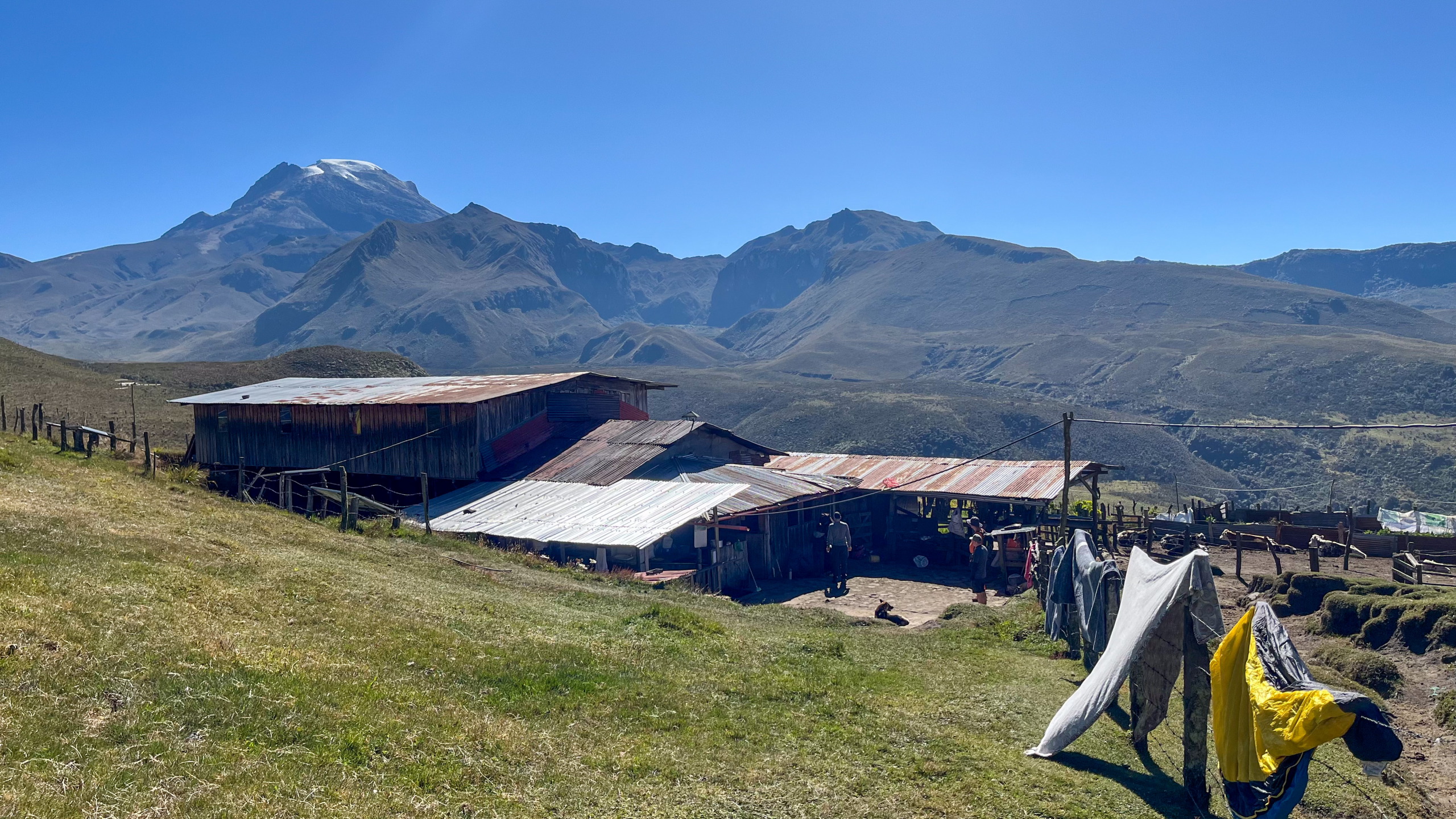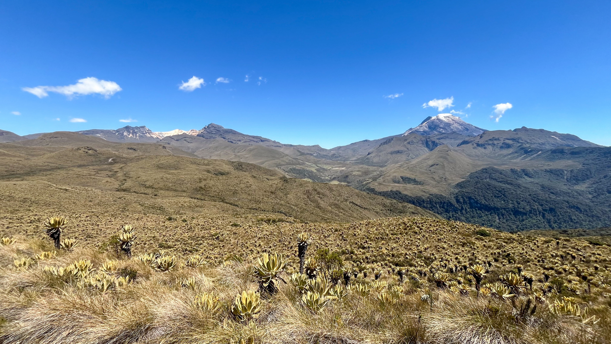 Nach einer tollen Nacht im Zelt stehe ich um sieben Uhr auf, packe alles zusammen und gehe frühstücken. Ich quatsche mit einem Mädchen aus Polen, das nun in Zürich lebt. Sie hat Probleme mit der Höhe und ist nicht bereits gestern mit dem Rest der Gruppe um elf Uhr am Abend zum Gipfel des Nevado del Tolima aufgebrochen. Ein Bursche aus ihrer Gruppe kommt samt Guide zurück. Er musste auf 4800 m abbrechen, da ihm die Luft ausging. Kein Wunder, denn er ist gleich schlecht akklimatisiert wie ich und von hier aus sind es 1600 Hm bis zum Gipfel. Ich quatsche noch eine Weile mit ihm, verabschiede mich von den Leuten aus Alaska und Patricia und breche bei wiederum schönstem Wetter auf. Am kurzen Weg zur Finca Primavera kommt mir tatsächlich Hernan mit seiner Gruppe entgegen. Er gibt mir noch einen Tipp für Cartagena, bevor ich weitergehe. 👍 Nach der Finca Primavera geht es immer leicht bergauf und man hat freie Sicht auf den Nevado del Tolima. Nice.