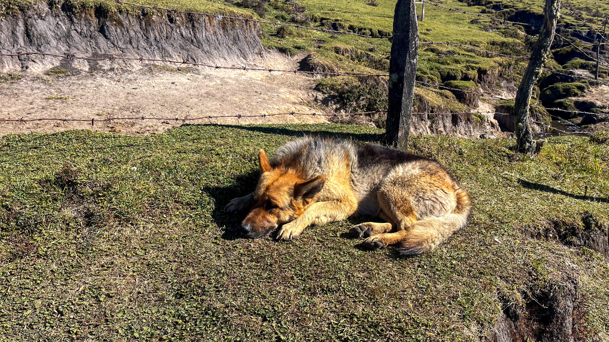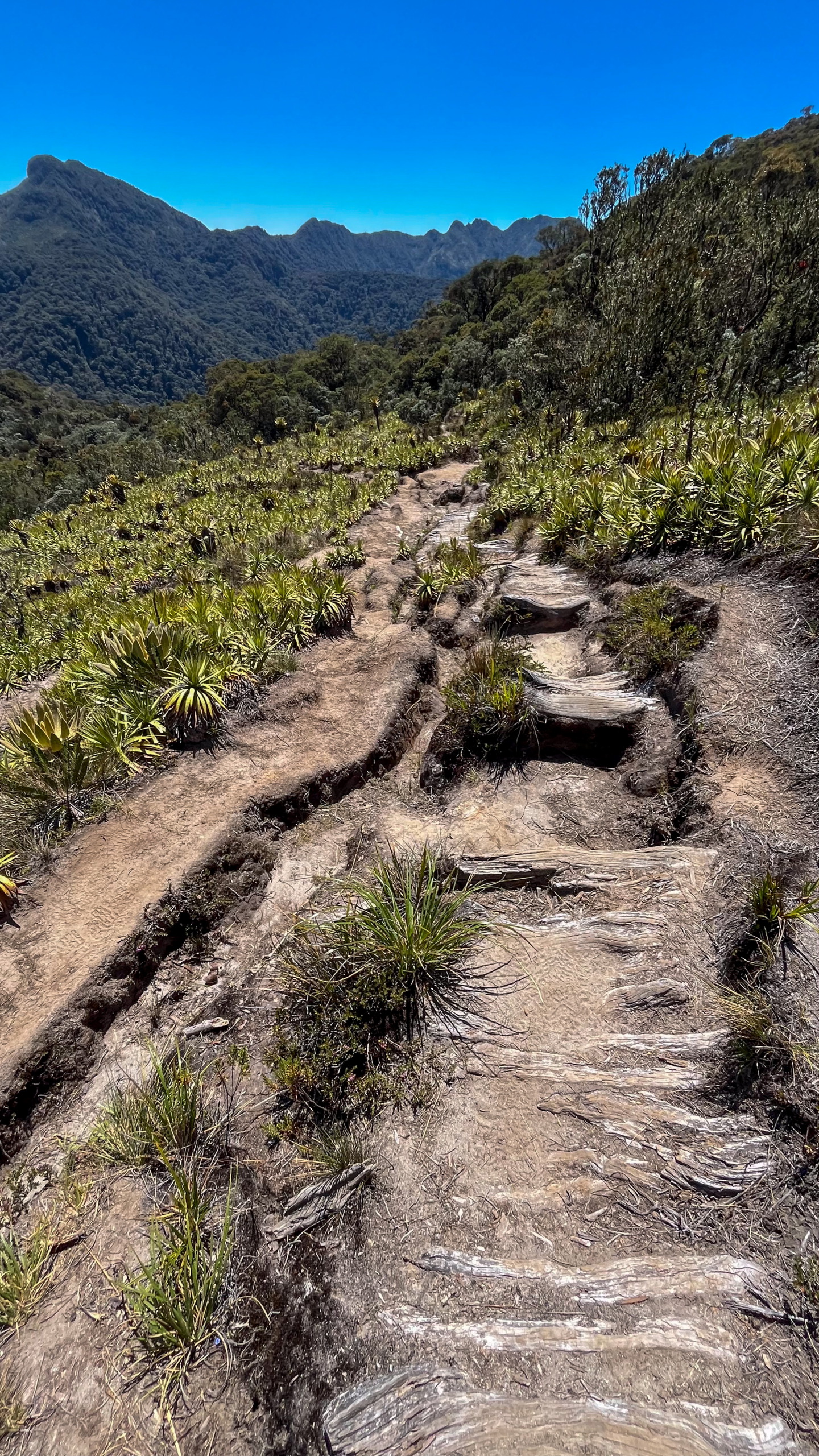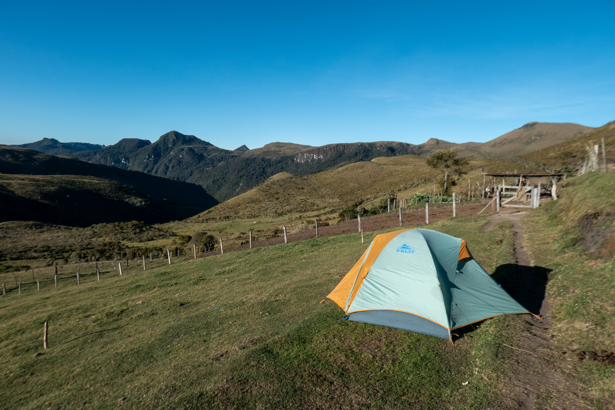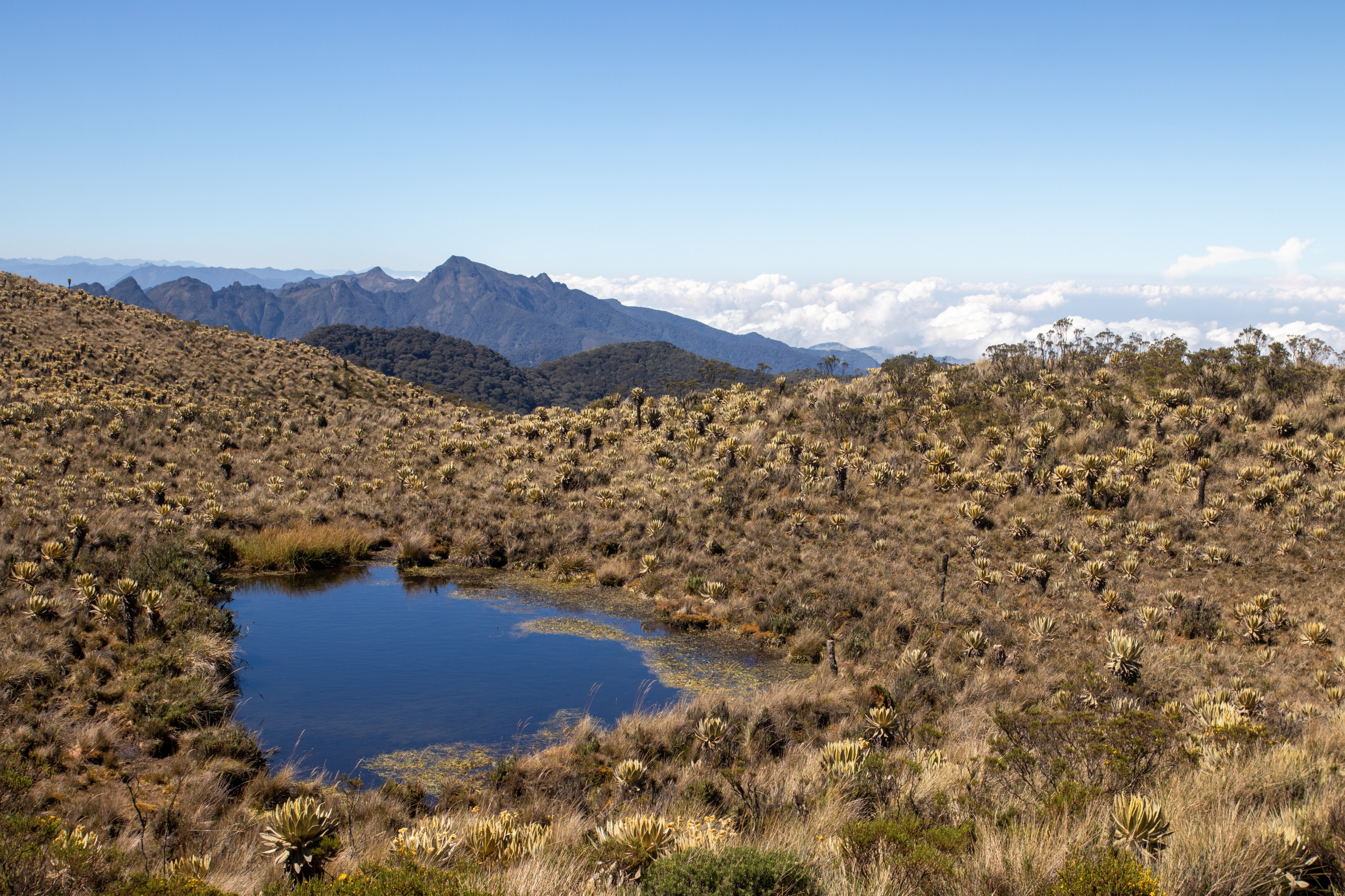 Nach einer tollen Nacht im Zelt stehe ich um sieben Uhr auf, packe alles zusammen und gehe frühstücken. Ich quatsche mit einem Mädchen aus Polen, das nun in Zürich lebt. Sie hat Probleme mit der Höhe und ist nicht bereits gestern mit dem Rest der Gruppe um elf Uhr am Abend zum Gipfel des Nevado del Tolima aufgebrochen. Ein Bursche aus ihrer Gruppe kommt samt Guide zurück. Er musste auf 4800 m abbrechen, da ihm die Luft ausging. Kein Wunder, denn er ist gleich schlecht akklimatisiert wie ich und von hier aus sind es 1600 Hm bis zum Gipfel. Ich quatsche noch eine Weile mit ihm, verabschiede mich von den Leuten aus Alaska und Patricia und breche bei wiederum schönstem Wetter auf. Am kurzen Weg zur Finca Primavera kommt mir tatsächlich Hernan mit seiner Gruppe entgegen. Er gibt mir noch einen Tipp für Cartagena, bevor ich weitergehe. 👍 Nach der Finca Primavera geht es immer leicht bergauf und man hat freie Sicht auf den Nevado del Tolima. Nice.
