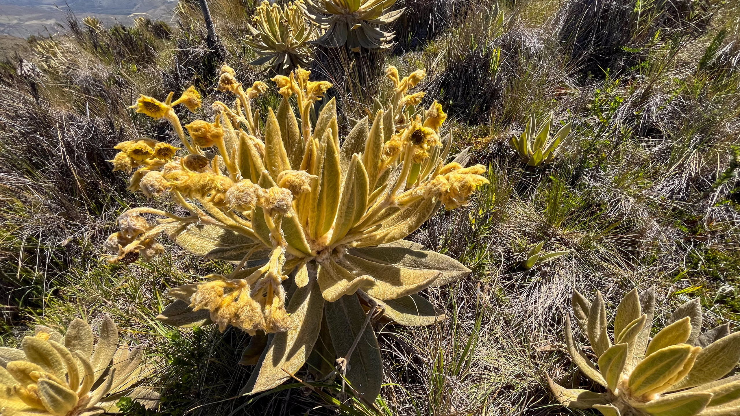 Kurz vor Estrella de Agua fülle ich meinen Wasservorrat auf und verputze die letzten Empanadas. Immer wieder führt der Weg etwas bergauf, was mich ordentlich ausbremst. Bin ich doch immerhin noch auf einer Höhe von über 3000 m. Plötzlich sehe ich direkt vor mir einen Vogel auf einem Bein am Weg stehen. Er sieht etwas ramponiert aus und macht sich nichts aus mir. Ich kann mit der Kamera ganz nahe kommen. Zuerst dachte ich, er ist verletzt, dann wechselt er aber das Bein und hüpft auch mal auf beiden Beinen herum, während er Insekten vom Boden pickt. Klar, dass ich ihm bei dem üppigen Nahrungsangebot ziemlich egal bin. 😀 Auch nach Estrella de Agua geht es immer wieder einmal hoch, aber das ist nichts im Vergleich dazu, was mich noch erwartet.