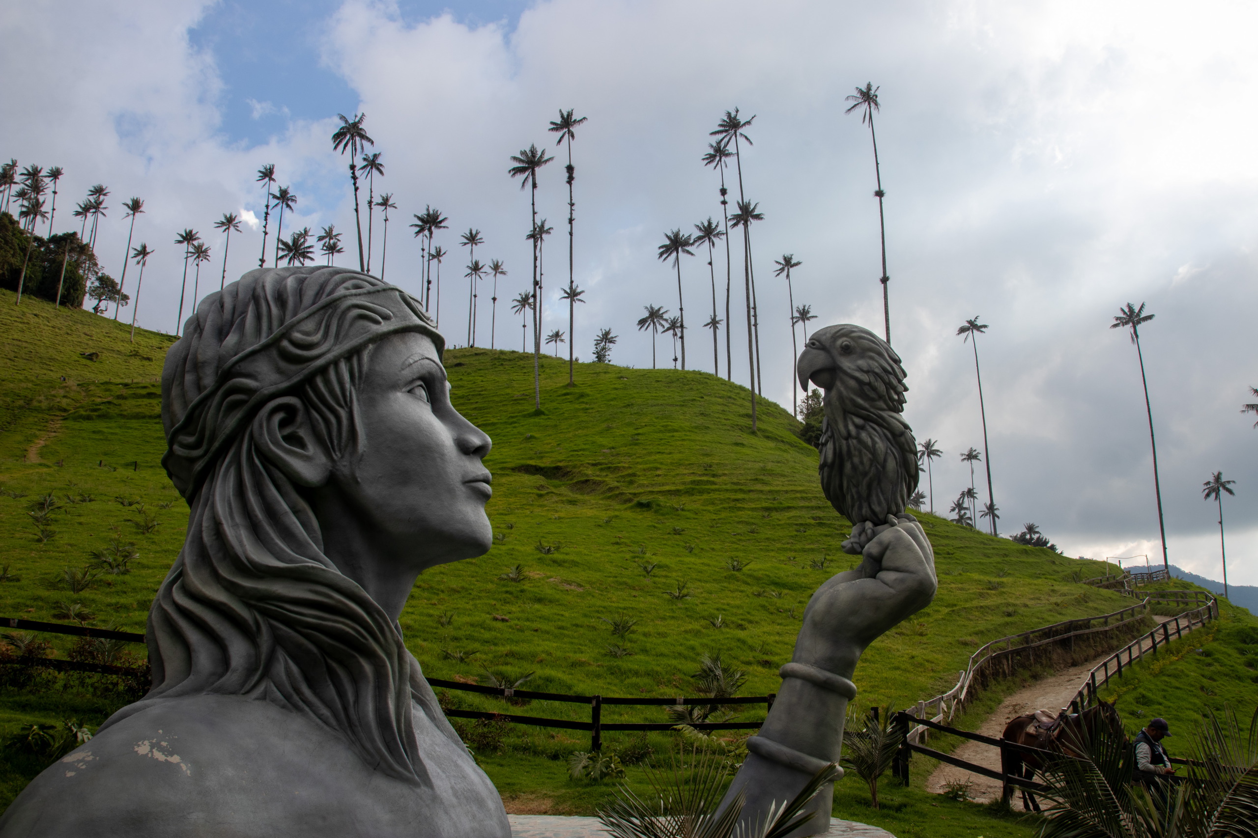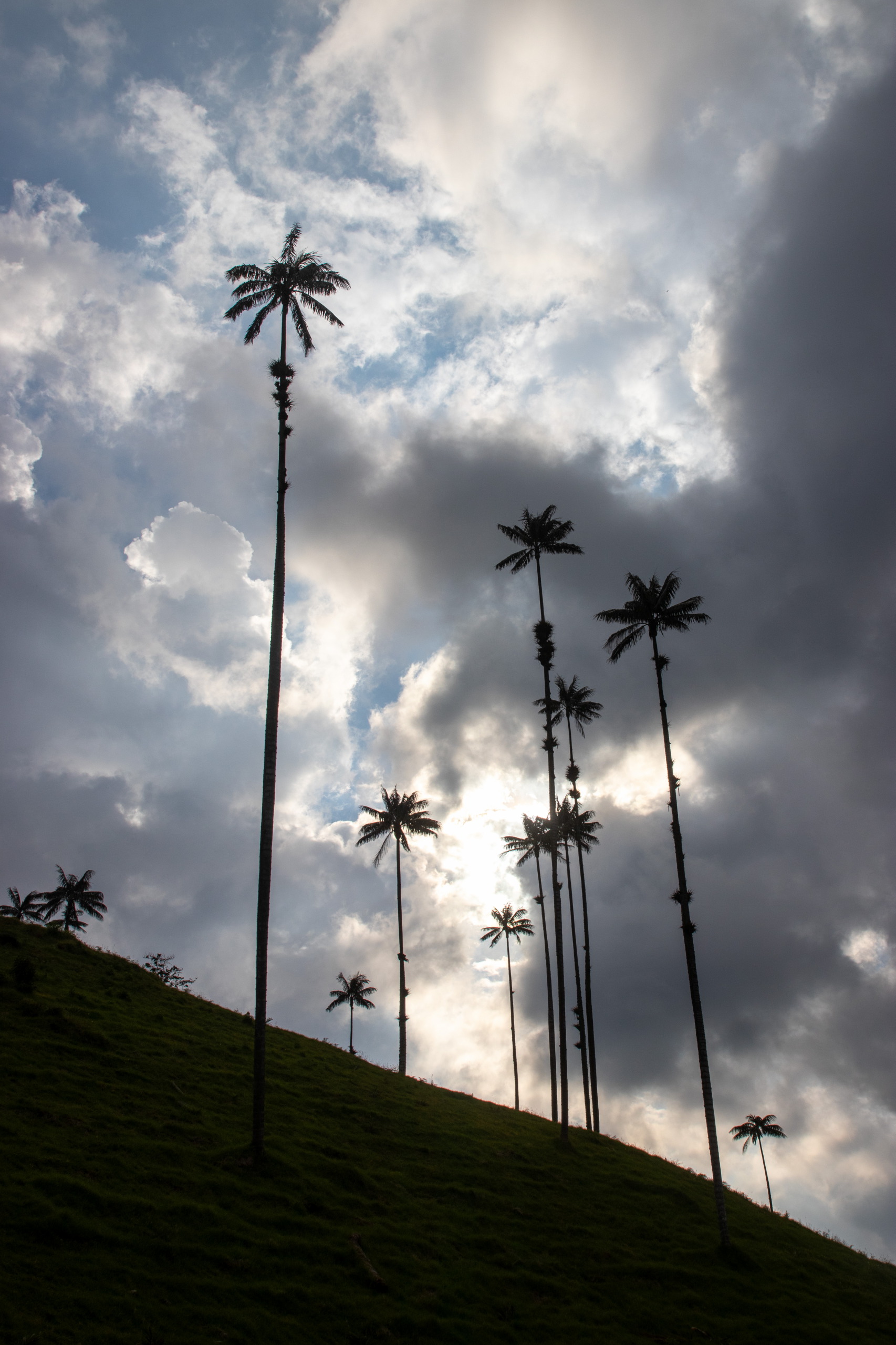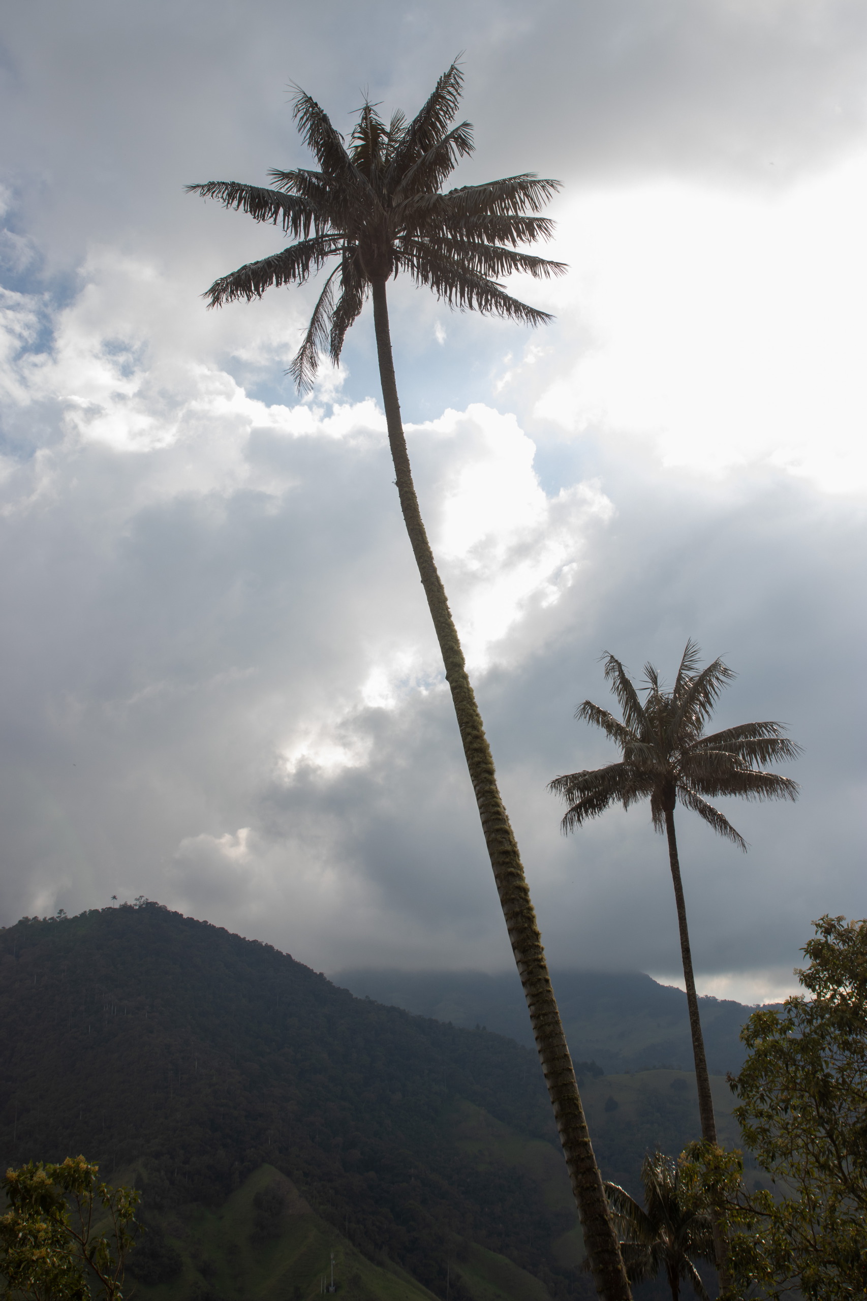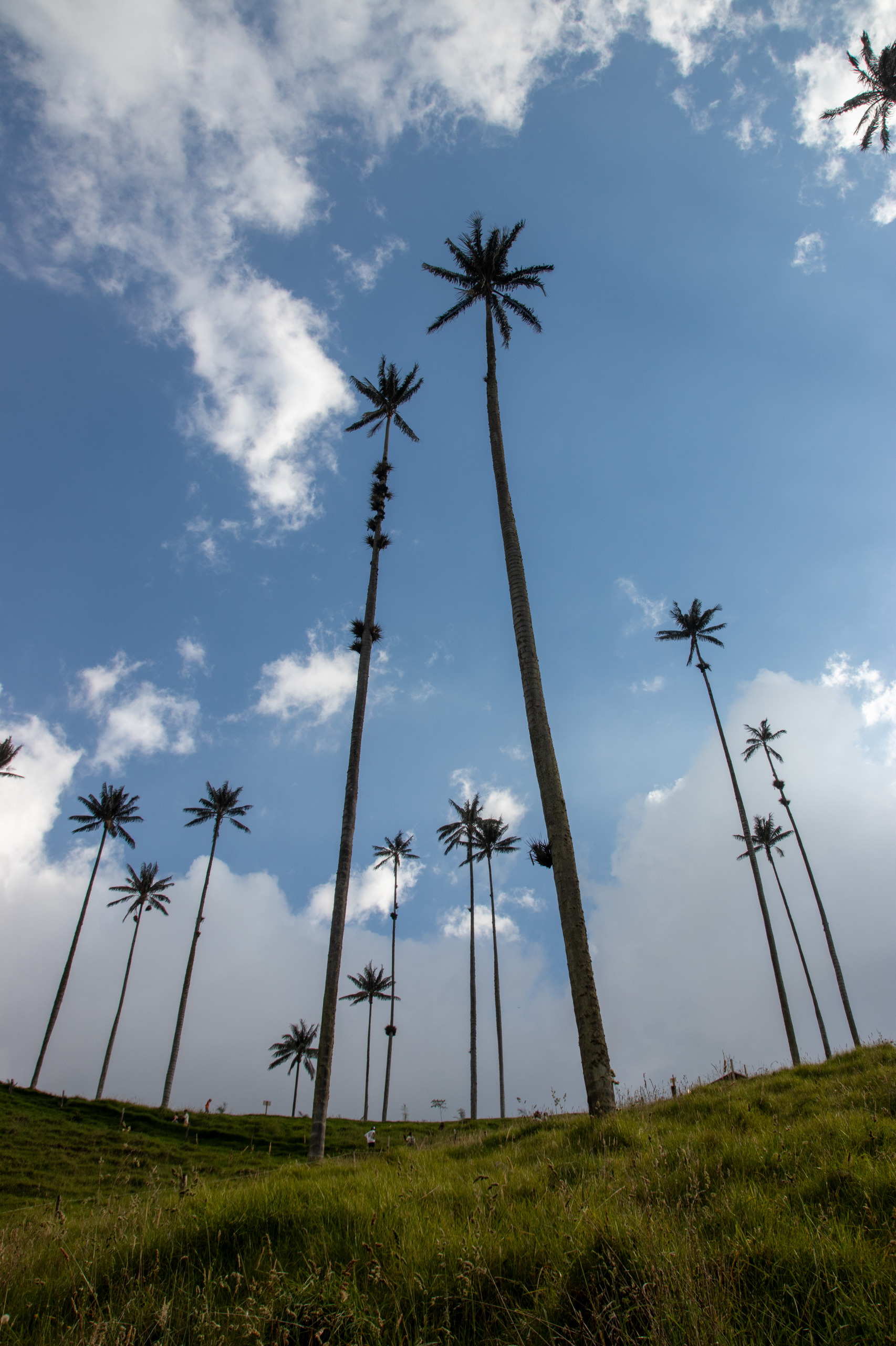 Ich komme zu einer Abzweigung, mein geplanter Weg ist jedoch gesperrt und die Alternative geht noch einmal 200 Hm hoch. Alter, muss das jetzt noch sein? Oben bei einem netten Haus angekommen geht es eine Straße entlang. Plötzlich rieche ich Kiefern? Ich blicke auf und tatsächlich stehe ich in einem Kiefernwald. Da war wohl jemandem langweilig. Weiter geht der öde Straßenhatscher, bis ich zu einem Schranken komme. Wenn ich weiter will, sind 20000 COP fällig. Tja, da wäre ein Schild bei der Abzweigung nett gewesen. Der Typ meint, dass das nicht geht, da es nicht sein Grundstück ist. Jaja, genau. Ich bekomme ein Armband und marschiere weiter bergab, bis ich den Bosque de Palmas erreiche. Die riesigen Wachspalmen, die höchsten Palmen der Welt, sehen schon spektakulär aus, wenn auch das Gelände eher zu einem Insta-Spot umfunktioniert wurde.