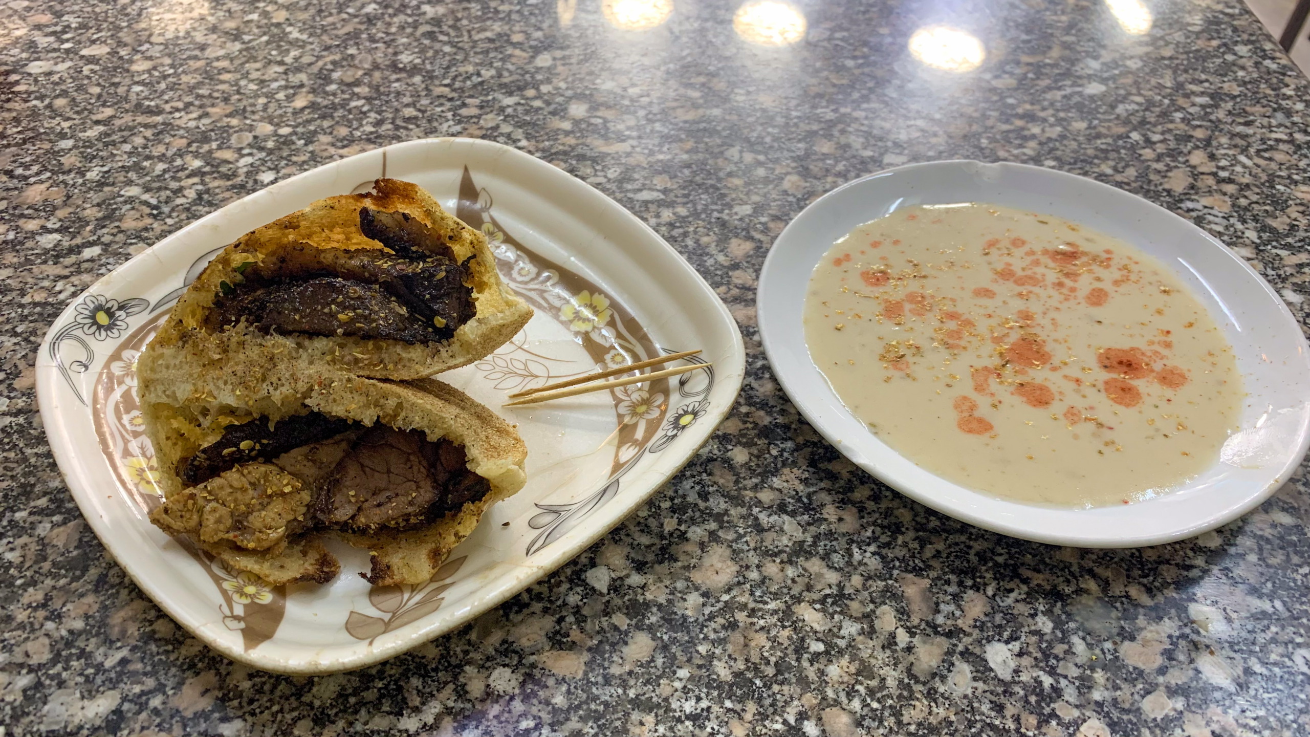 Ich schlendere weiter zu meinem bewährten Essensstand. Heute zeige ich auf frittierten Karfiol, der wie sonst die Falafel mit etwas Salat und Tahina in ein Fladenbrot kommt. Und fertig. Da gestern ein Falafel in Model Village nur die Hälfte gekostet hat, gebe ich dem Verkäufer nur einen 10er und ich bekomme ein 👍. Tja, die Erkenntnis über den vermeintlich richtigen Preis kommt etwas spät für diesen Urlaub. Naja, was solls. Geht eh nur um Euro Cent-Beträge. Gut, dass es mir gelungen ist, mich von dem Fakt mehrmals täglich zu viel zu bezahlen, nicht die Freude an der Reise und den ansonsten äußerst netten und hilfsbereiten Menschen nehmen zu lassen. Und in Summe kommt nicht wirklich viel zusammen, dass ich zu viel bezahle.