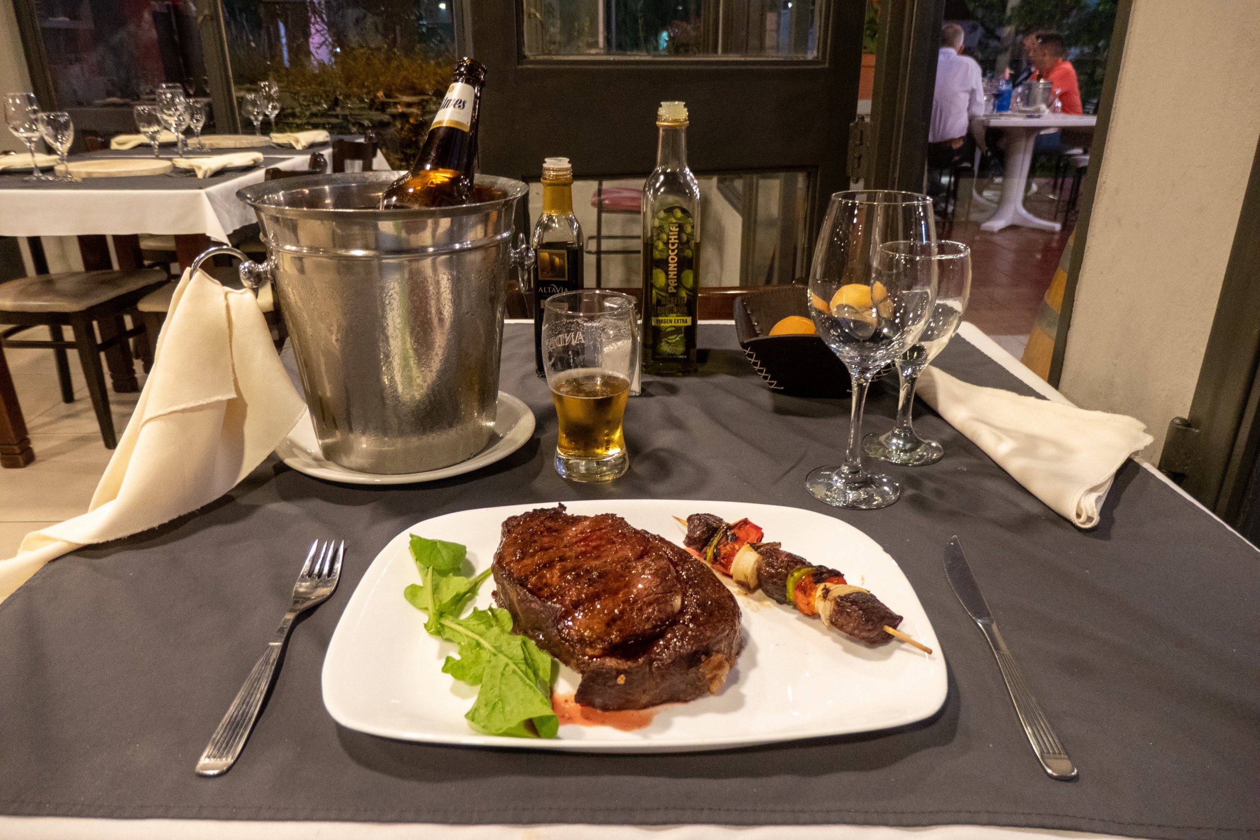 An meinem letzten Abend in Argentinien muss noch einmal ein Steak auf den Teller. Um halb acht Uhr bin ich der erste Gast im Restaurant. Auch heute schmeckt es köstlich. Anstatt vernünftigerweise nach hause zu gehen zieht es mich noch magisch auf das Weinfest. Die halbe Stadt ist auf den Beinen und stellt sich bei den Weinverkostungen an. Auf der Bühne wird Folklore zum Thema Wein vorgeführt und auf der Rückseite der Bühne wird die Choreographie von jeder Gruppe noch einmal durchgegangen. Ok, so spannend ist das Fest nun doch nicht und ich düse mit dem Taxi heim.