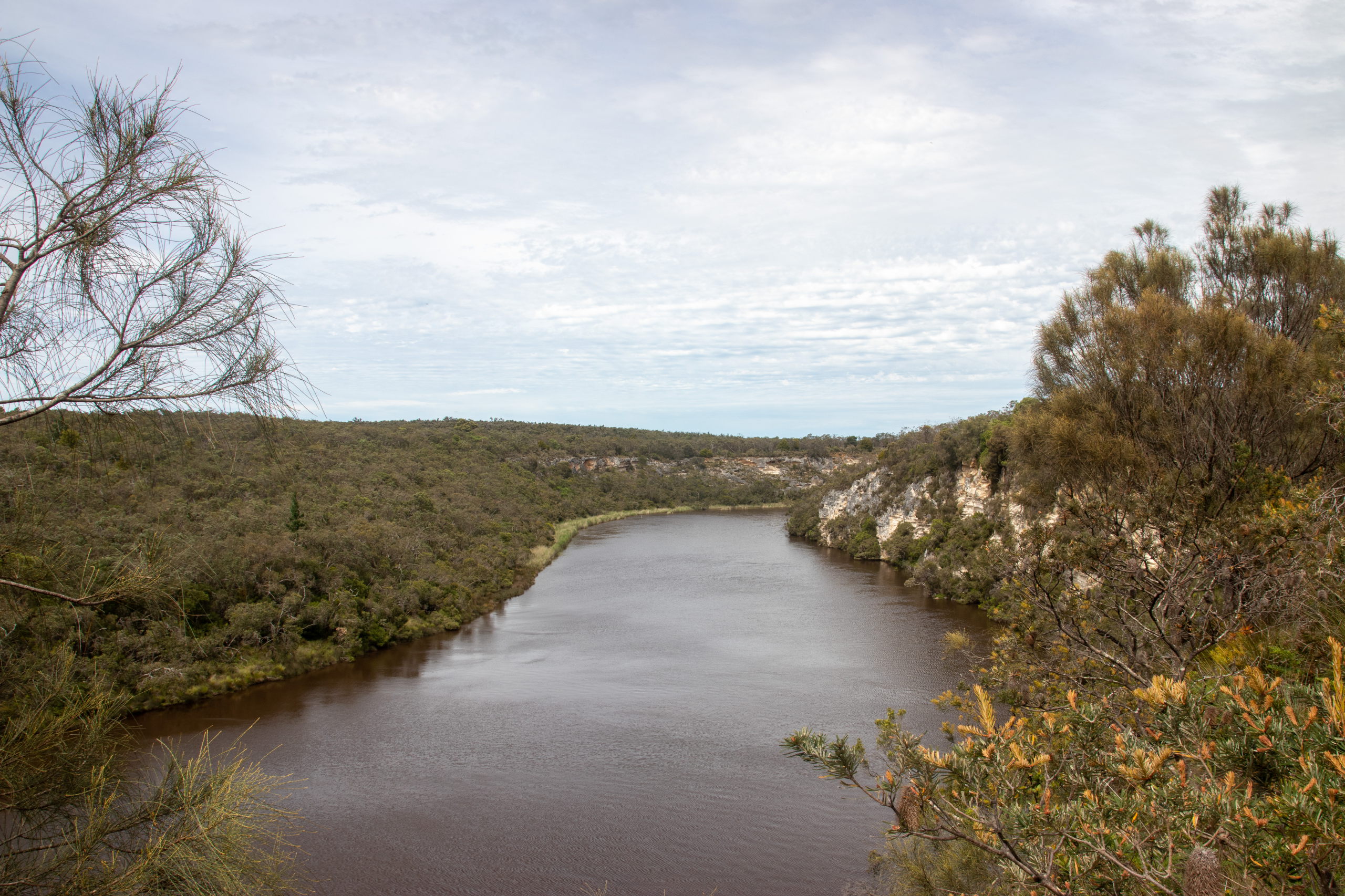 Nach einem gemütlichen Start in den Tag fahre ich nach Westen und entdecke ein Schild zu den Princess Margaret Rose Caves. Caves? Klingt spannend und so biege ich spontan ab. Entlang einer Schotterstraße durch riesige Baumplantagen gelange ich zum Parkplatz. Wegen Bauarbeiten geschlossen. Grrr. Wie wäre es mit einem Hinweis am Schild? Immerhin kann man zu einem Aussichtspunkt über einen Fluss wandern. Die Runde ist nicht gerade spannend, aber besser als umsonst hierher gefahren zu sein. Außerdem kann ich in schöner Umgebung frühstücken. Ich bin allerdings nicht alleine, denn ein Flötenvogel beobachtet mich und kommt näher, um eventuell etwas abzustauben. 😀 Vollgestopft mit Erdnussbutterbroten düse ich über eine andere Straße zurück auf die Hauptstraße. Hier steht nun auch ein Schild mit einem Hinweis, dass die Höhle geschlossen ist. Grrr.