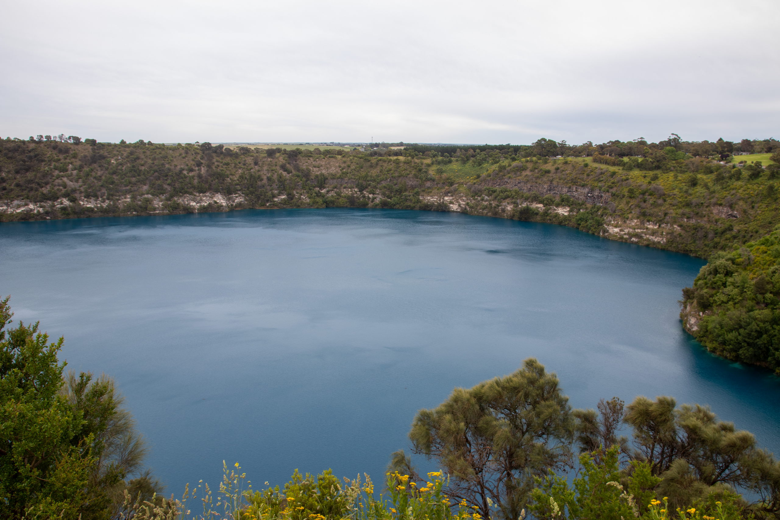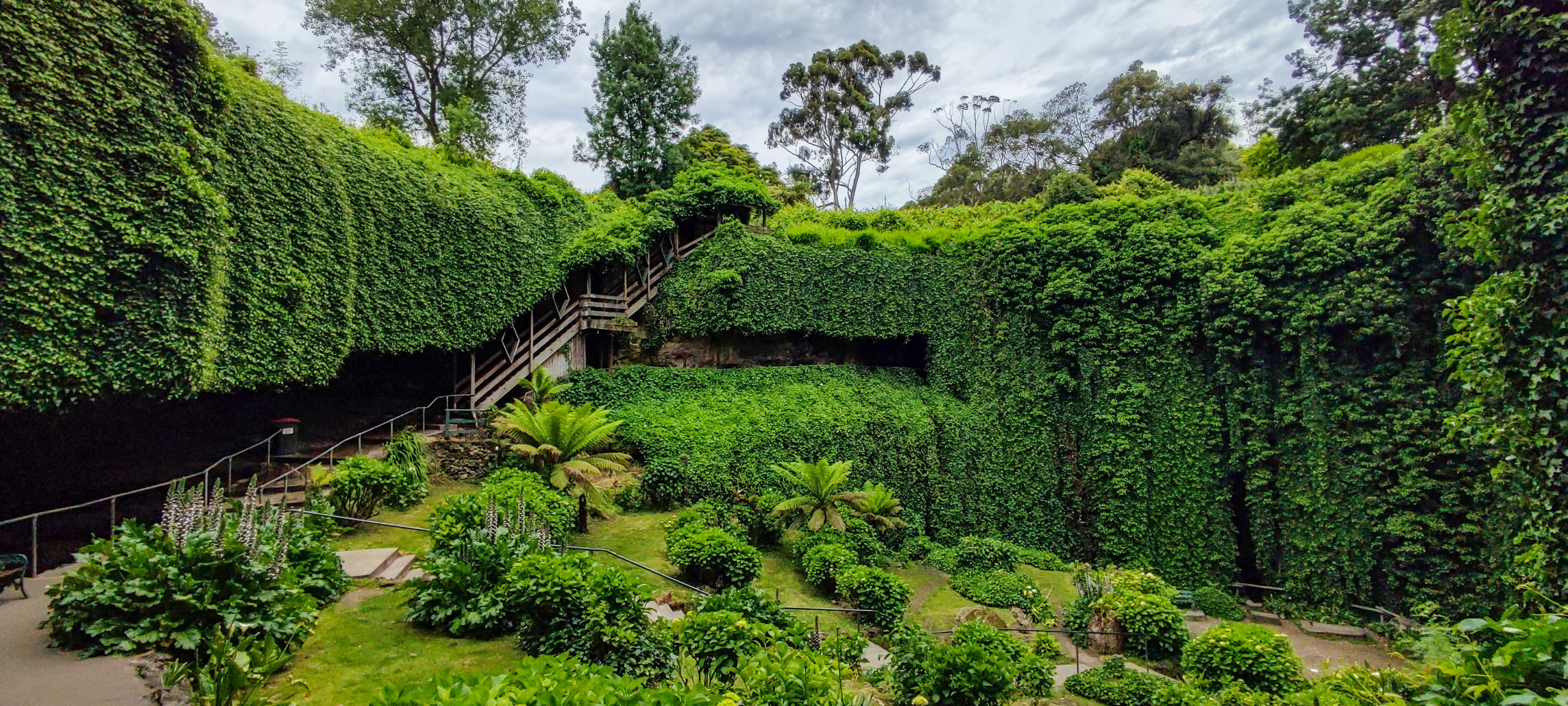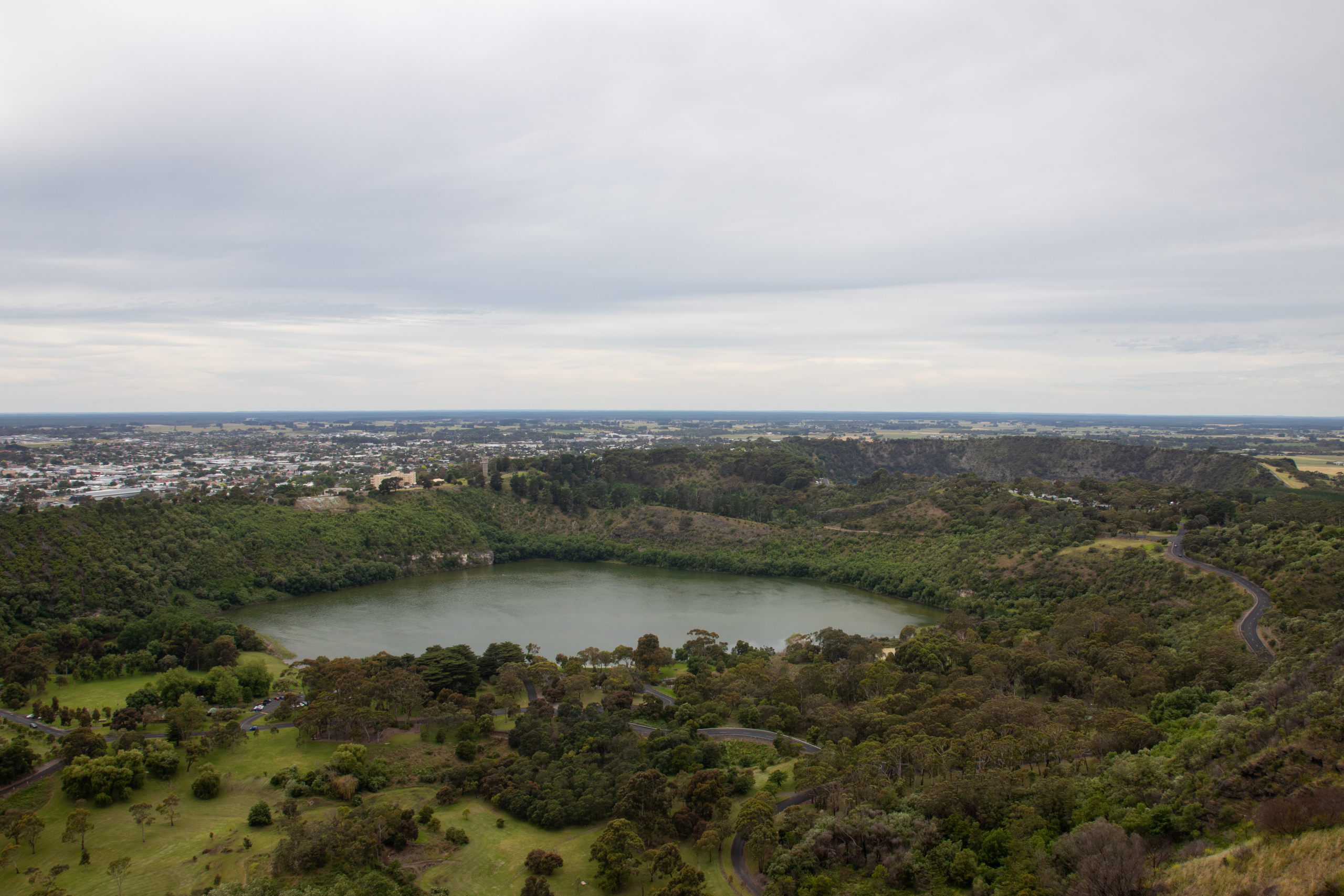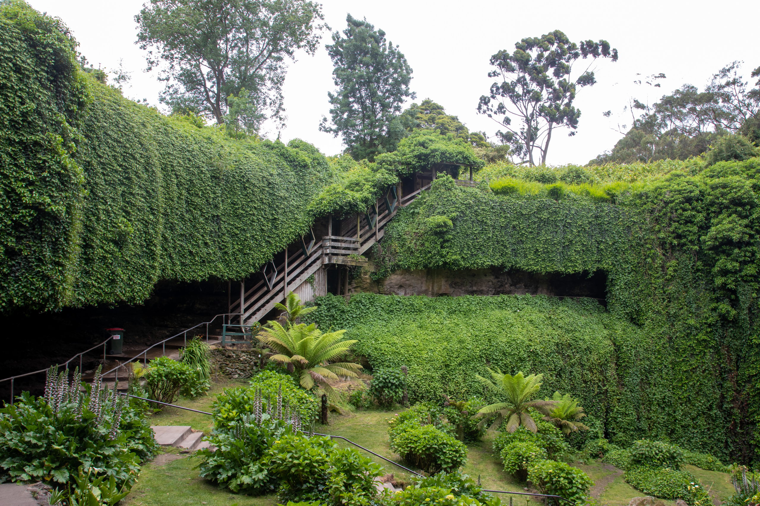 Ein Stück weiter westlich ist an der Grenze zu South Australia die Uhr um eine halbe Stunde zurückzustellen. Ja, tatsächlich, um eine halbe Stunde. Angekommen in Mount Gambier fahre ich zuerst zum Umpherston Sinkhole. Bei dem Sinkhole handelt es sich um eine eingestürzte Höhle, die 1886 von James Umpherston in einen prächtig grünen Garten verwandelt wurde. Hmmm, ist ziemlich schön geworden. Ein Stück weiter spaziere ich ein Stück rund um den Blue Lake, der seinem Namen durchaus gerecht wird, und hirsche noch hoch zum Centenary Tower, von dem aus man einen schönen Ausblick über Mount Gambier und zum Valley Lake hat.