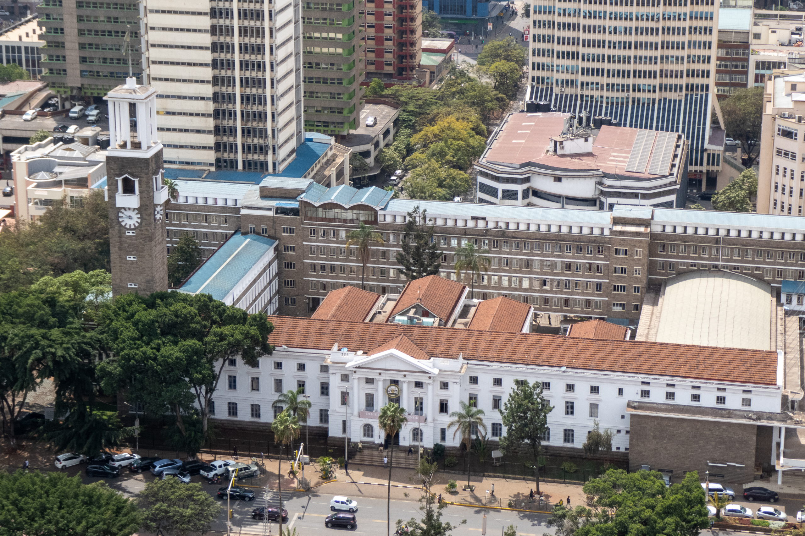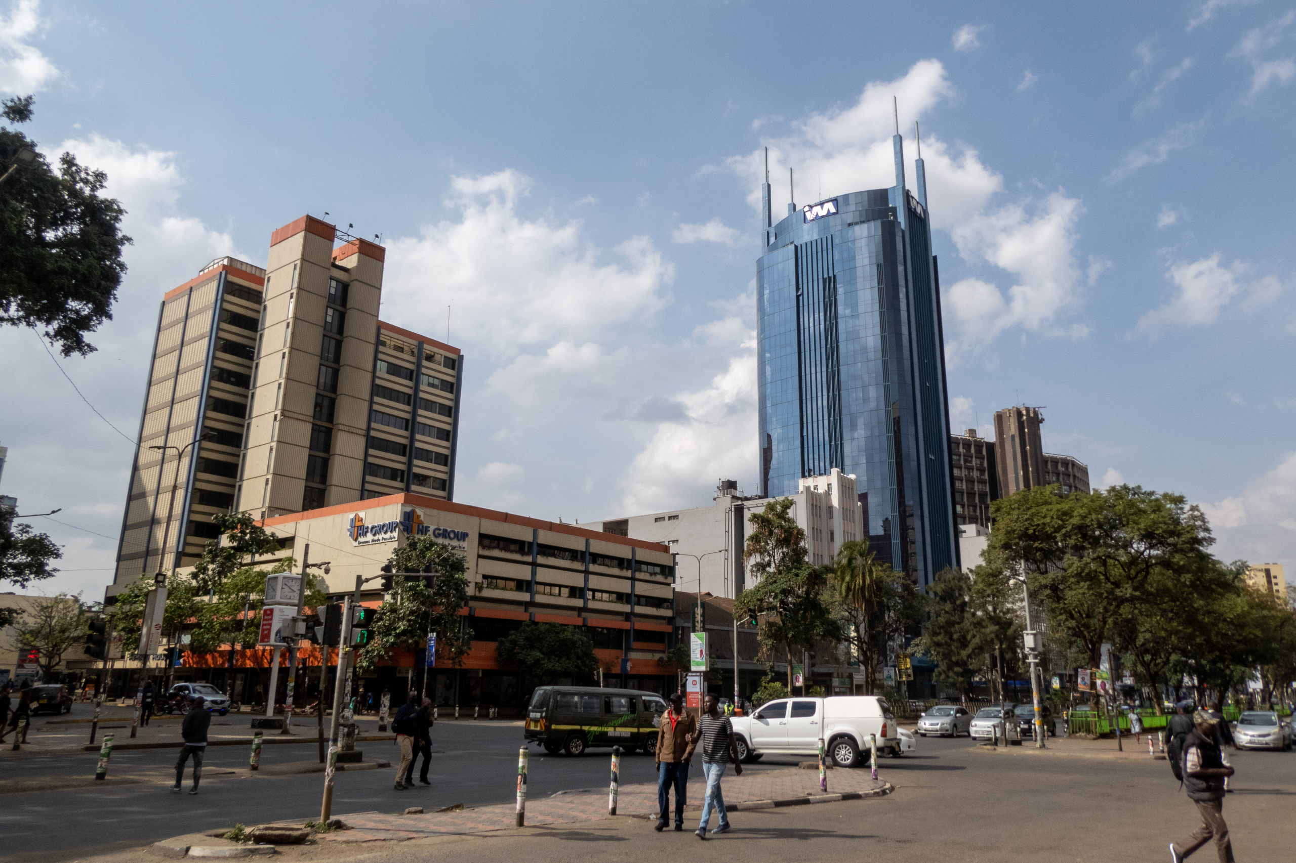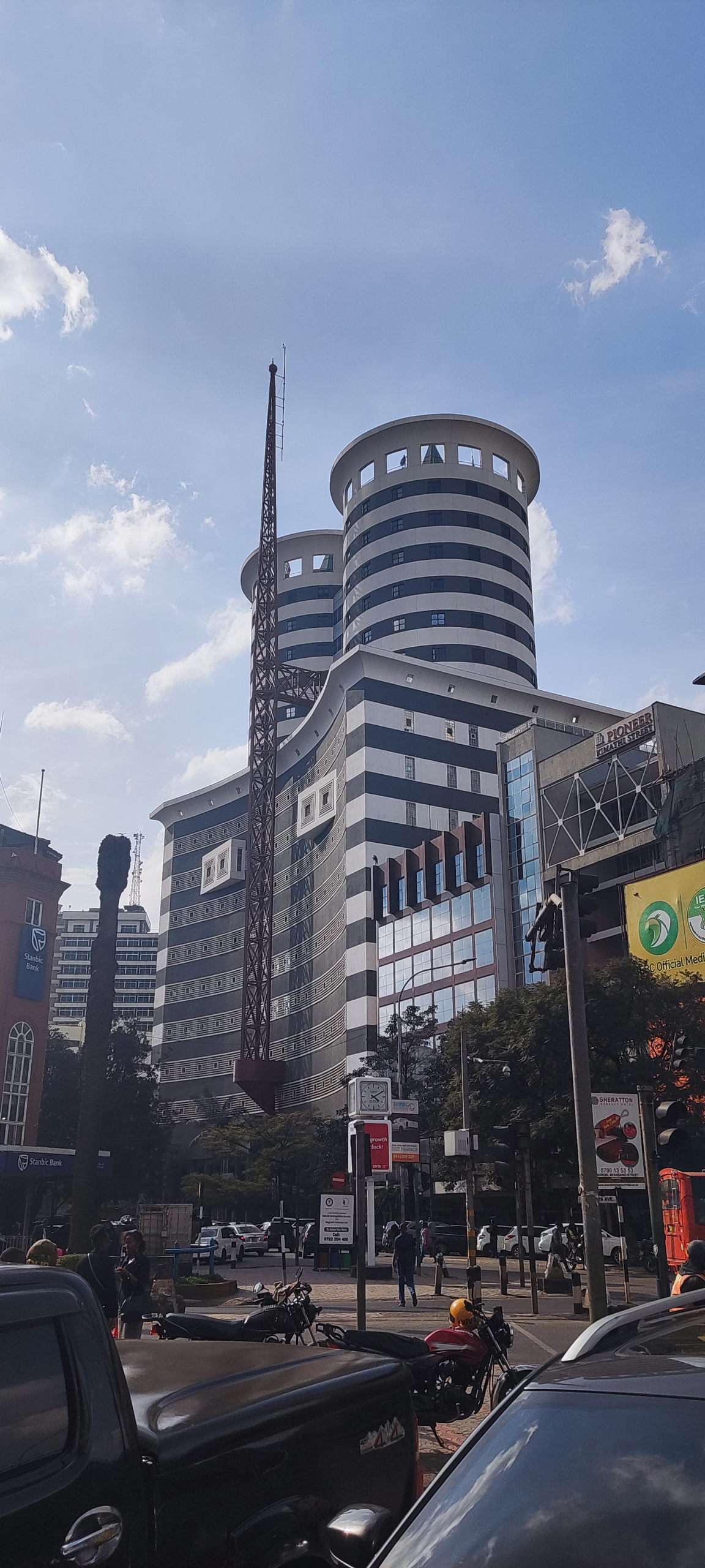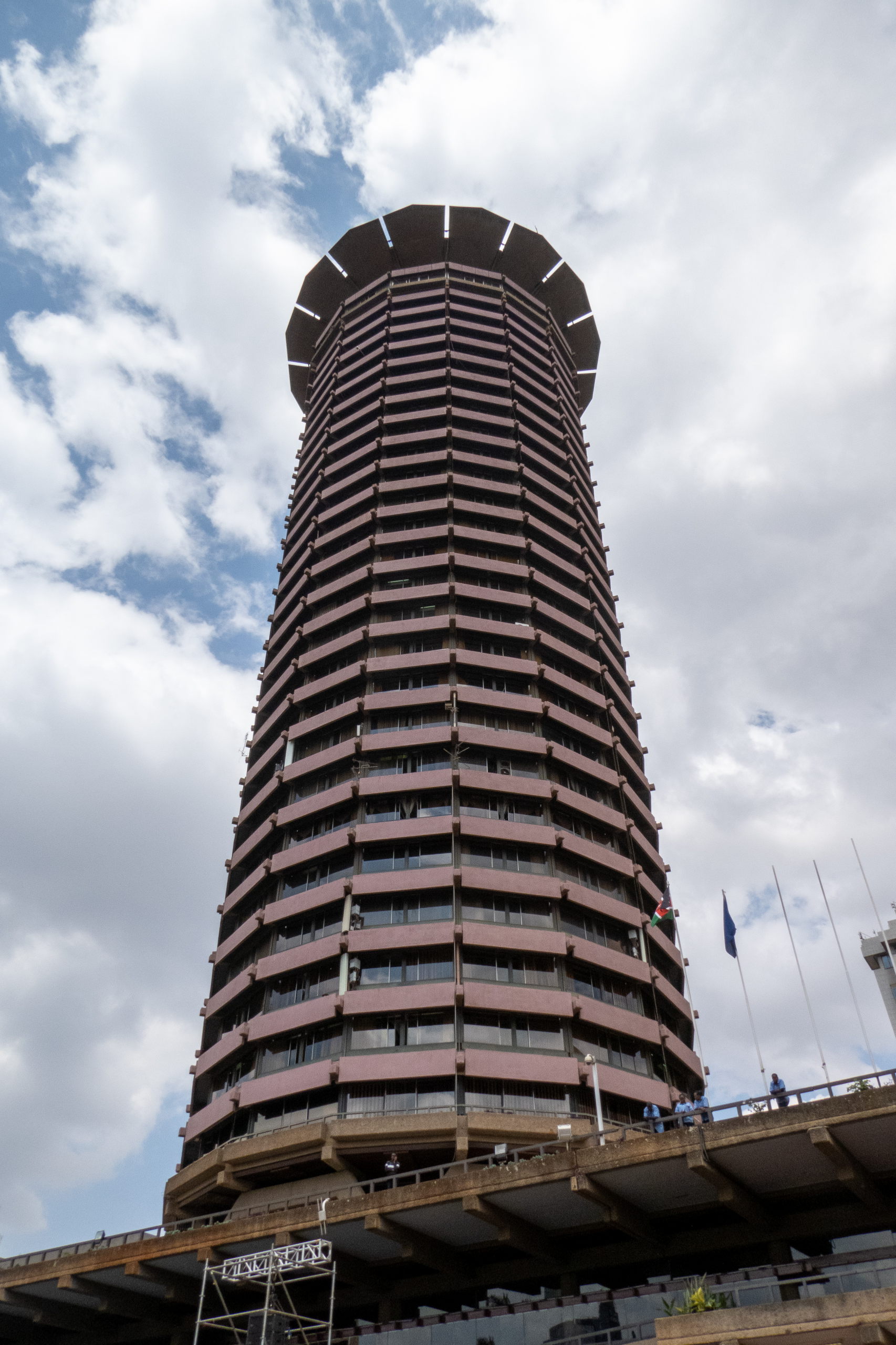 Ich wache um acht Uhr auf, bin aber alles andere als munter und pfeife weiter bis um ein Uhr. Vielleicht hätte ich mir das Radeln gestern sparen sollen. Die Liste der Sehenswürdigkeiten, die ich mir ansehen möchte, ist schnell erstellt, da nicht viel Auswahl. 😁 Zuerst soll es auf den KICC Tower rauf gehen. Lt. meinem Uber-Fahrer ist dort heute ein Treffen von Politikern. Nach reichlich Sicherheitschecks darf ich aber trotzdem rein. Sie akzeptieren nur Kartenzahlung. Die habe ich aber sicherheitshalber in der Unterkunft gelassen und so muss ich zum MPESA-Shop, zahle das Geld ein und es wird gegen eine kleine Gebühr an den entsprechenden Account transferiert. Check. Mit dem Lift geht es in den 27 Stock und dann noch einmal vier Stockwerke hoch. Die Aussicht ist super und sogar der Nairobi National Park und die Ngong Hills sind zu sehen.