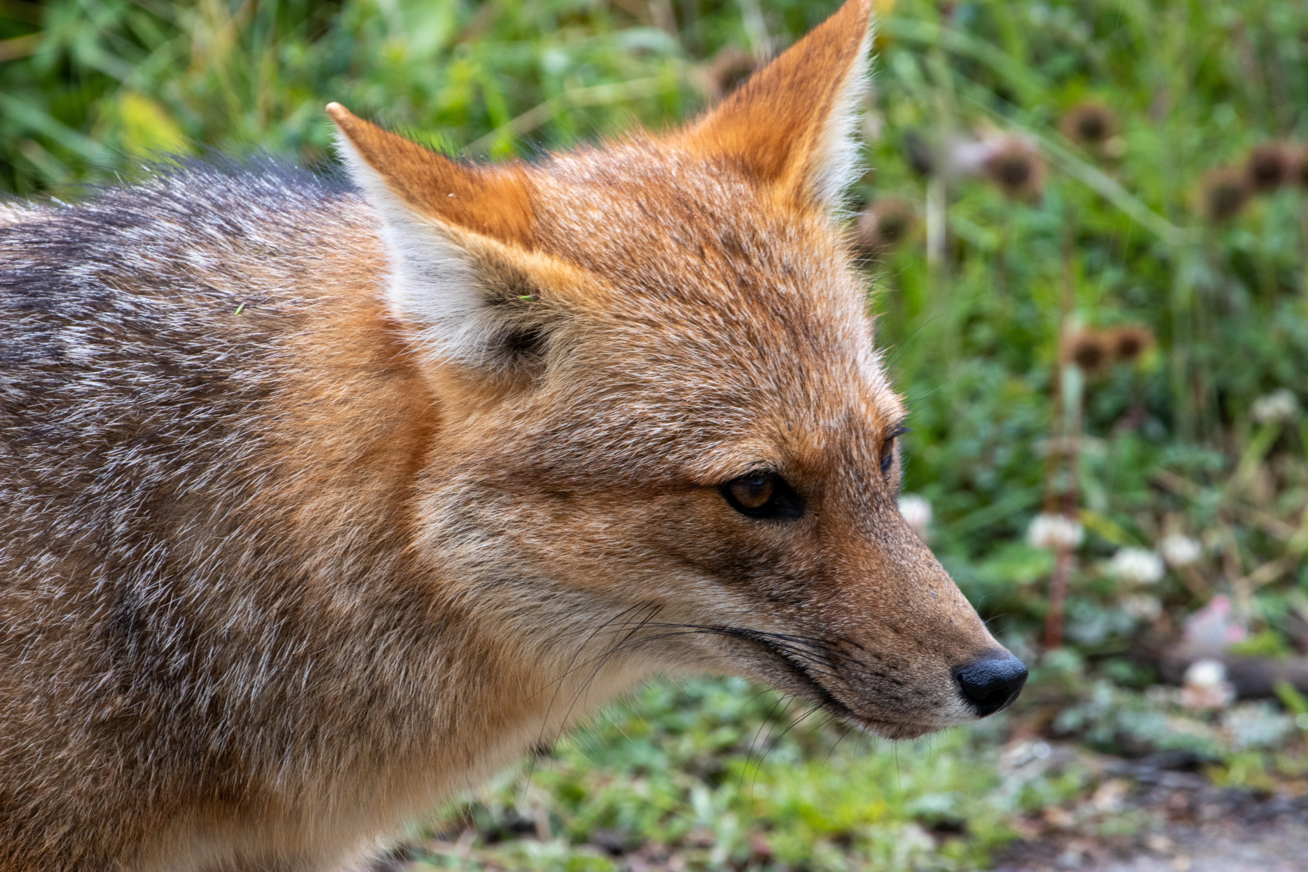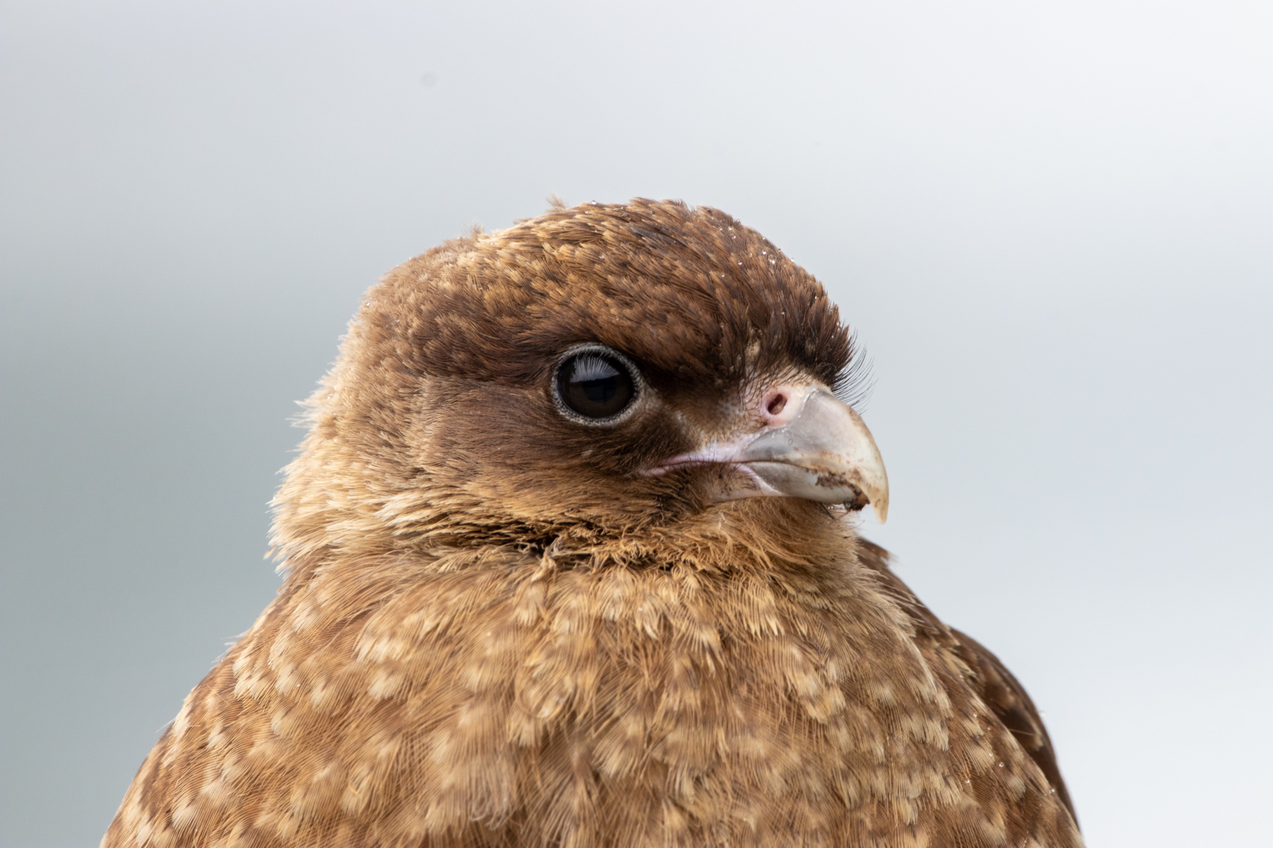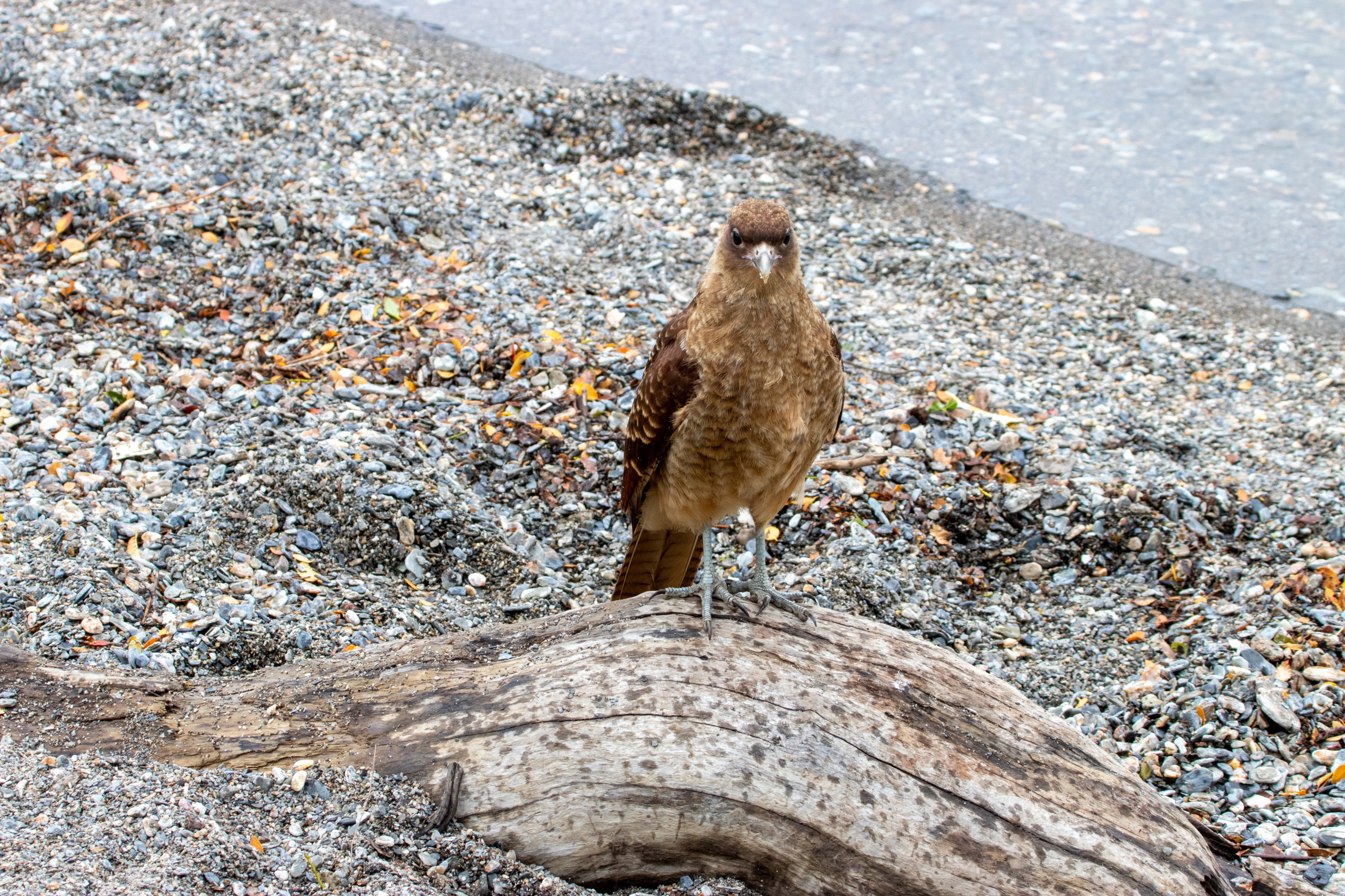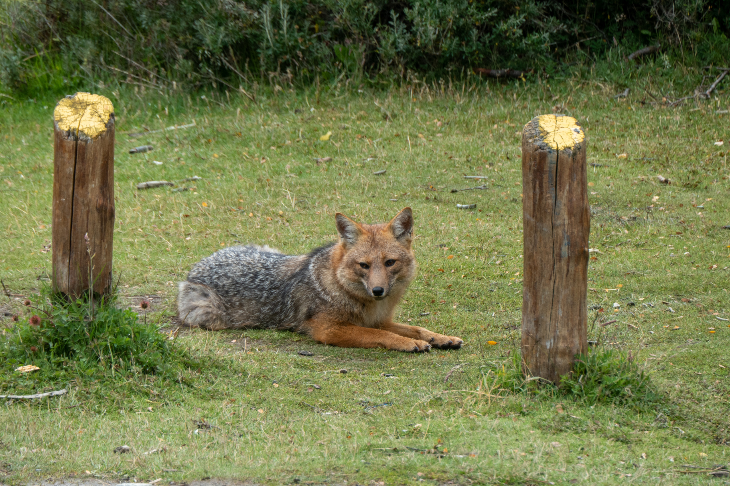 Die letzten Tage waren anstrengend. Darum schlafe ich so richtig aus und stehe erst um 9:30 auf. Ich packe mein Zeugs, da ich heute in eine andere Airbnb-Unterkunft umziehen muss. Mit dem 29er geht es zum Supermarkt Jause ausfassen und dann entlang der Ruta Nacional 3 nach Westen zum Nationalpark Tierra del Fuego. Gegenwind, was sonst. Kann man ja gut an der Wuchsrichtung der Bäume erkennen, dass dies keine Seltenheit ist. Teilweise muss ich bergab in die Pedale treten um vorwärts zu kommen. Es liegt ein wenig frischer Schnee auf den Bergen und es regnet leicht. Klassisches patagonisches Wetter eben. Vor ein paar Tagen noch haben die Einheimischen bei 20 Grad geschwitzt wie die Schweine. Woher kommt eigentlich dieser Spruch? Egal. Ich schwitze beim Ankämpfen gegen den kalten Wind. Im leichten Auf und Ab geht es zwölf Kilometer bis zum Eingang zum Nationalpark. Von hier sind es noch mal neun Kilometer auf einer Schotterstraße bis zum Besucherzentrum. Der Weg zum Cerro Guanaco ist heute wegen schlechtem Wetter geschlossen und so fahre ich direkt weiter zum Lago Roca. Dort sehe ich einen Caracara Chimango (Raubvogel) und einen etwas ängstlich wirkenden Andenschakal. Nice!