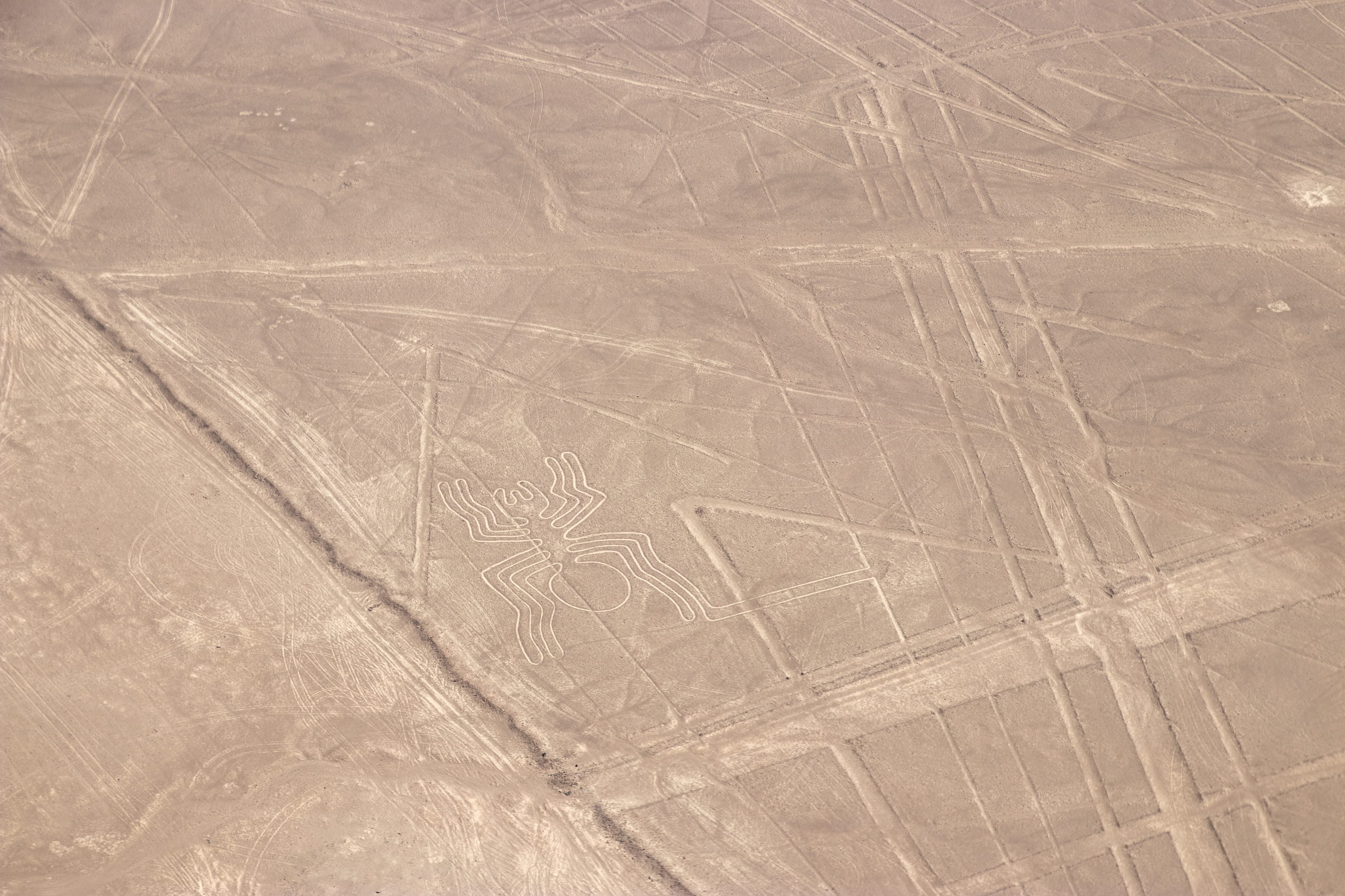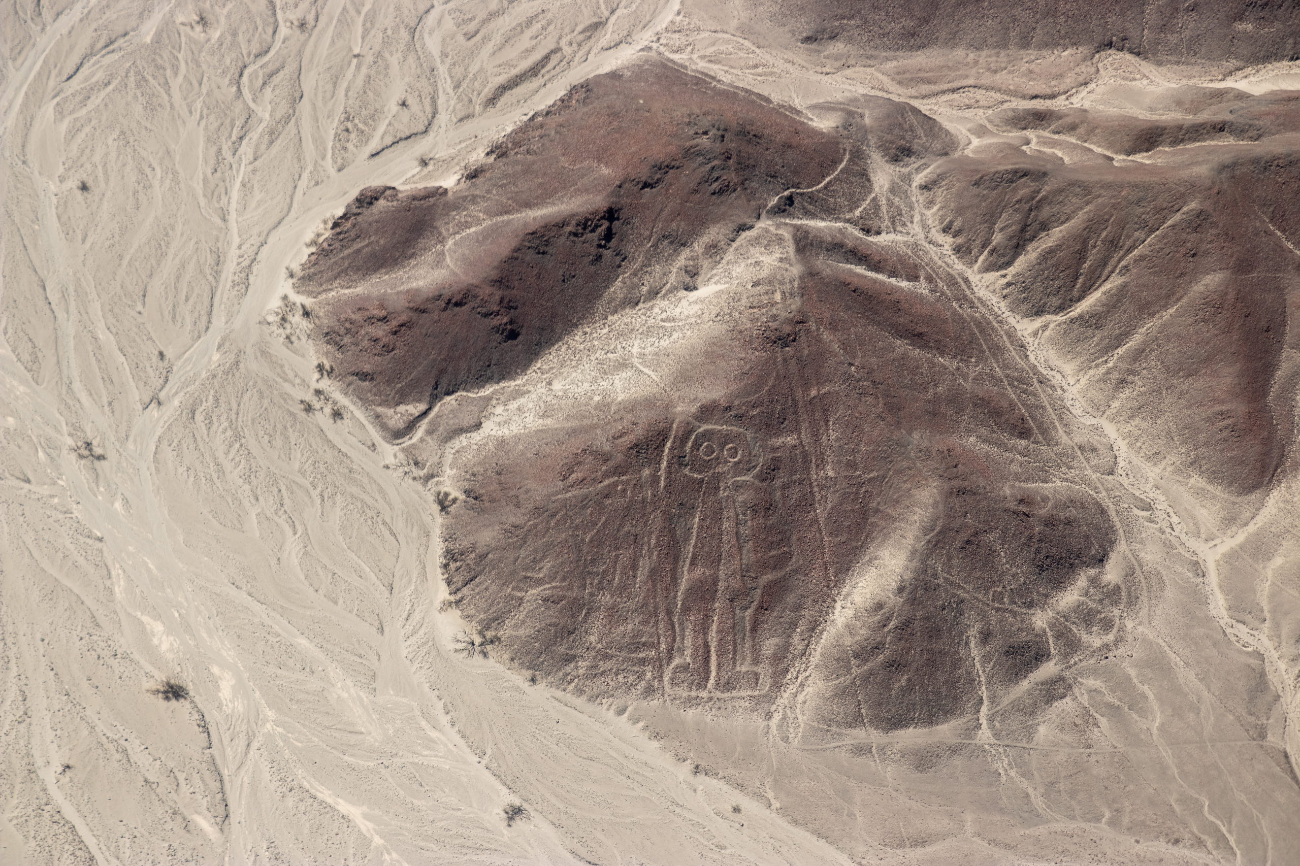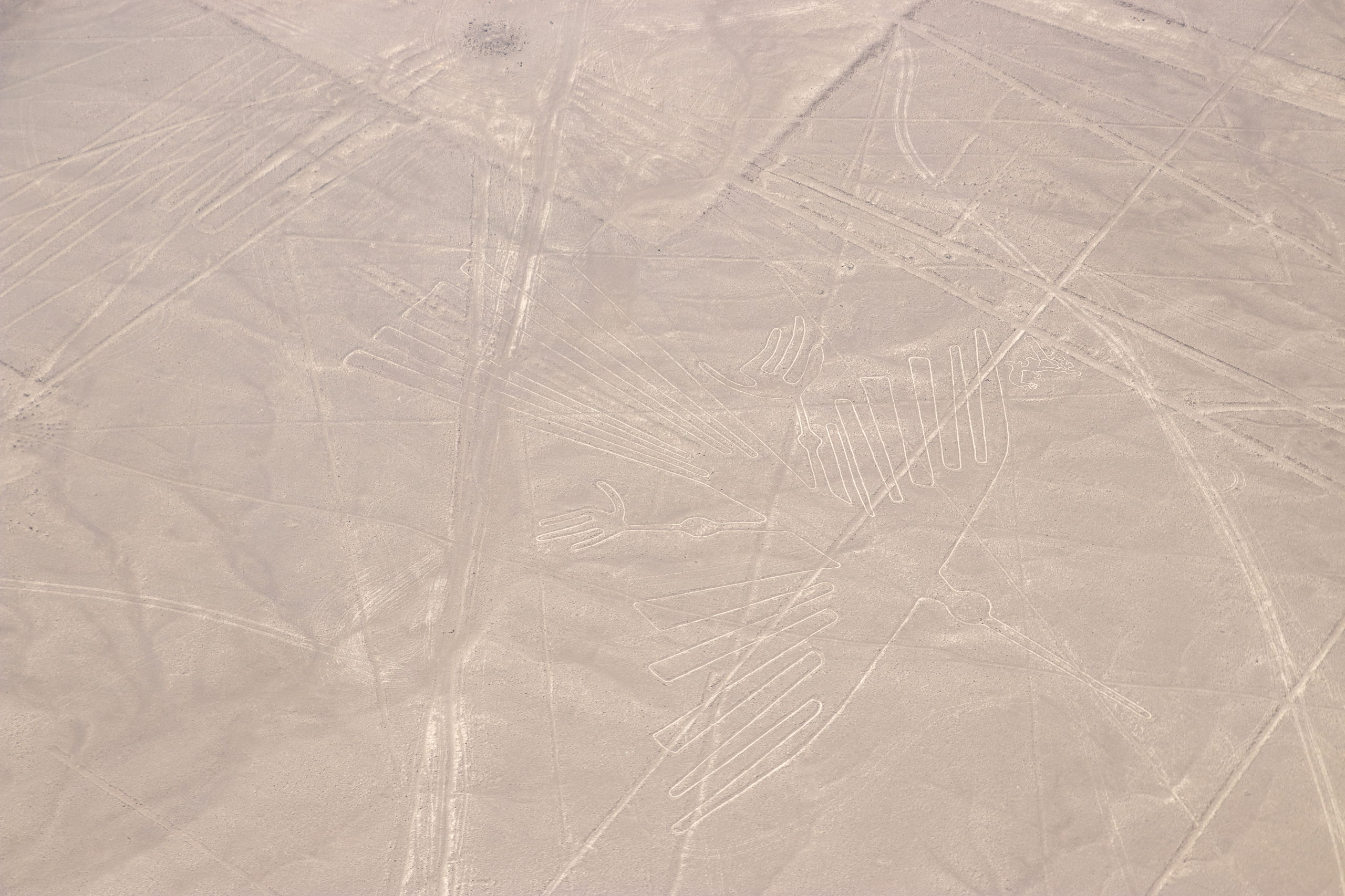 Endlich holt uns jemand ab und um kurz vor Mittag heben wir in einem kleinen Flugzeug ab. In etwas mehr als einer halben Stunde fliegen wir über die wichtigsten Formen wie z.B. Affe, Astronaut, Kolibri, Papagei, Spinne und noch einige andere. Anschließend werden wir wieder in die Stadt gefahren. Nazca selbst gibt nicht viel her, darum geht es für uns drei gleich weiter. Wir checken ein Colectivo und müssen etwas warten, bis es voll ist. Dafür rasen wir dann mit Vollgas nach Ica.