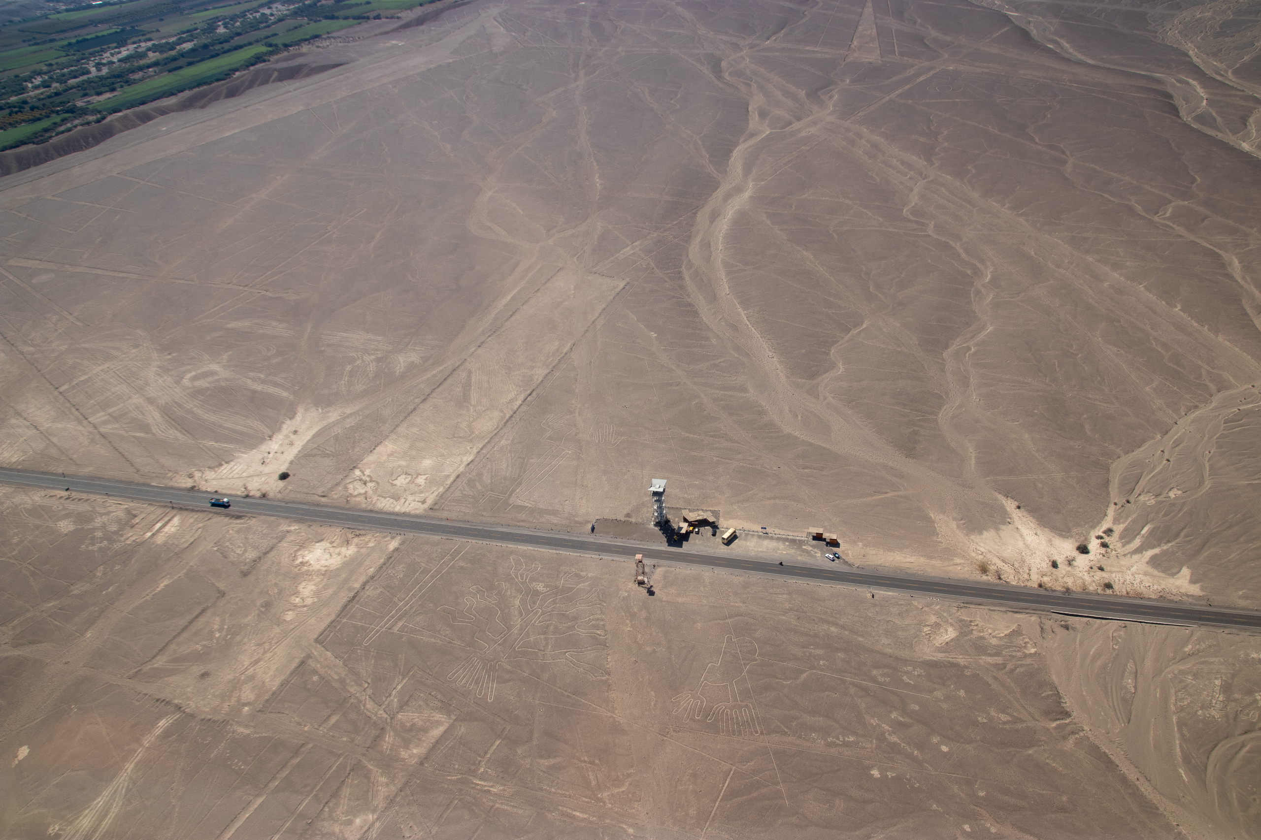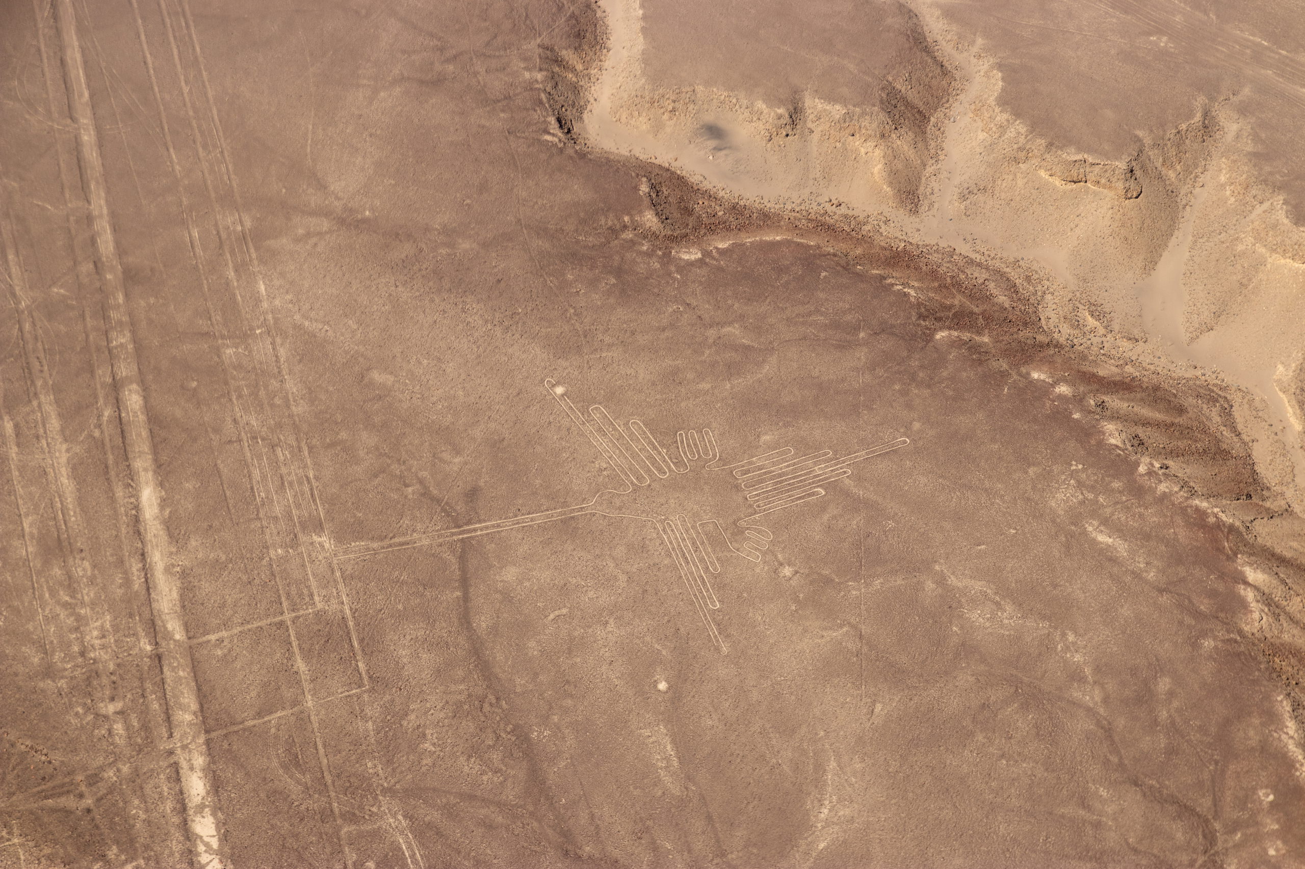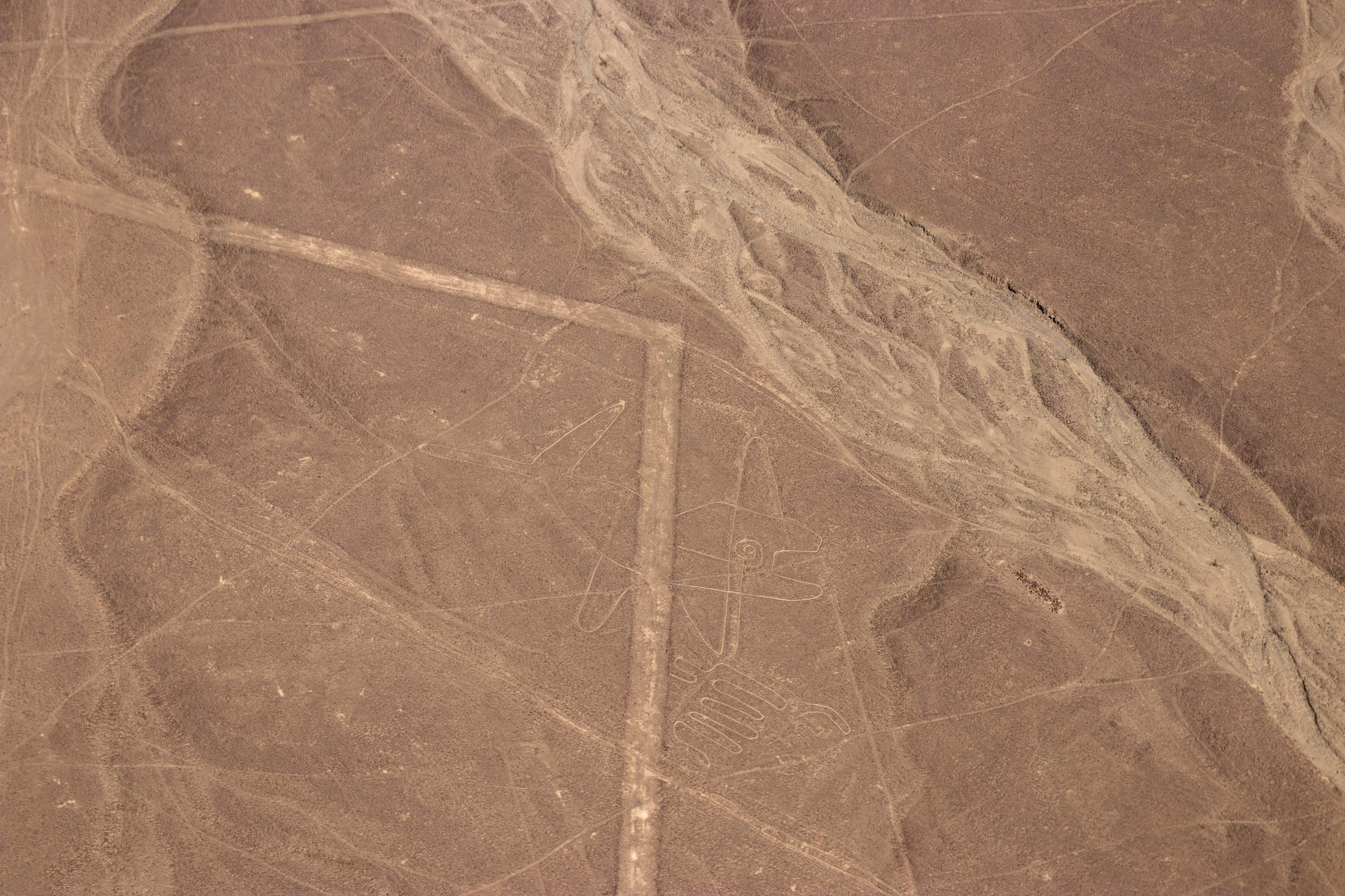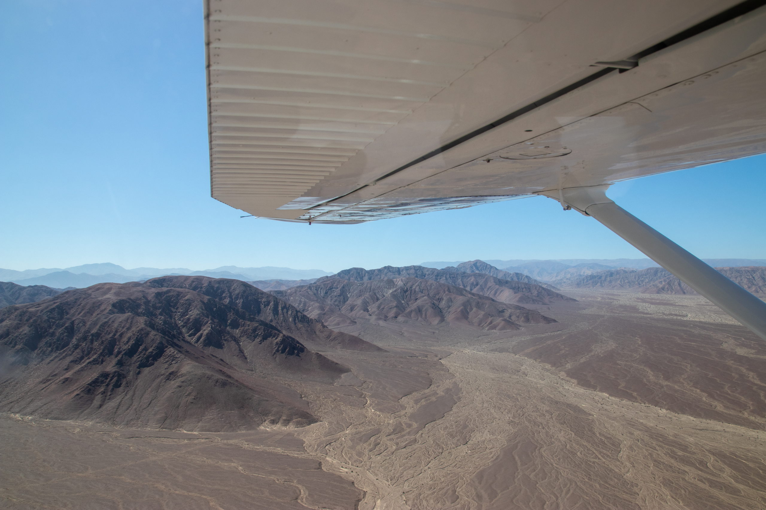 Endlich holt uns jemand ab und um kurz vor Mittag heben wir in einem kleinen Flugzeug ab. In etwas mehr als einer halben Stunde fliegen wir über die wichtigsten Formen wie z.B. Affe, Astronaut, Kolibri, Papagei, Spinne und noch einige andere. Anschließend werden wir wieder in die Stadt gefahren. Nazca selbst gibt nicht viel her, darum geht es für uns drei gleich weiter. Wir checken ein Colectivo und müssen etwas warten, bis es voll ist. Dafür rasen wir dann mit Vollgas nach Ica.