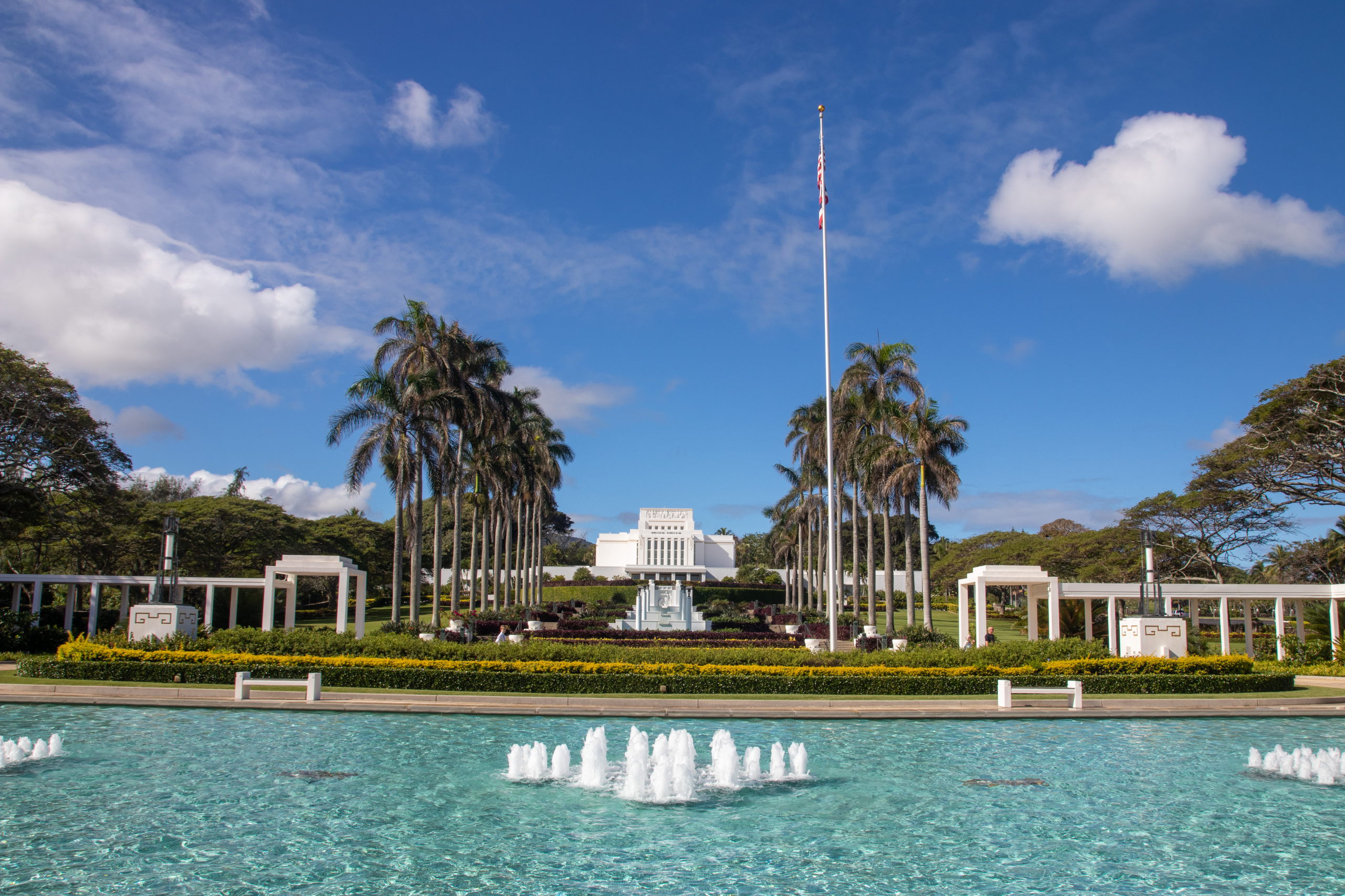Heute möchte ich Oahu entlang der Ostküste bis hinauf zur Nordküste erkunden. Am Weg nach Norden ist nach einem kurzen Stück ein Tempel angeschrieben. Dieser sieht von weitem sehr schön aus. Also umgedreht und hin. Zwei Burschen im Anzug kommen auf mich zu und quatschen eine Weile mit mir. Wie sich herausstellt, sind sie Mormonen. Im Laie Hawaii Temple Visitors’ Center sehe ich mir das Modell des Tempels an, wo auch das Innere zu sehen ist. Die Räume sehen aus wie in einem Wohnhaus. Zwei Asiatinnen erklären mir, dass sie daran glauben, dass im Himmel alle eine Familie sind. Deshalb auch die wohnliche Einrichtung. Der Gedanke gefällt mir.