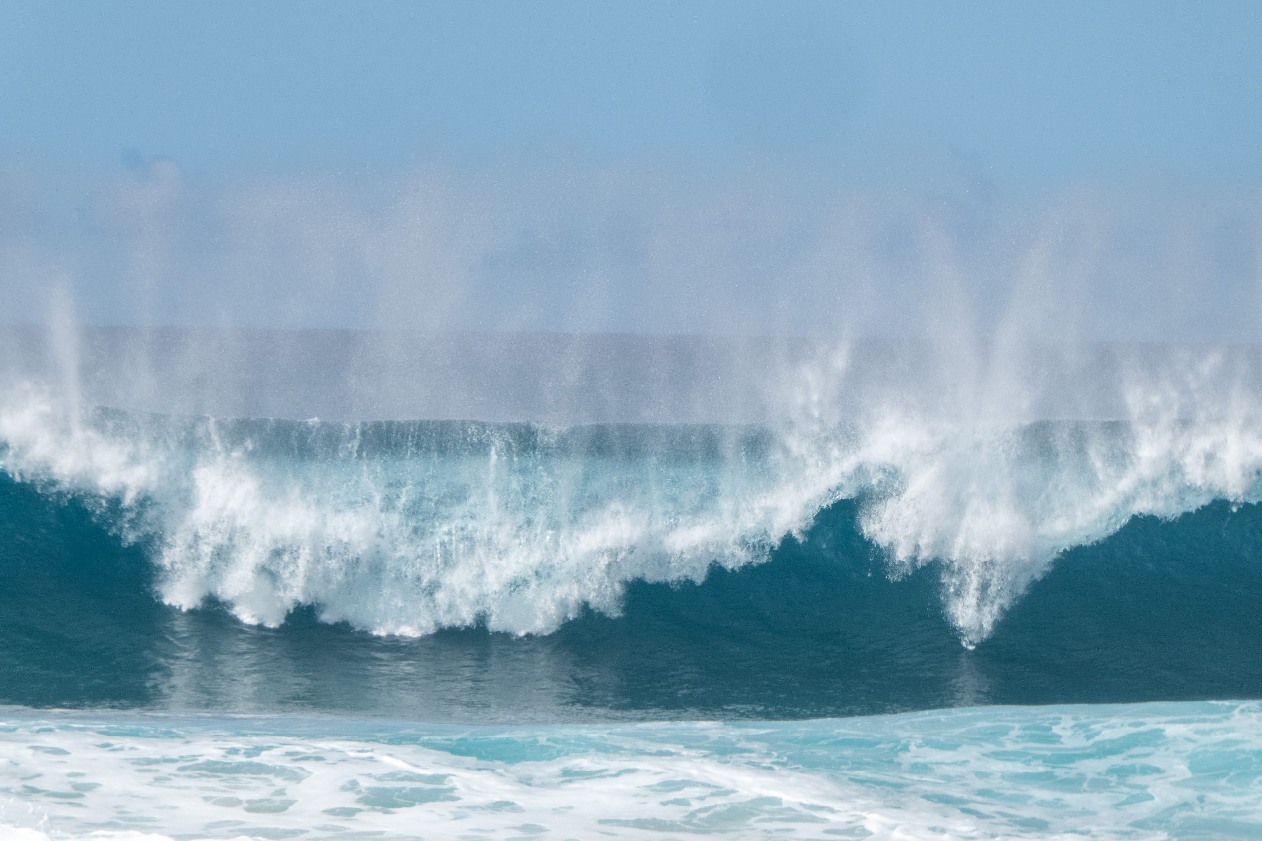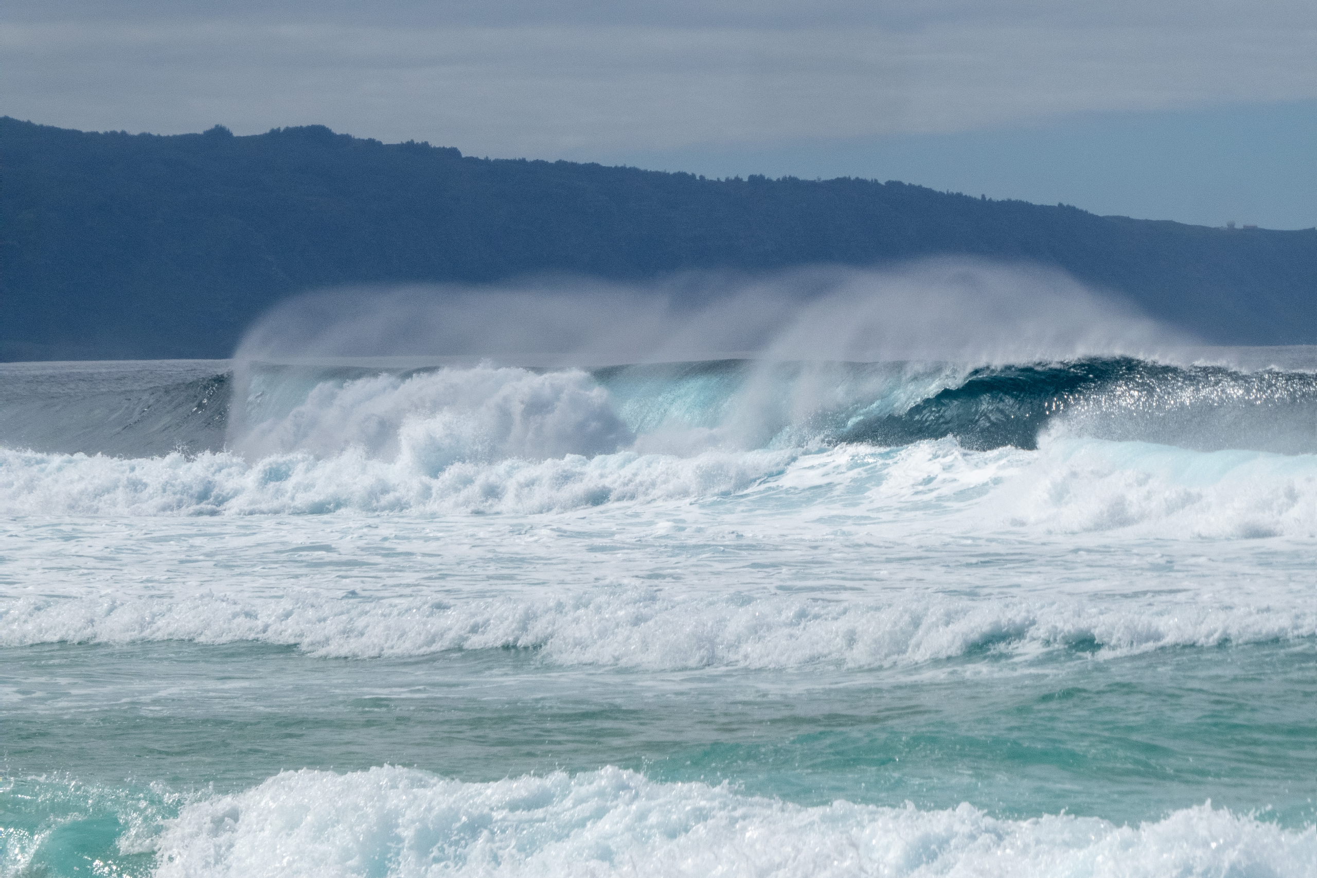 Nur zehn Minuten Fahrt weiter liegt der Sunset Beach, an dem es große Wellen gibt. Wieder einmal könnte ich den brechenden Wellen stundenlang zusehen.