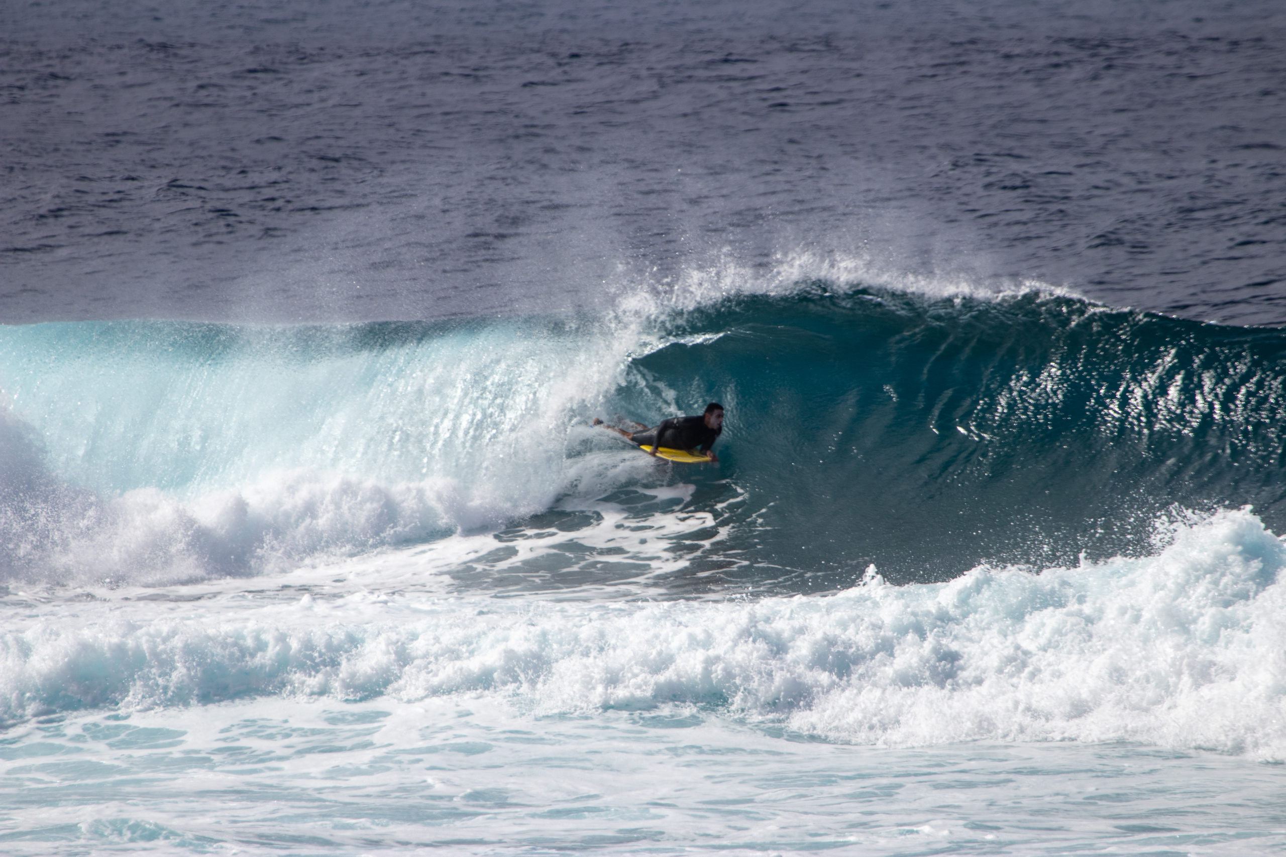 Nachdem ich mich losreißen konnte, düse ich ein Stück weiter zum Rocky Point, mit der unter Surfern berüchtigten Banzai Pipeline, an der sich jede Menge Surfer und Bodyboarder probieren. Es ist beeindruckend, wie sie auf den Wellen reiten, auch wenn sie es nicht immer schaffen und abgeworfen werden, oder bewusst abspringen.