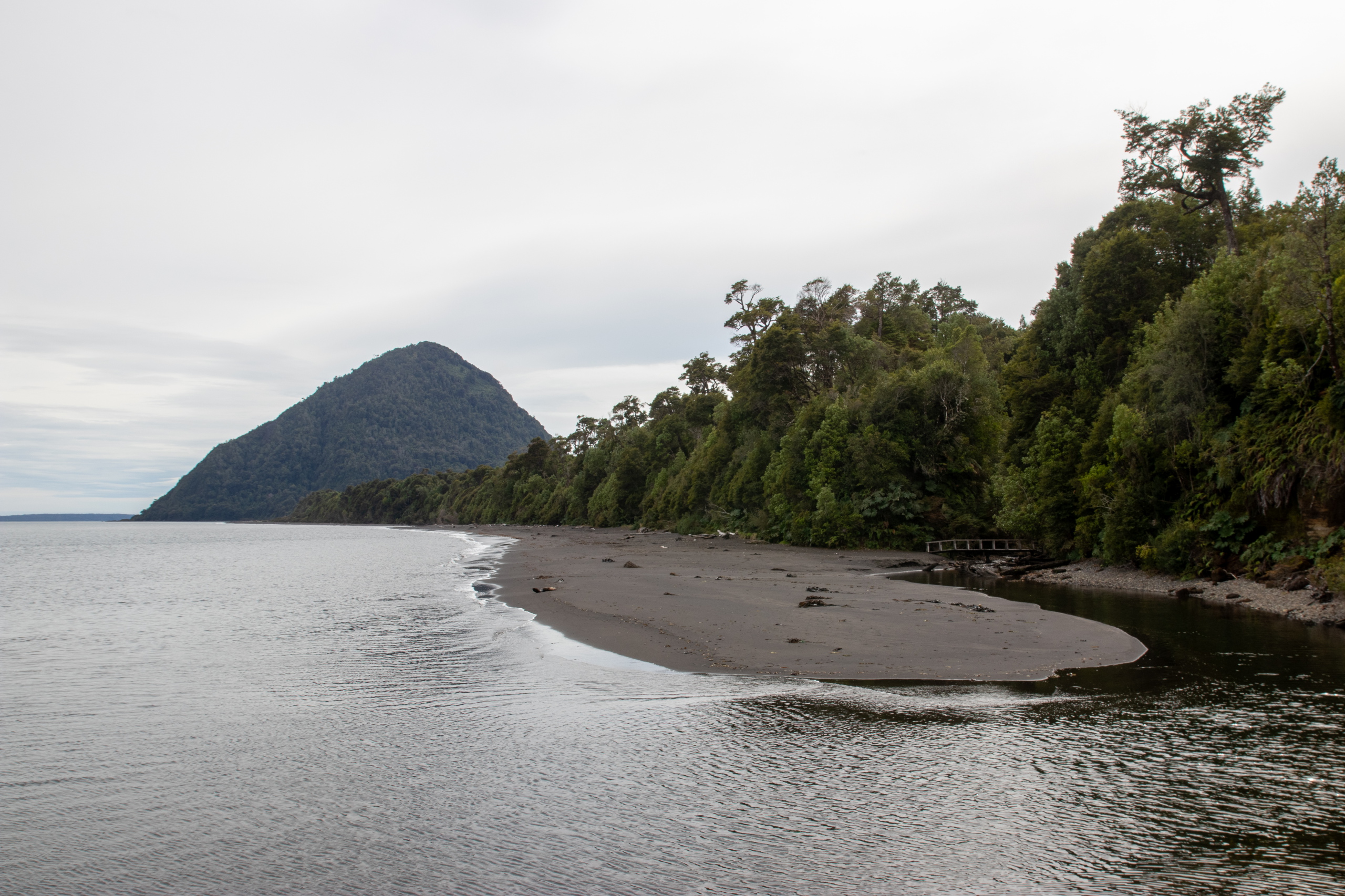 Mein Weg führt in die andere Richtung zum Playa Santa Barbara, einem schwarzen Strand aus Vulkansand. Ich drehe eine kleine Runde und mache mich wieder einmal in Chaitén auf Herbergssuche. Ich frage mich durch die Unterkünfte, die entweder schon geschlossen, oder schweineteuer sind. Mir reicht es und ich buche ein Airbnb etwas abgelegen von Santa Barbara an einem Hügel am Wald. Die Unterkunft ist sehr basic, hat aber alles was man braucht. Durch die Pfahlbauweise wackelt das ganze Haus, wenn jemand den Gang entlang geht und die schwimmende Verlegung der Fliesen im Bad ist hier wörtlich zu nehmen. Steigt man auf eine Fliese drückt es Wasser von unten herauf. 😁 Ich unterhalte mich noch mit drei Chilenen, die morgen bis nach Concepción fahren. 😯 Mit dem flotten Internet kann ich noch einiges checken und gehe erst spät ins Bett.