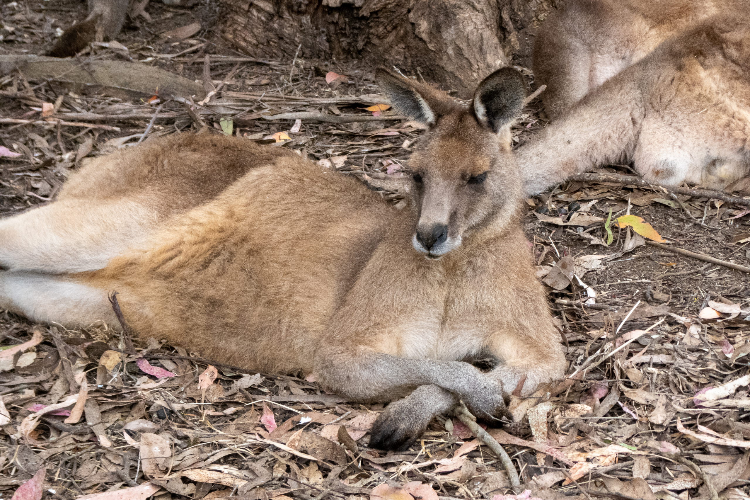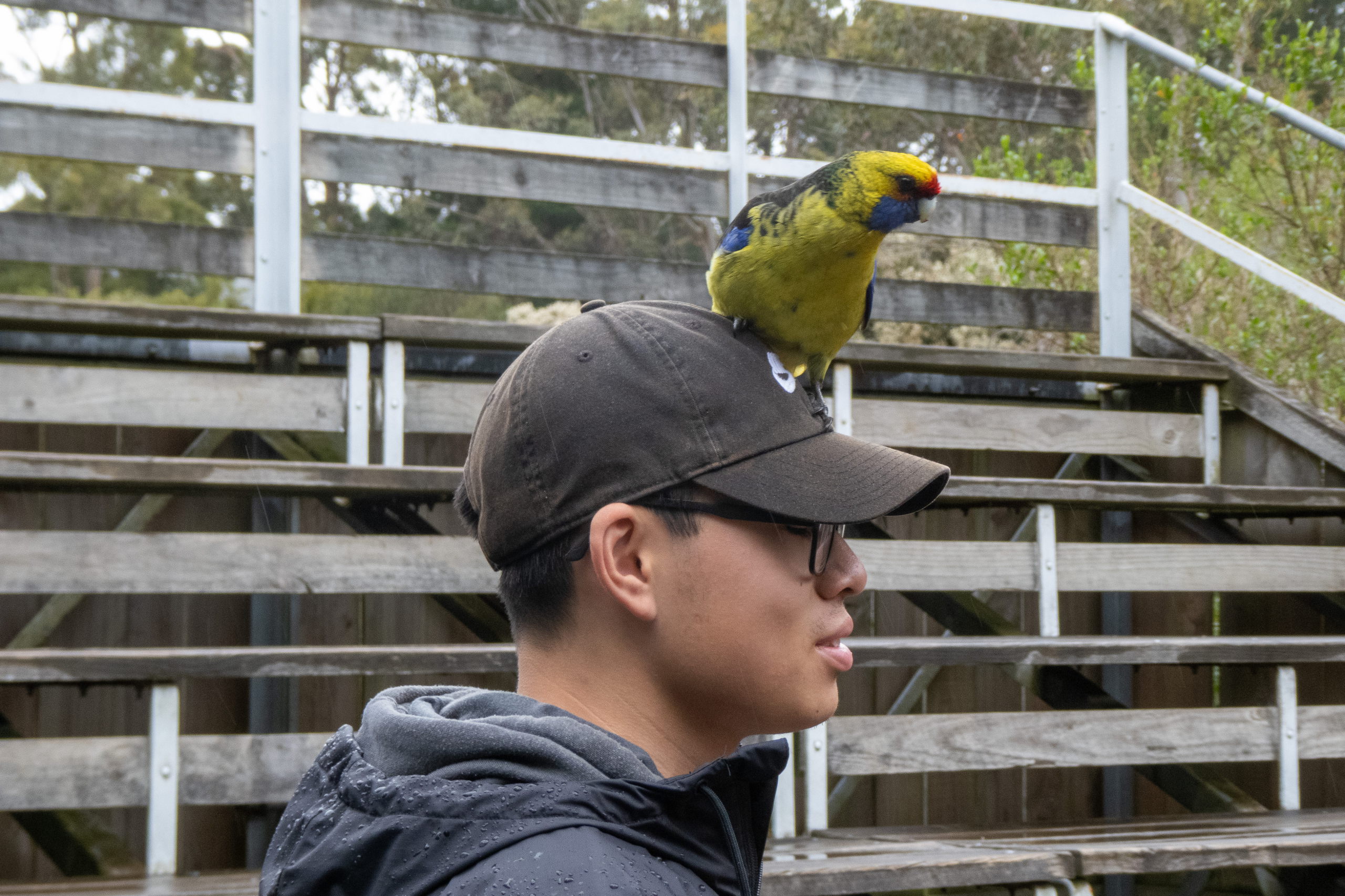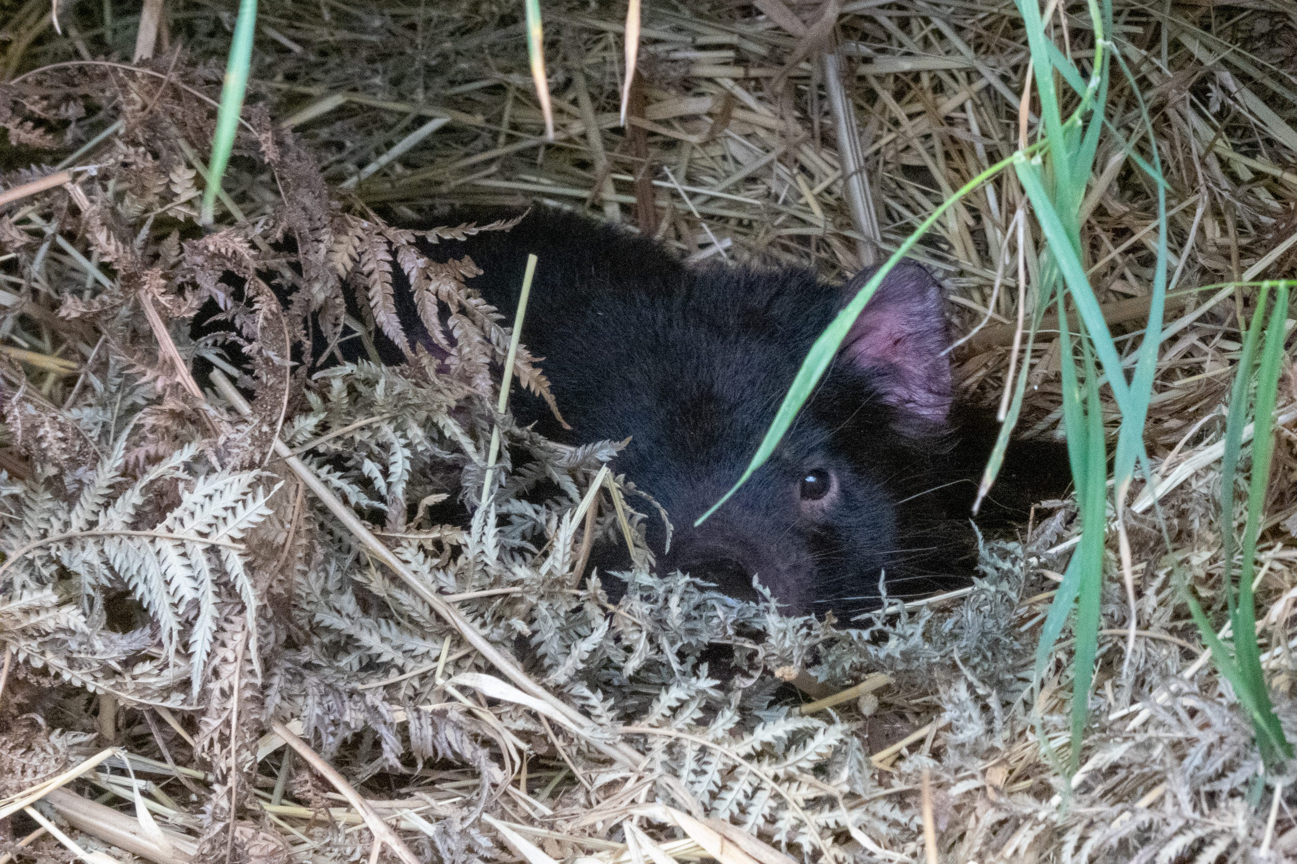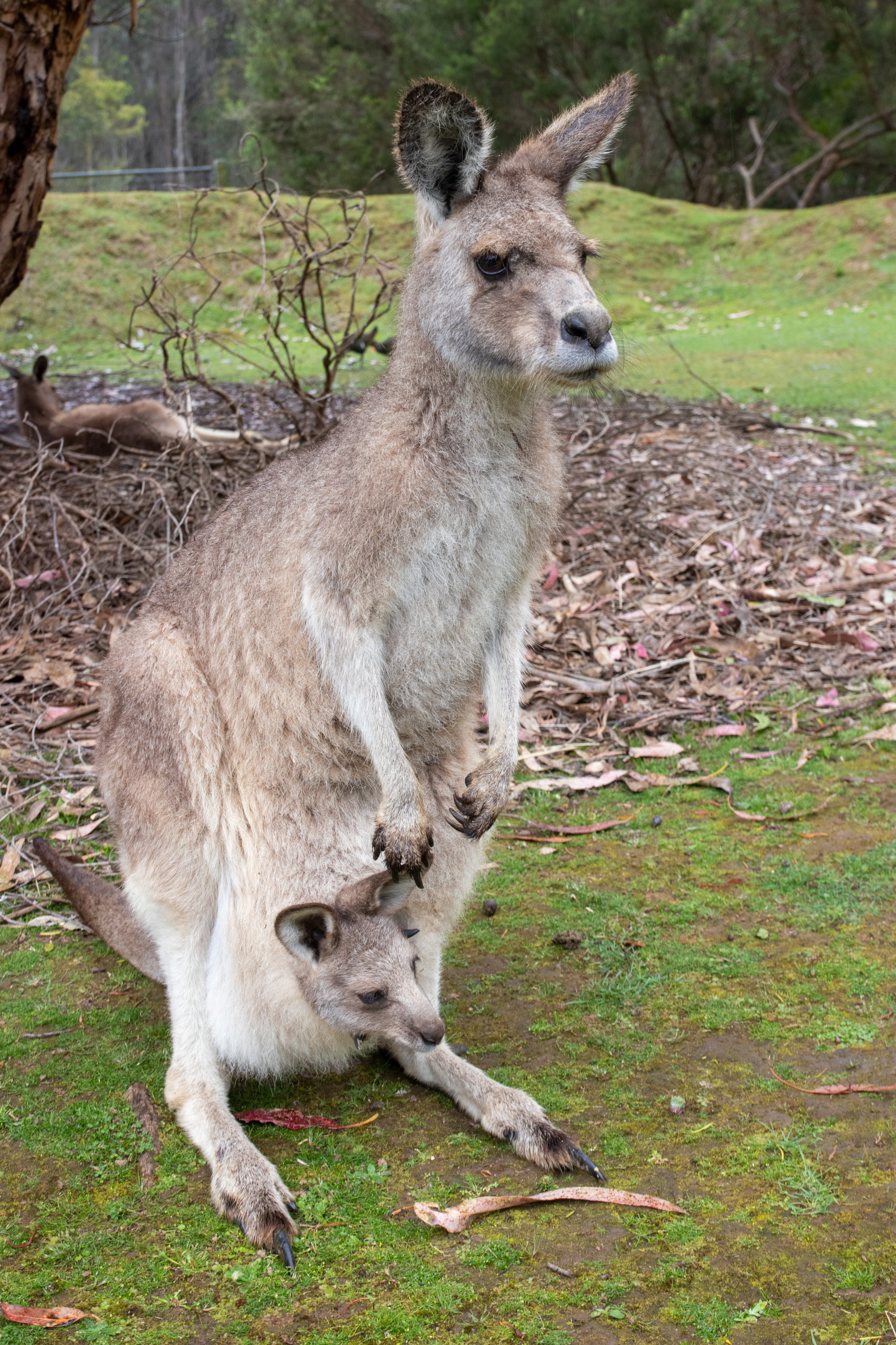 Auf der Fahrt zum Cape Houy beginnt es zu regnen. So macht die Wanderung sicher keinen Spaß und sehen werde ich auch nicht viel. Planänderung. Am Folder vom Tasmanian Devil Unzoo steht das Füttern von Kängurus auf dem Plan. Cool. Nicht viel später füttere ich die niedlichen Tiere schon mit der Hand. Ein besonders schlaues frisst direkt aus dem Kübel. 😁 Da es immer noch regnet, sehe ich mir noch einmal die Fütterung der Tasmanischen Teufel an. Den Namen haben sie übrigens aufgrund ihres Rufes, der sich echt gruselig anhört. Zufällig treffe ich die Frau, die neben mir im Flugzeug saß. Wie klein die Welt doch ist.