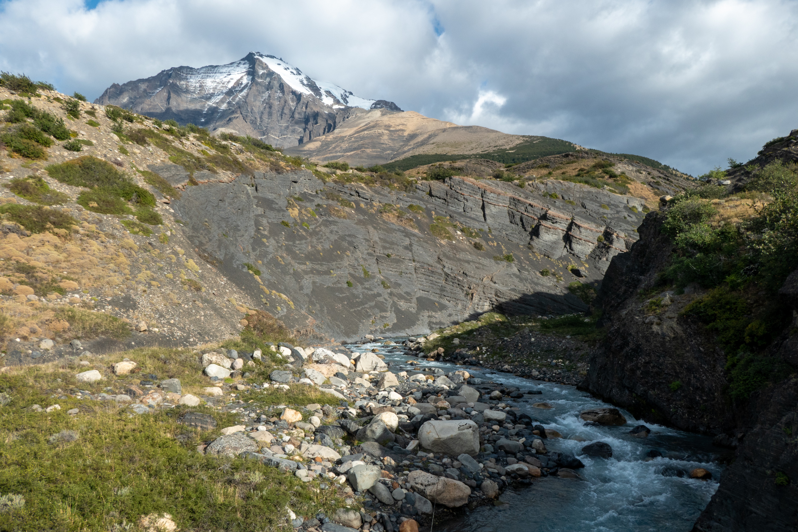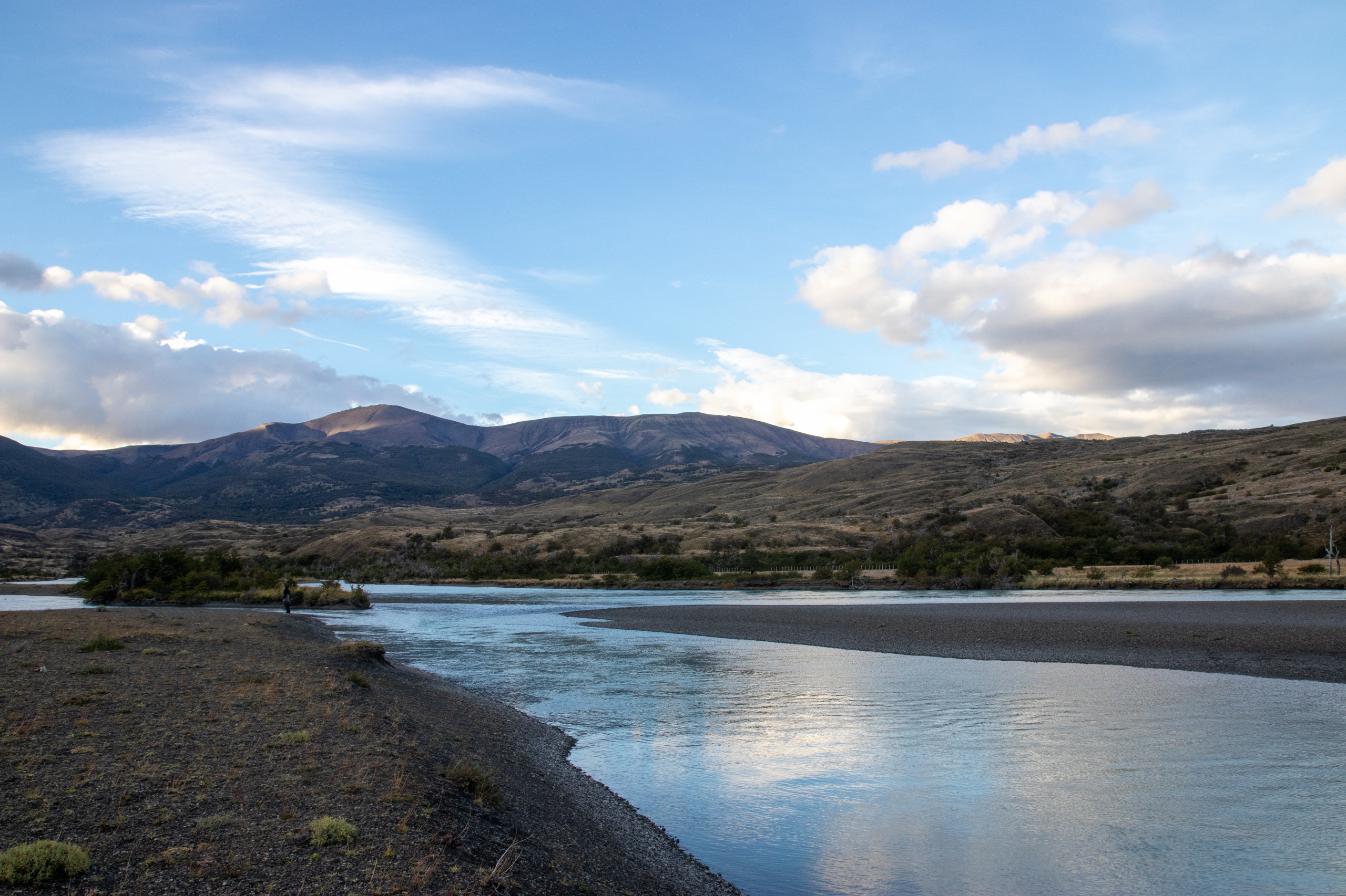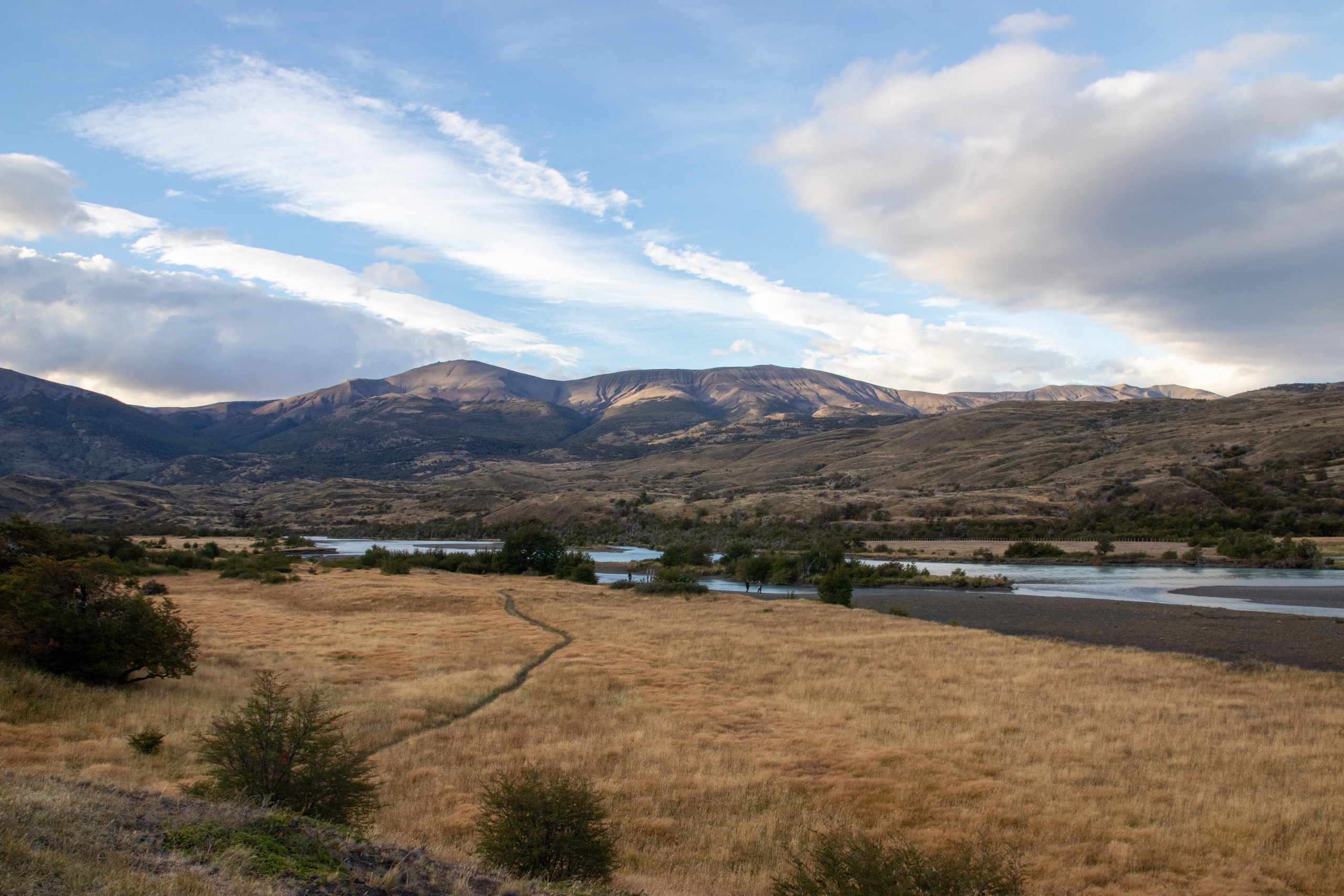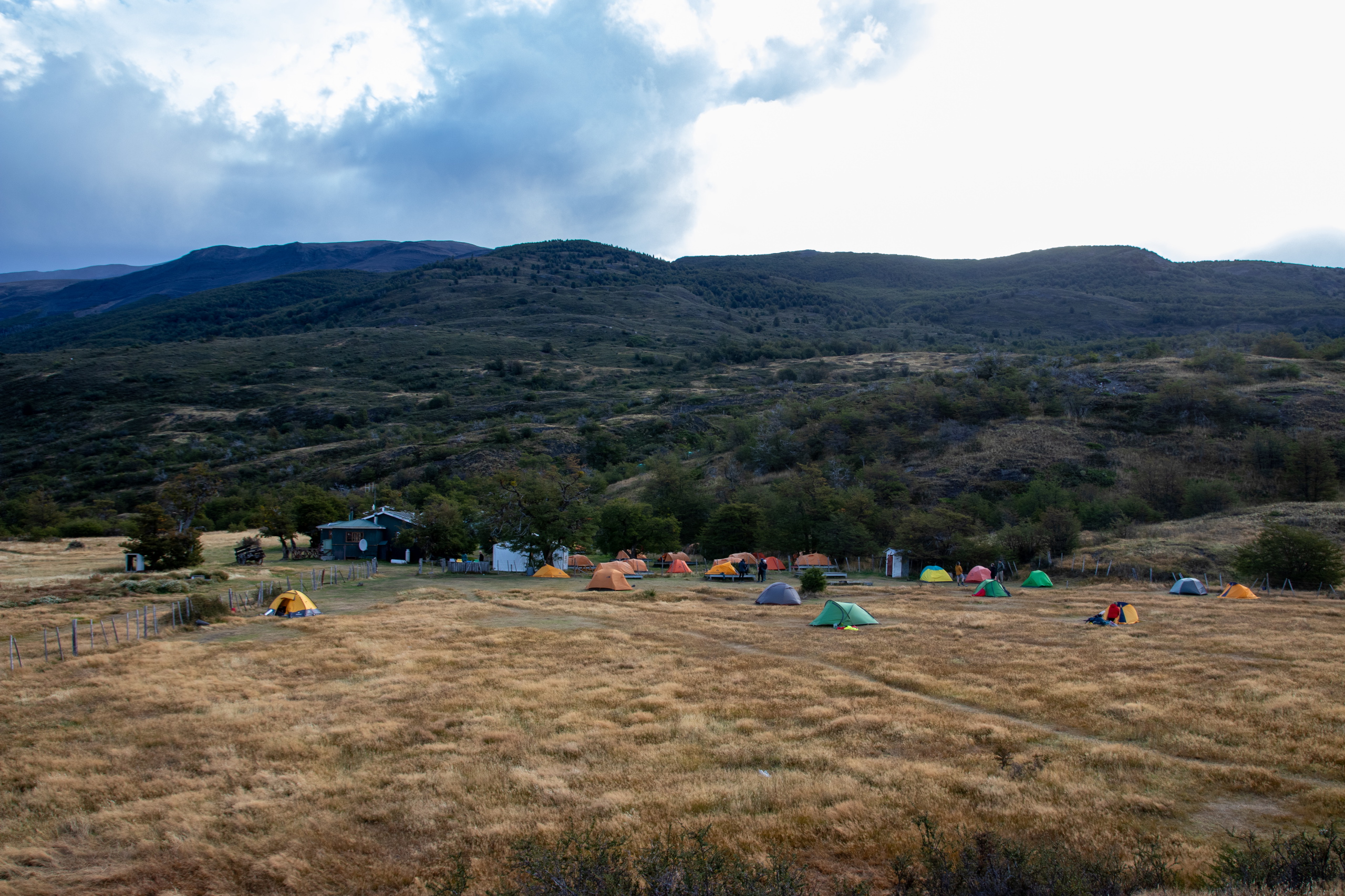 Als der Regen etwas nachlässt baue ich das Zelt auf und gehe kochen. Hier treffe ich auf die zwei Holländer, mit denen ich mich am Weg schon unterhalten habe. Mit am Tisch sitzt noch ein Amerikaner, der Weltraumingenieur in LA ist. Cooler Beruf. Ich drehe noch eine Runde um das Camp und zum Fluss. Im sich bewegenden Gras kann man den warmen Wind von den Bergen kommen sehen. Hoffentlich wird er nicht stärker, denn das Camp bietet nur wenig Schutz. Nach einer herrlichen Dusche ist es Zeit für das zweite Bier mit dem ich mich zu den anderen geselle. Wir quatschen über unsere Wanderungen und die weiteren Etappen. Anscheinend bin ich der einzige, der immer ein Camp überspringt. Wir sitzen schon eine Weile und die Sonne ist noch immer nicht untergegangen. So weit in Süden dauert es gefühlt ewig und ist echt ungewohnt. Als es finster ist scheint der Mond durch die schnell vorbeiziehenden Wolken und der warme Wind bläst immer noch, sodass sich mein Zelt ziemlich verformt.