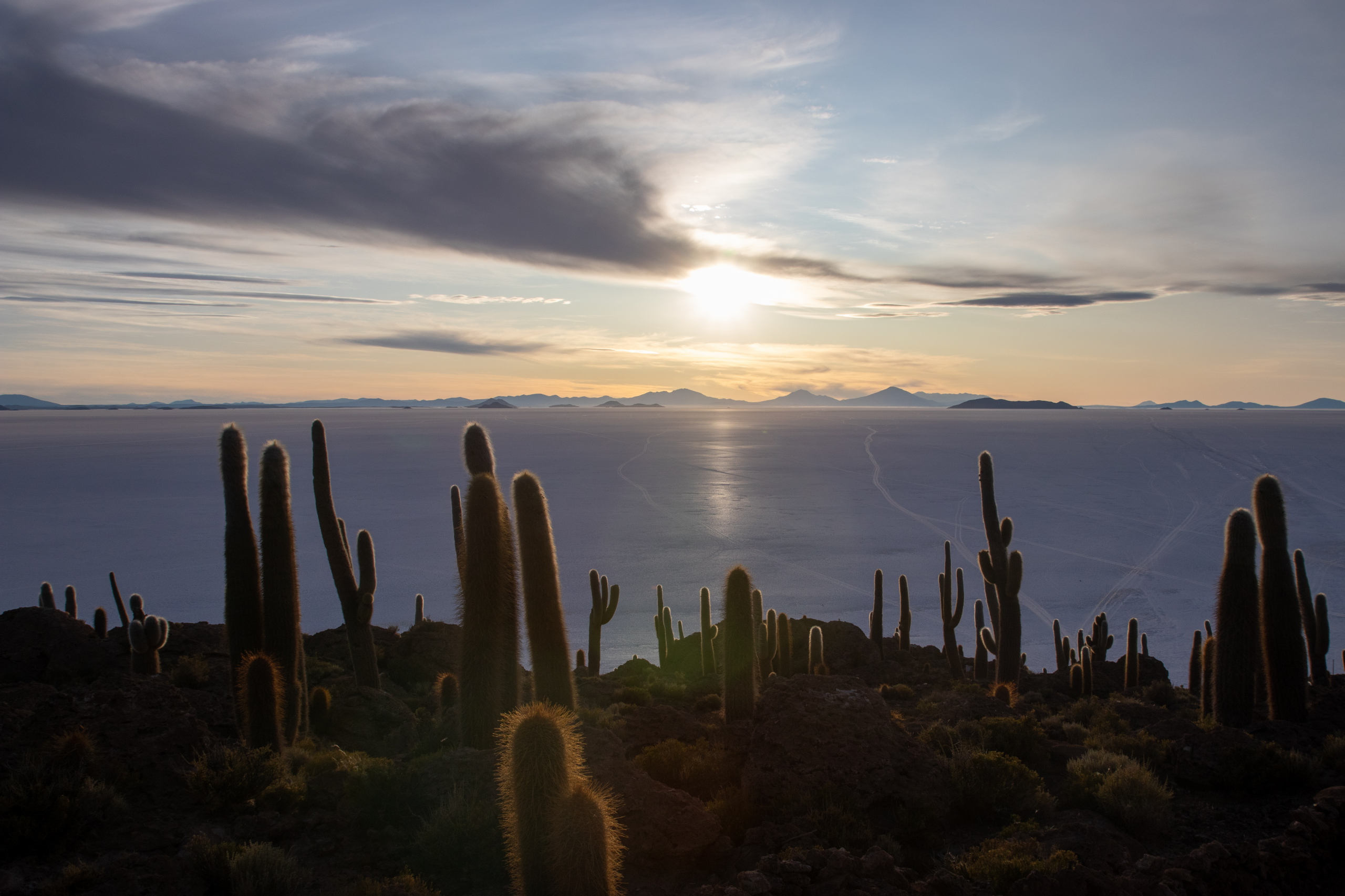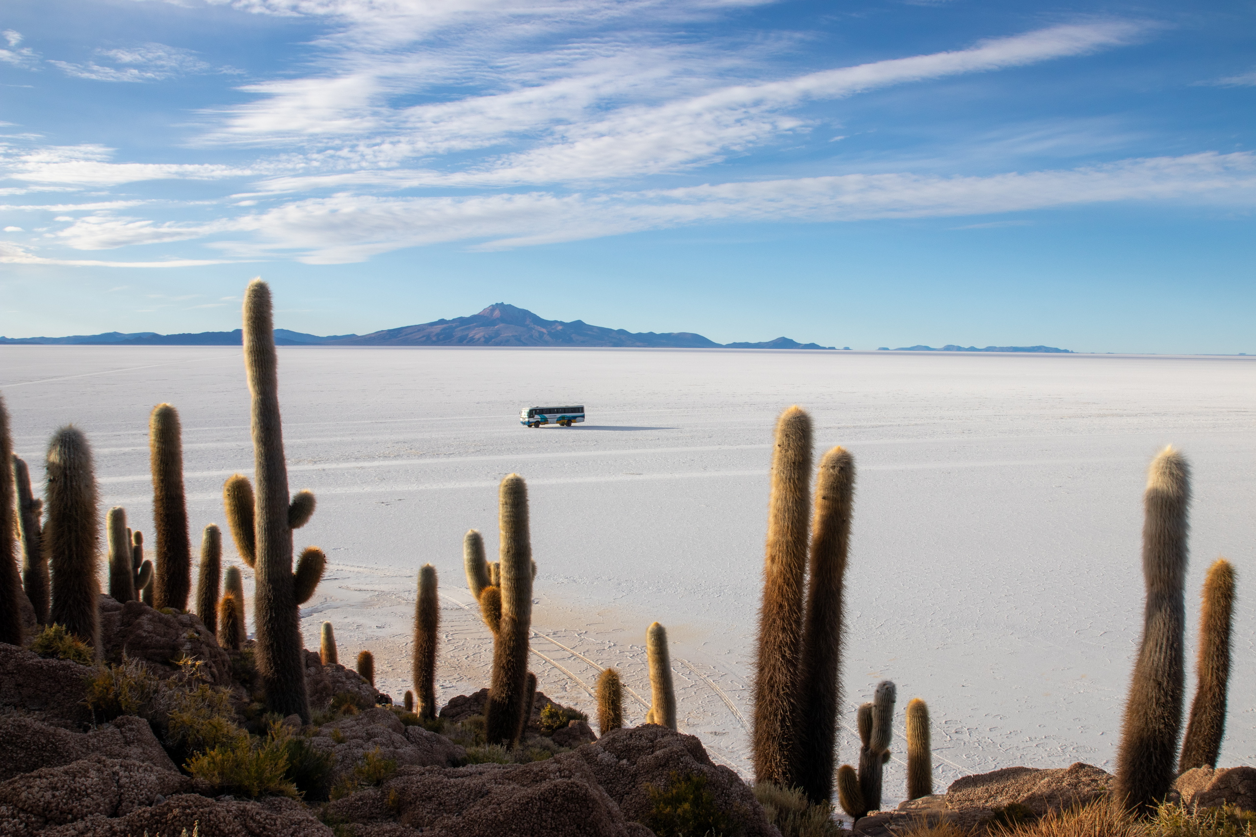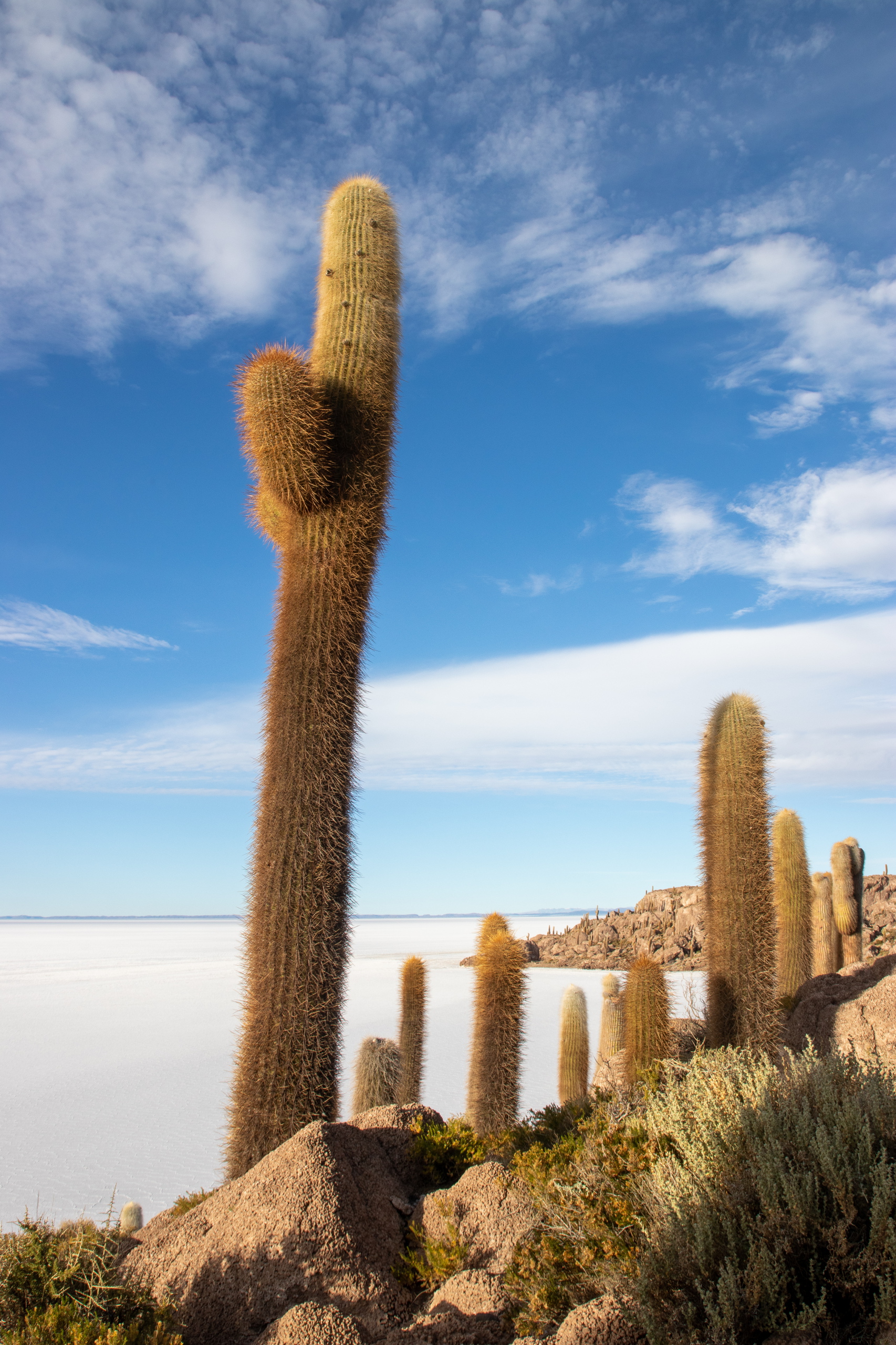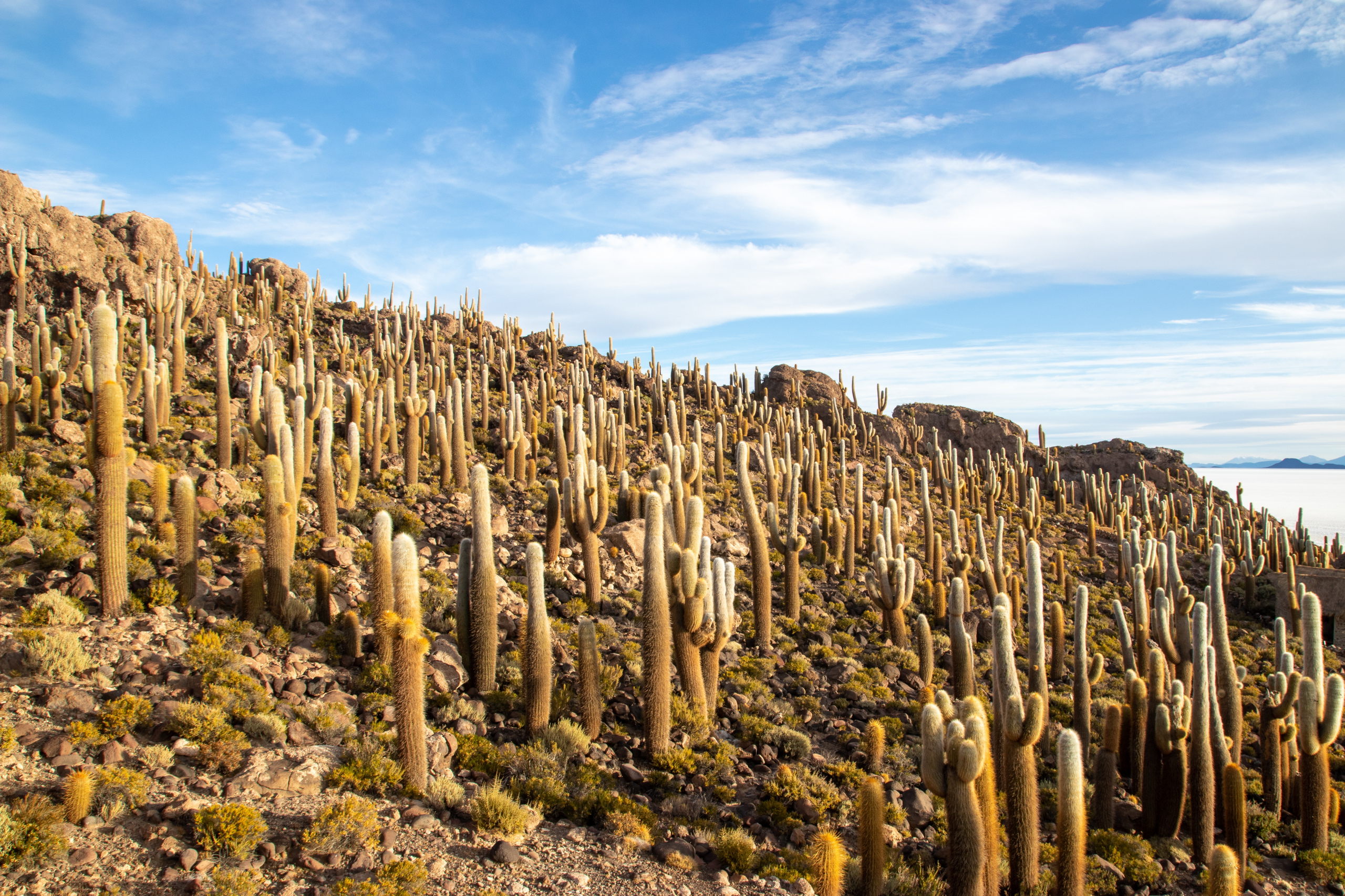 Im Anschluss schleichen wir zur Isla Incahuasi, auf der jede Menge Kakteen stehen. Von oben hat man einen phantastischen Panoramablick über die Salar.