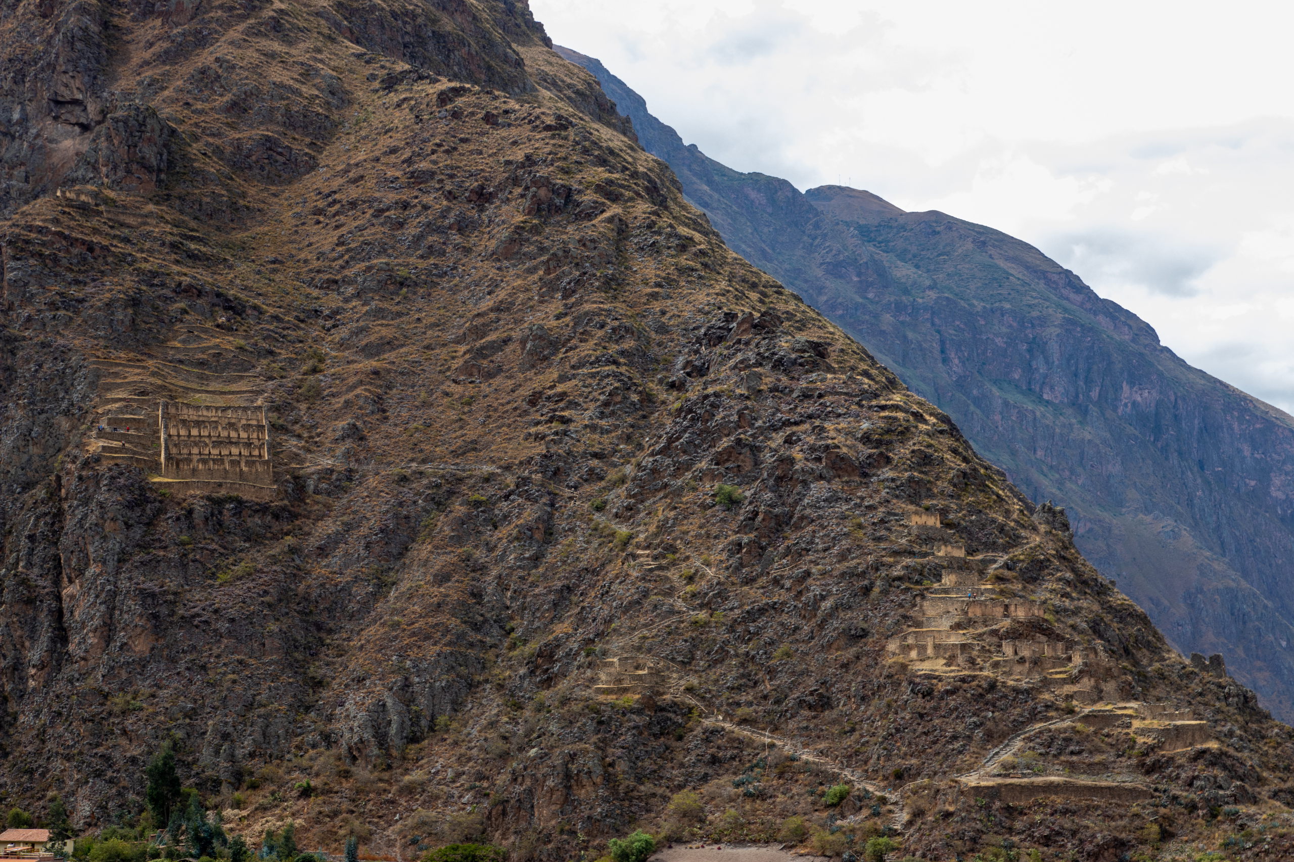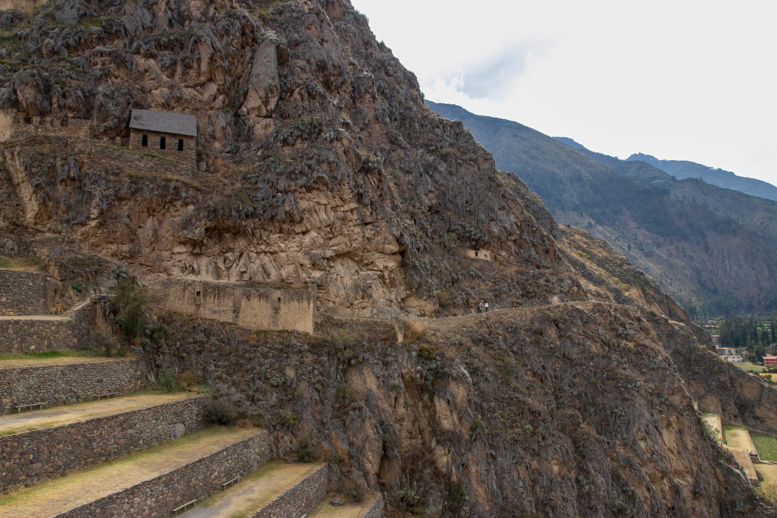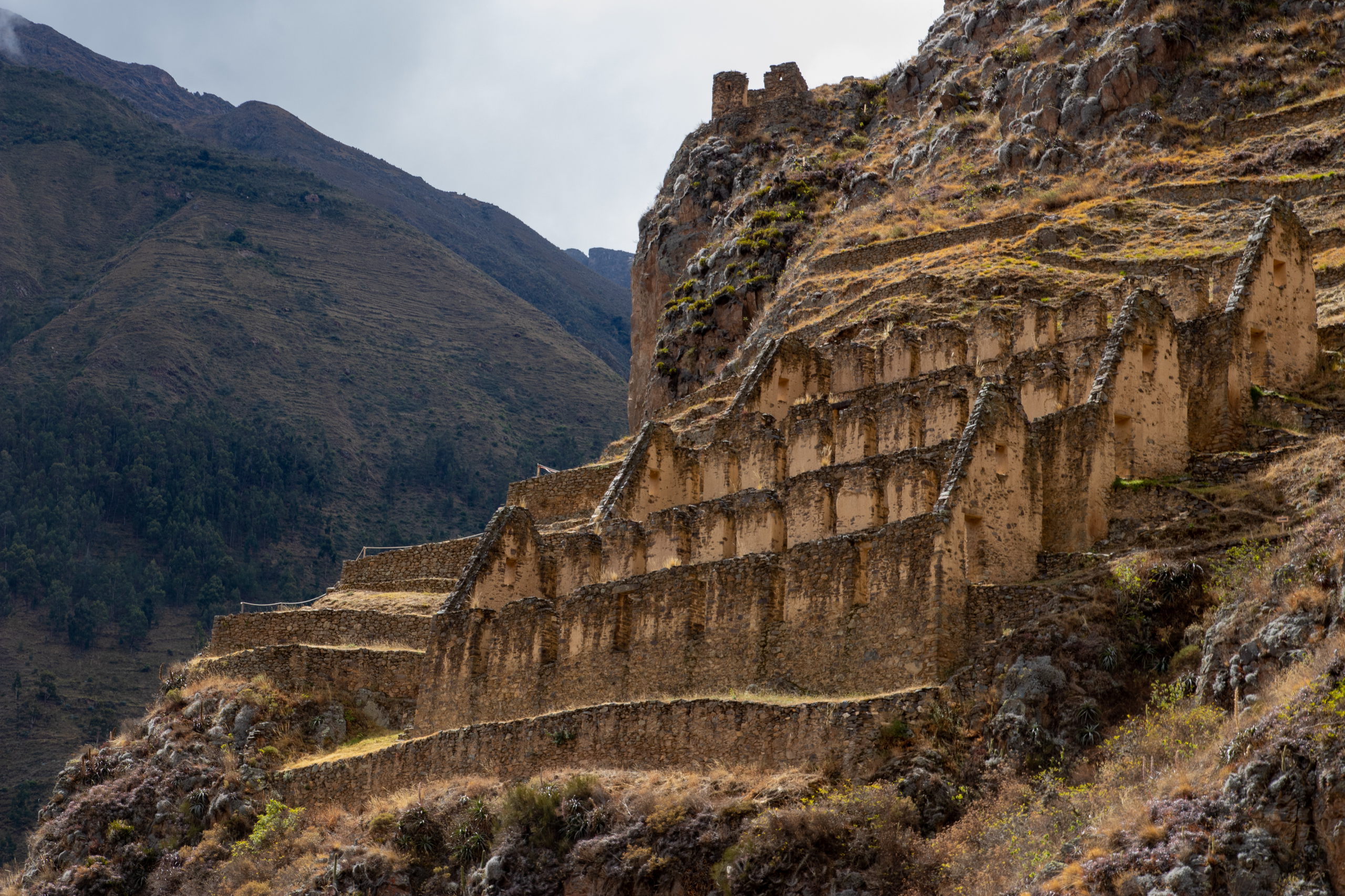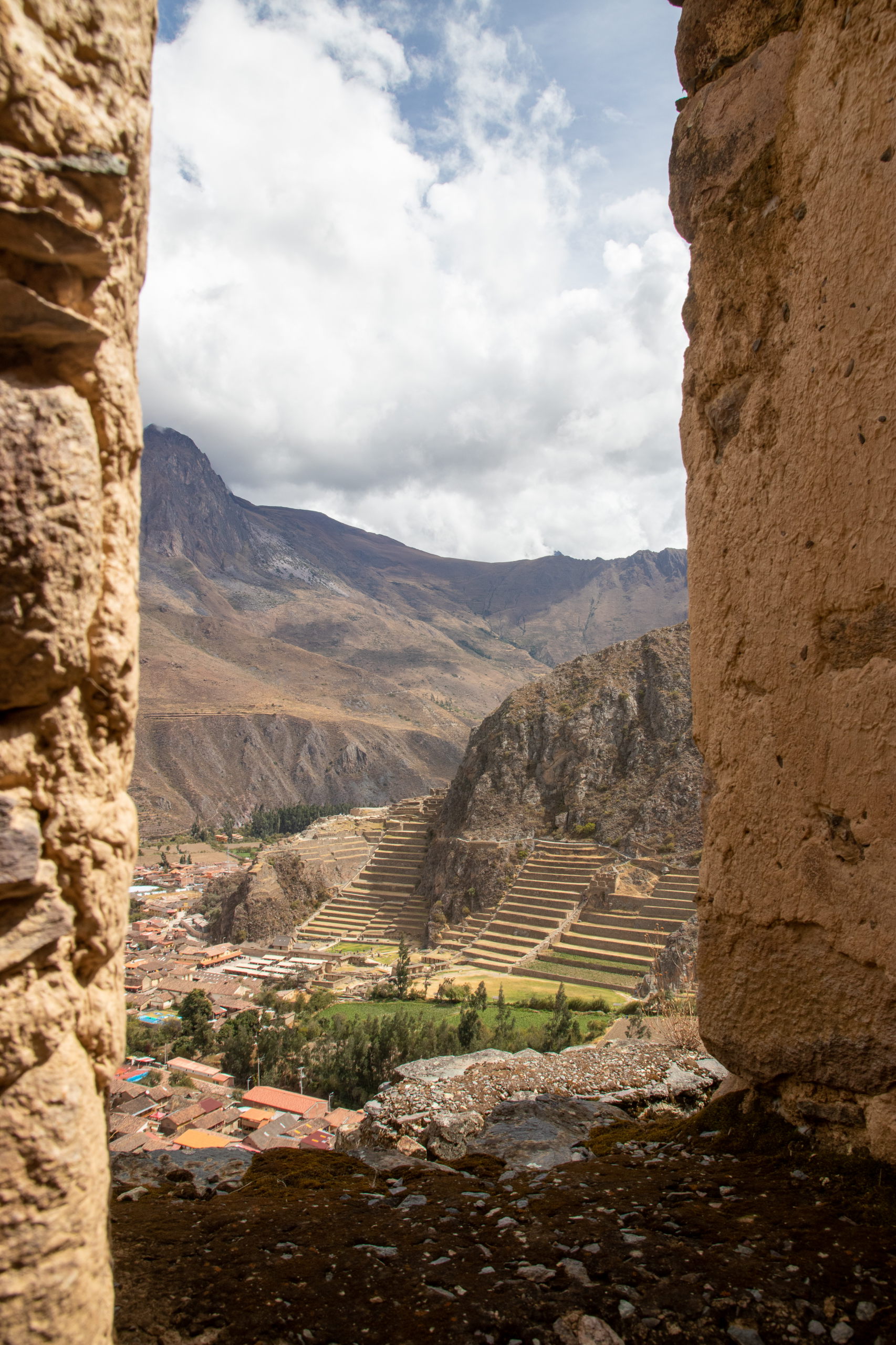 In Ollantaytambo gibt es die Ruinen einer ehemaligen Inka-Stadt zu besichtigen. Und genau das mache ich. Keine Ahnung warum, aber es zaubert mich ganz schön her. Mandarinen, Kekse und eine Cola stellen mich wieder her, sodass ich zum gegenüber liegenden Pinkuylluna hinauf gehen kann. Cool, es ist gratis. Man muss sich nur registrieren. Von hier hat man einen tollen Blick auf die gegenüberliegenden Ruinen von Ollantaytambo.