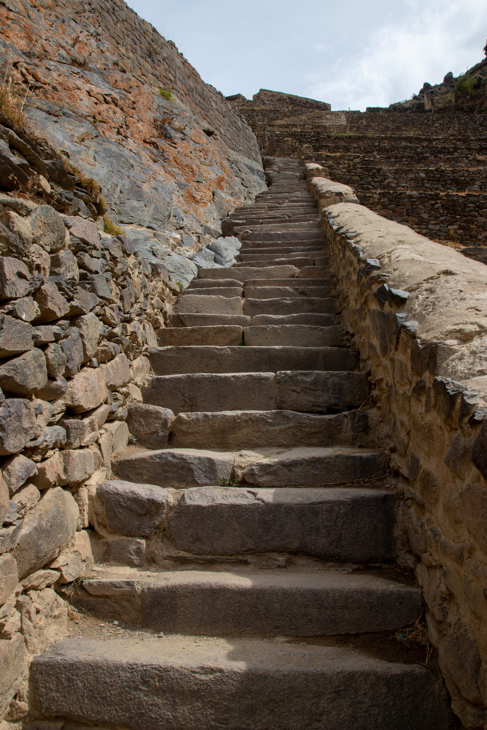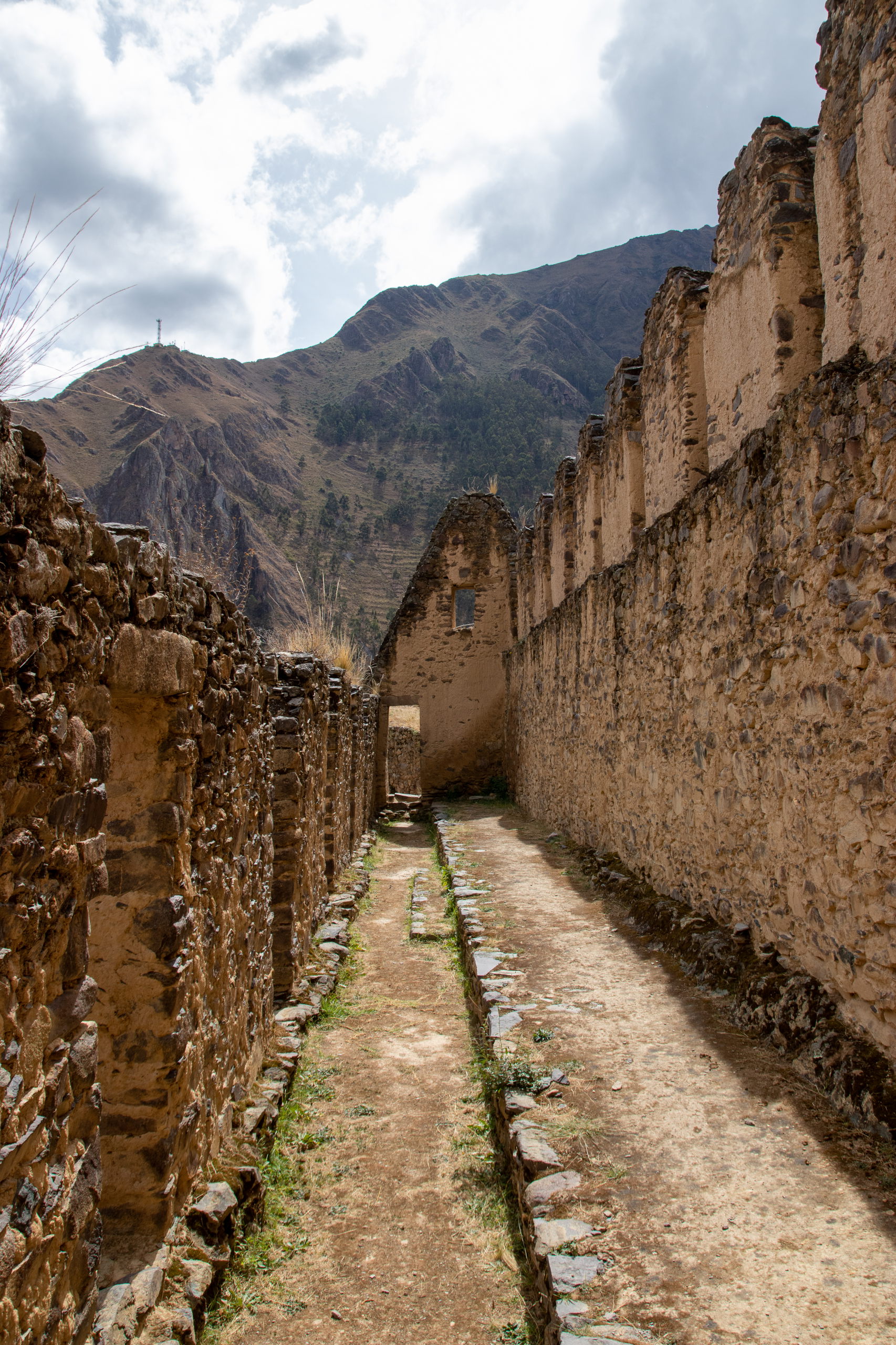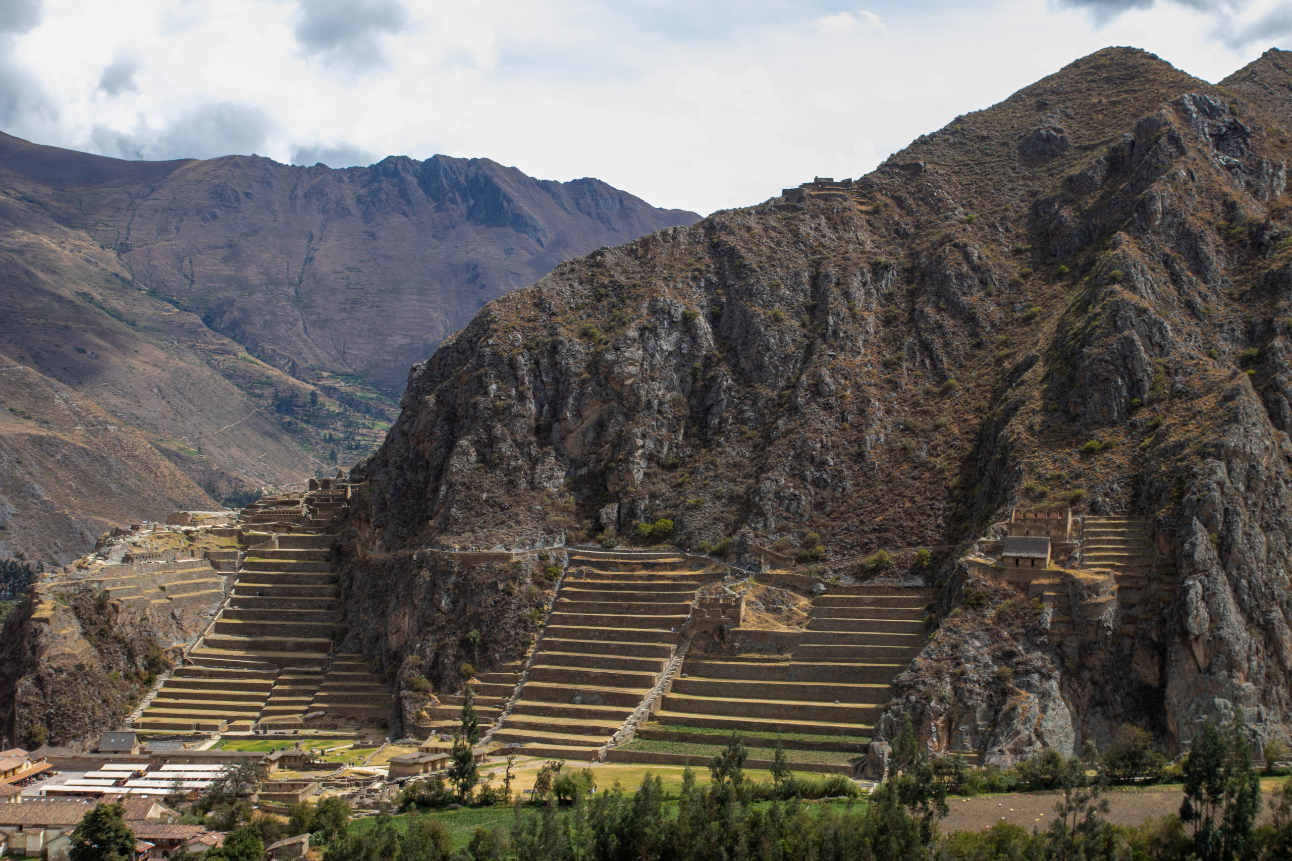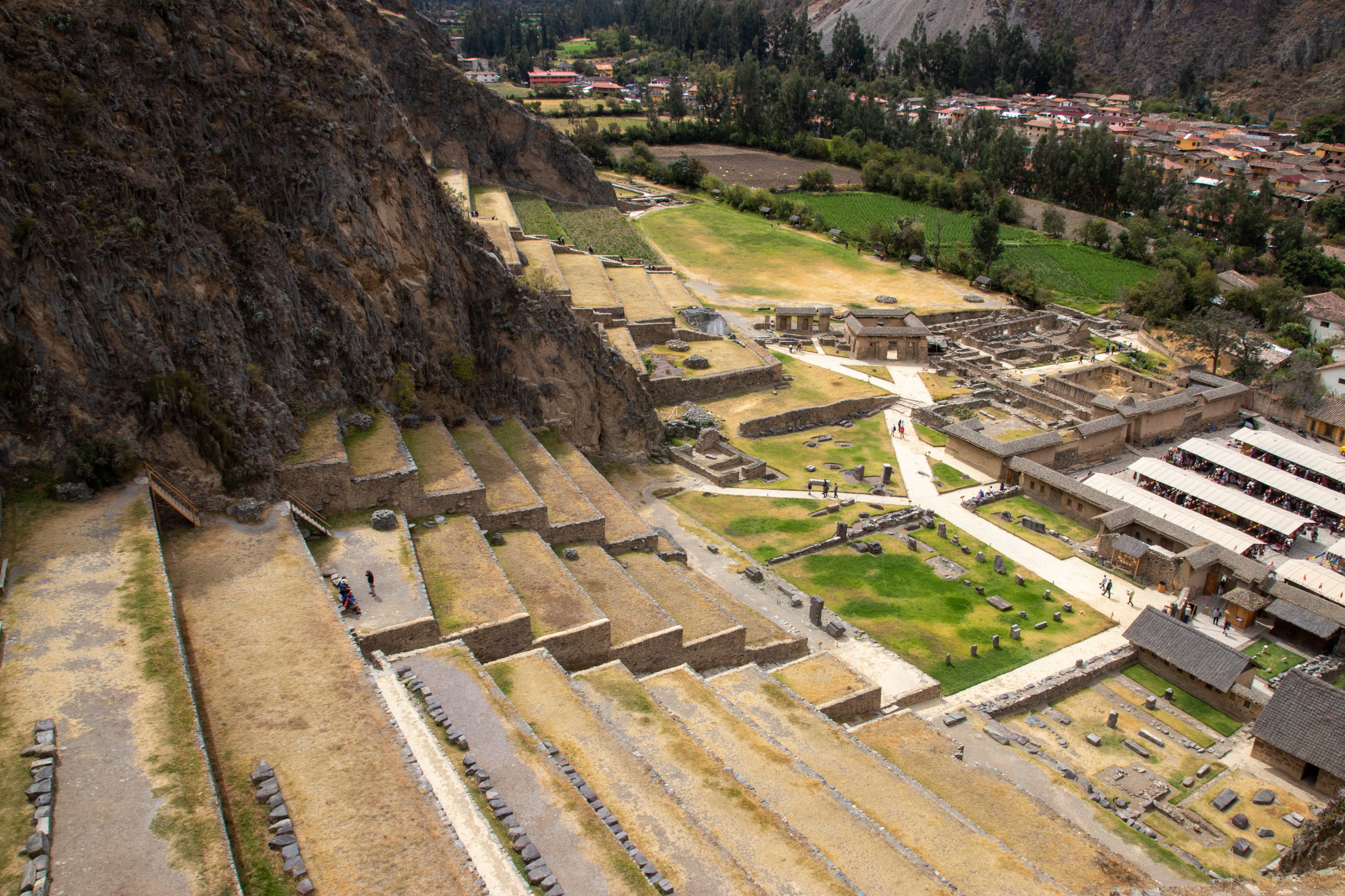 In Ollantaytambo gibt es die Ruinen einer ehemaligen Inka-Stadt zu besichtigen. Und genau das mache ich. Keine Ahnung warum, aber es zaubert mich ganz schön her. Mandarinen, Kekse und eine Cola stellen mich wieder her, sodass ich zum gegenüber liegenden Pinkuylluna hinauf gehen kann. Cool, es ist gratis. Man muss sich nur registrieren. Von hier hat man einen tollen Blick auf die gegenüberliegenden Ruinen von Ollantaytambo.