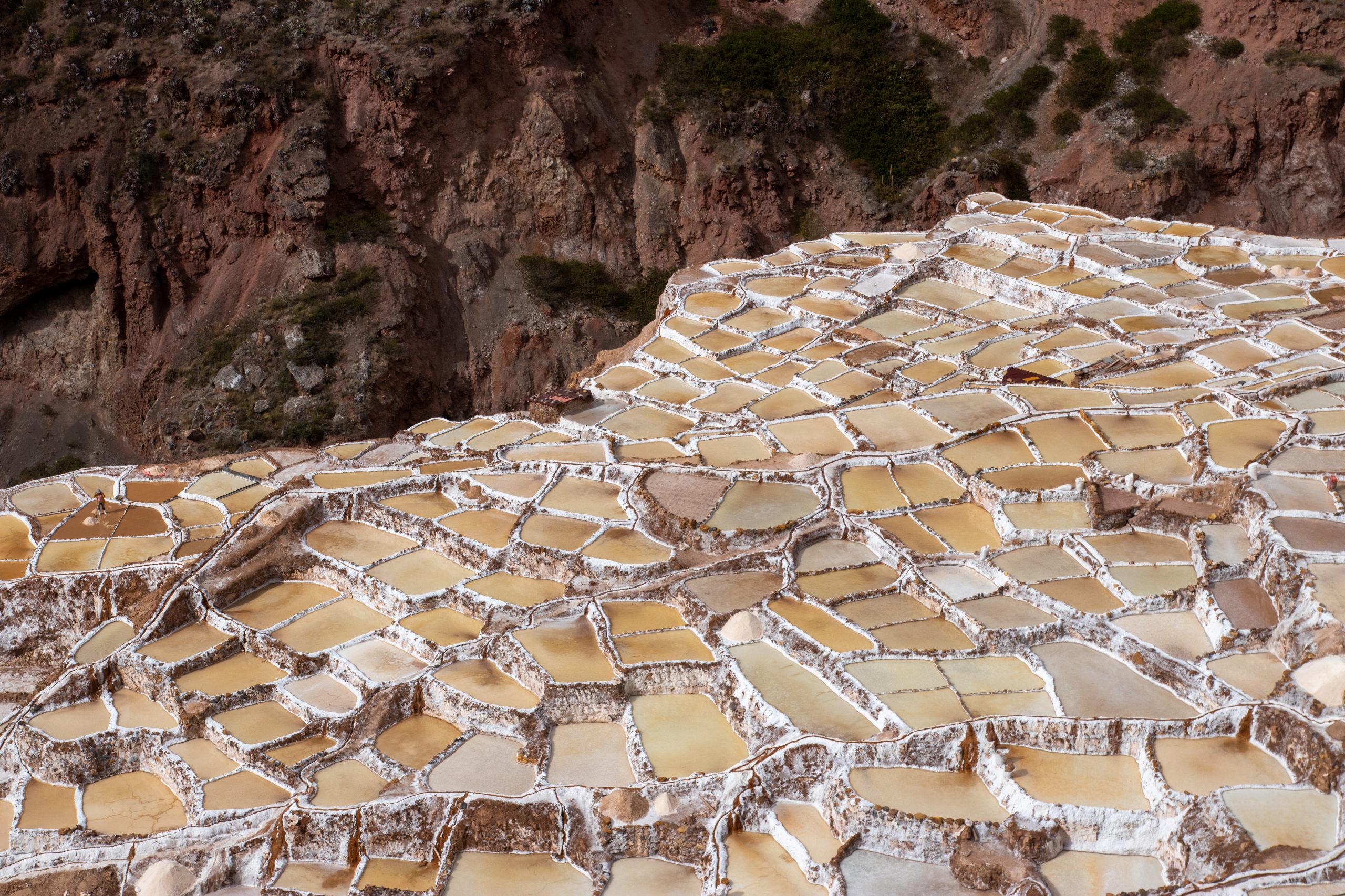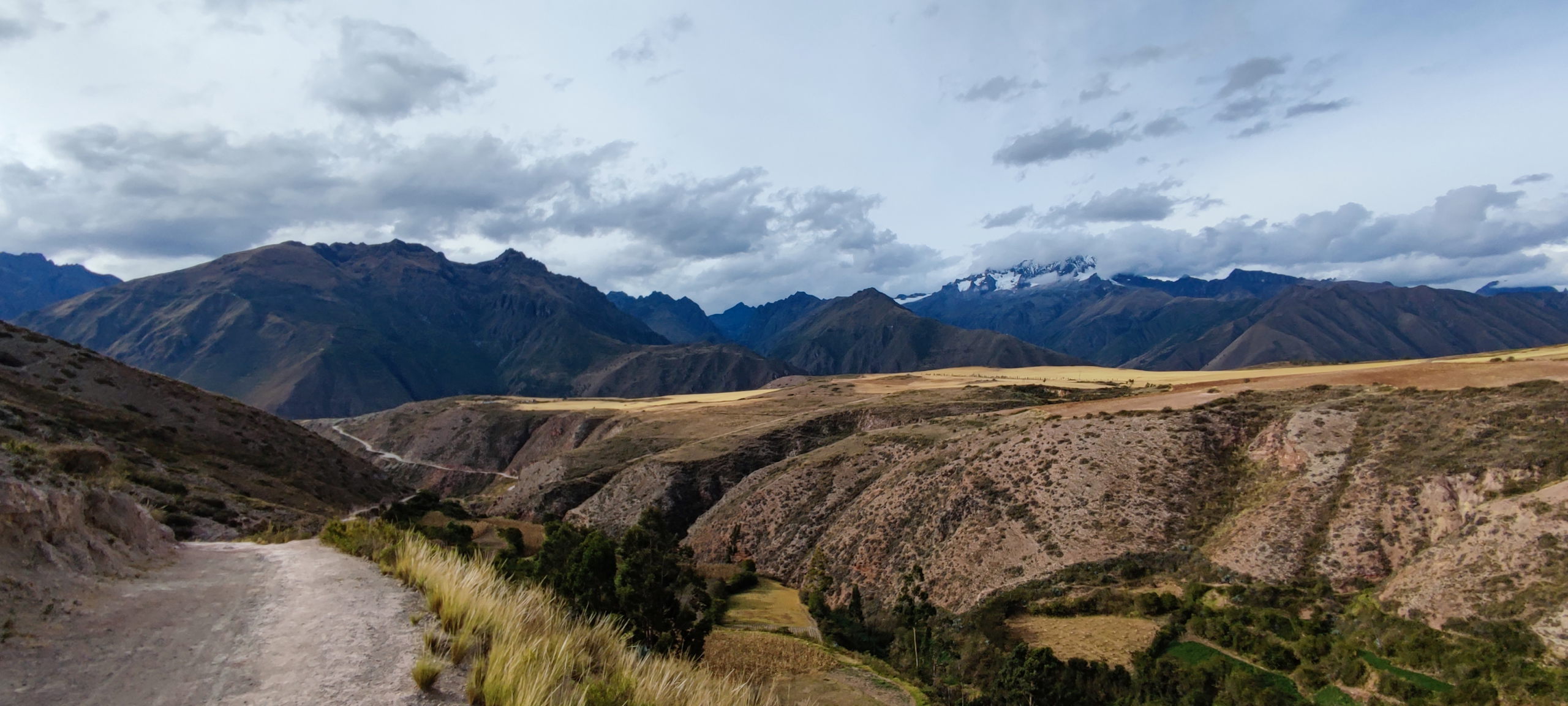 Nach nur einer Minute Warten am Terminal fahren wir los und ich steige in Media Luna aus, wo ich mit meiner Wanderung beginne. Gleich zu Beginn komme ich an einem Haus mit Cuy-Zucht vorbei. Mit Fell sehen die kleinen Tierchen deutlich niedlicher aus. Der Weg führt von der Rückseite zu den Salineras de Maras, wo mir dennoch ein alter Mann auf der Straße den Eintritt abknöpft. Ich habe Glück, denn nach einer Weile kommt sogar die Sonne heraus. Nachdem ich mich sattgesehen habe gehe ich weiter. Es kommt wieder dieses Wie-Geil-Ist-Das-Denn-Gefühl auf, denn die Landschaft ist einfach atemberaubend.