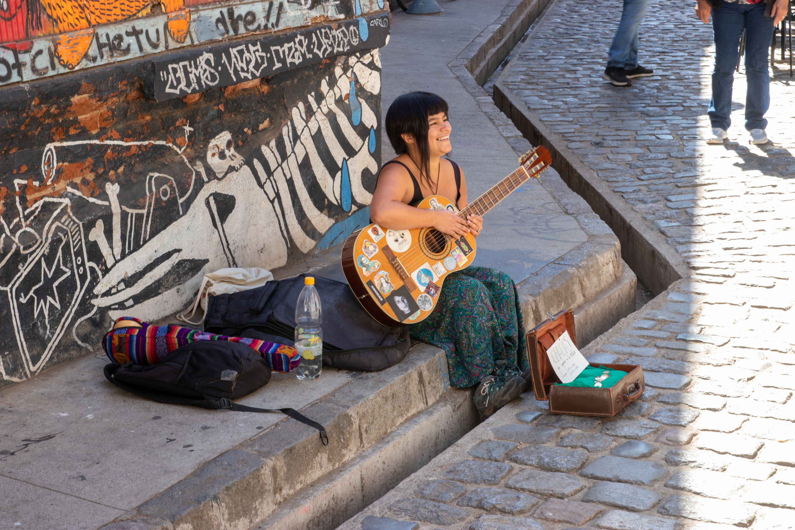 Ich kaufe mir ein Bier und einen Apfel und setze mich in einen Park. Ich tippe am Handy als sich plötzlich ein schwarzer Stiefel in mein Blickfeld schiebt. Ich blicke auf und da steht er, mein Freund und Helfer in grüner Uniform auf einem Motorrad. Er sagt mir, dass das Trinken von Alkohol in der Öffentlichkeit verboten ist und ich das Bier ausleeren soll. Ich fühle mich gleich viel wohler und bin froh, dass mir der Polizist geholfen hat. Zum Glück war es nur mehr ein kleiner Schluck. Der intensive Duft von einem Joint zieht vorbei, aber das juckt hier niemanden. Gras rauchen ist in Chile nämlich Volkssport.