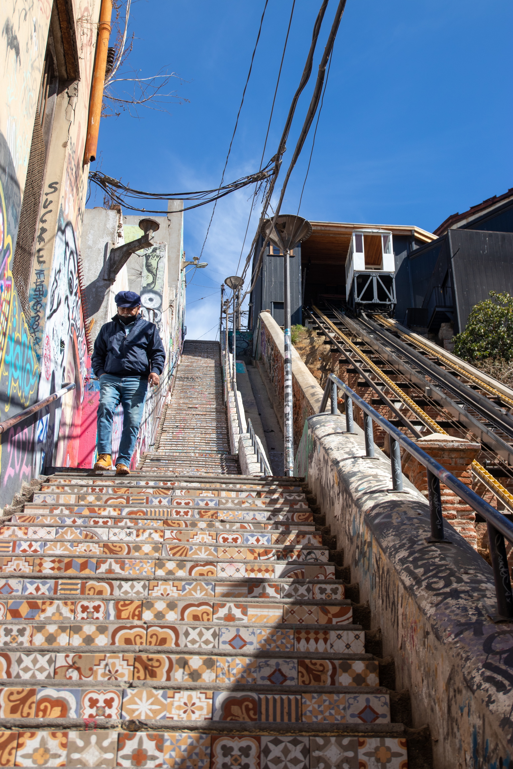 Ich gehe weiter durch die Stadt zum Mirador Barón am Cerro Barón und sehe in der Ferne Seelöwen in der Nähe vom Ufer. Da muss ich hin und kürze mit dem Funicular Barón ab. Diese Schrägaufzüge gibt es in der ganzen Stadt, leider sind nur mehr wenige in Betrieb. Ich gehe noch ein gutes Stück dem Meer entlang und dann zurück ins Hostel, wo ich etwas raste.