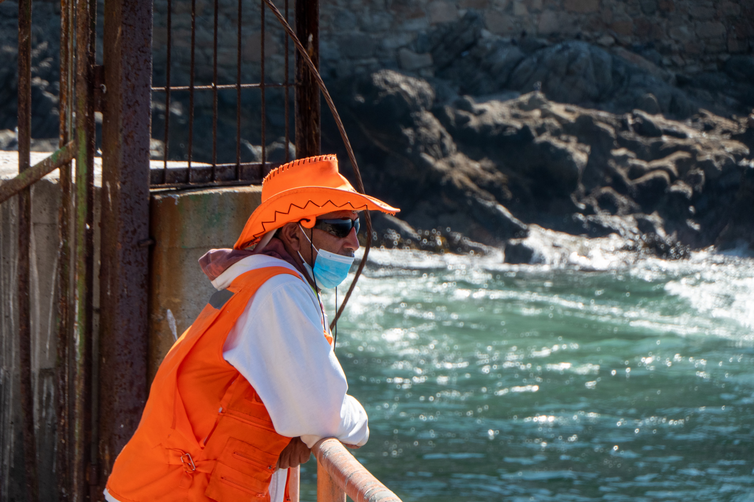Gemütlich beginne ich den Tag beim Frühstück und deponiere im Anschluss mein Gepäck. Die Sonne scheint und ich mache mich auf den Weg in die Stadt. Noch einmal zur Mole, vielleicht geht ja was. Es wird zwar vor mir salutiert, es geht aber trotzdem nichts. Zur Verabschiedung wird noch einmal salutiert. 😁 Die Fregatten sind mit voller Besegelung schon in der Bucht unterwegs, in der sich auch einige Kriegsschiffe tummeln. Ich gehe etwas dem Ufer entlang um näher ran zu kommen und gelange an einen kleinen Fischerhafen, wo ich mich in ein Restaurant setze. Frischer kann der Fisch wohl kaum sein. Ich bestelle Consommé de Mariscos, Schwertfisch, gemischten Salat und dazu einen Rotwein. Alles schmeckt hervorragend.