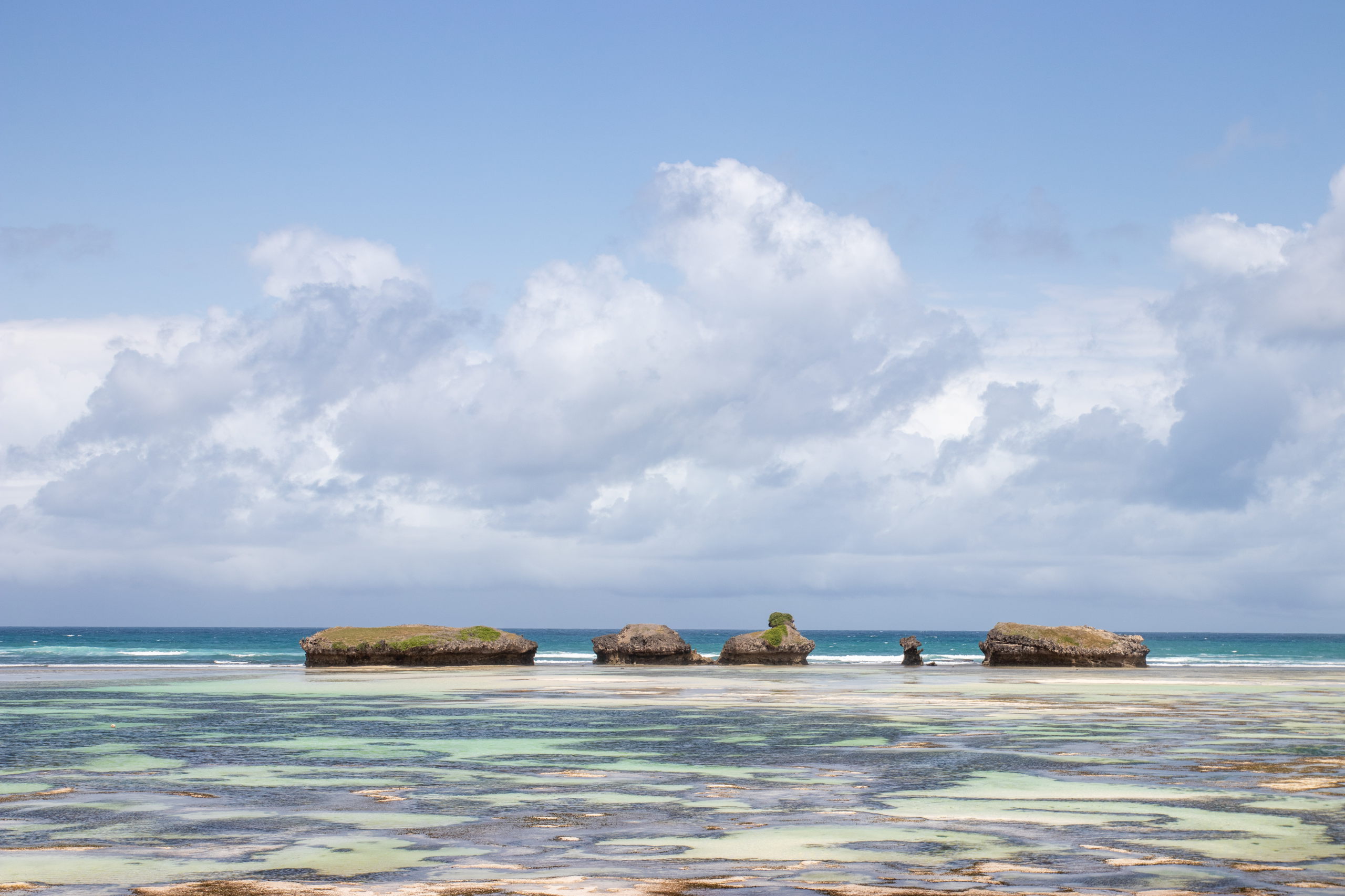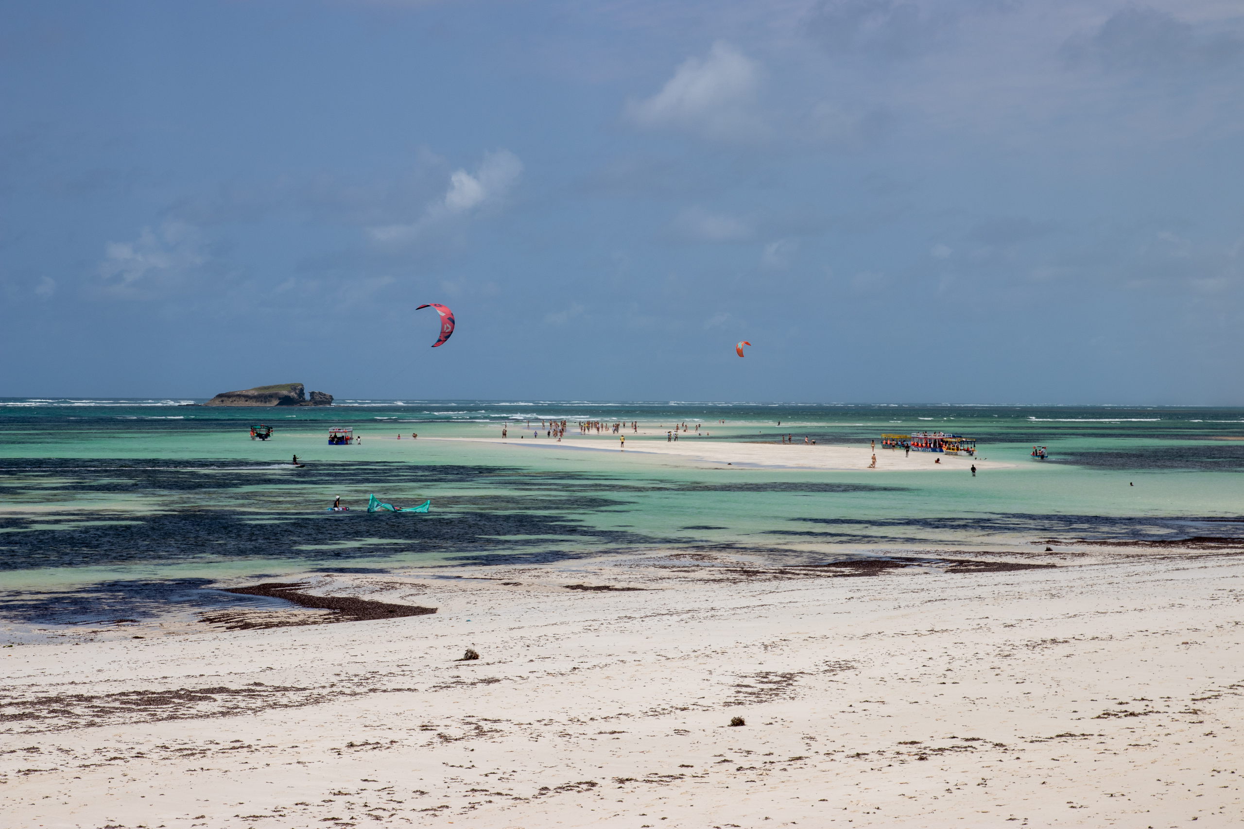 Gemütlich gehe ich zum Frühstück, das ich noch hinein verhandelt habe, und recherchiere ein wenig für heute. Nun aber ab zum Strand. Ebbe, das Wasser ist nun viel weiter draußen. Ich wate durch das glasklare Nass hinaus zu einigen Sandbänken, wo es gerade tief genug zum Schwimmen ist. Zurück in der Unterkunft drehe ich noch ein paar Runden im Pool und lege mich zum Trocknen auf eine Sonnenbank. Einmal wenden, trocken.