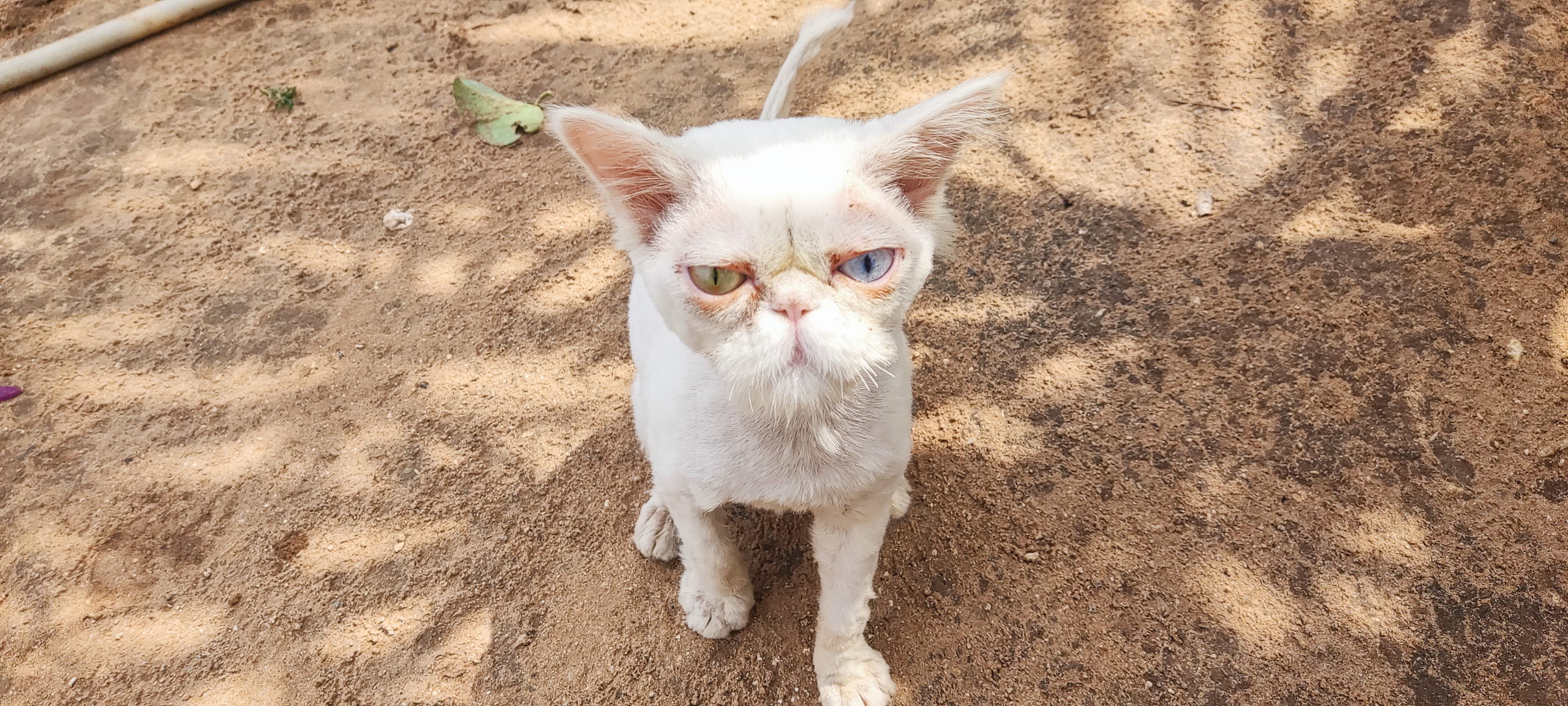 Obwohl mich der Ruf der Tiere weckt, schlafe ich noch eine Weile und setze mich zum Frühstücken an den Pool. Beim Packen finde ich die Augenmuschel für die Kamera wieder. Wuhu! Wie doof kann sich ein Teil im Rucksack verstecken. Sche… Murphy’s Law. Mit einem Boda Boda fahre ich zur Hauptstraße und dann geht es mit einem Matatu weiter nach Watamu. Mit einem Boda Boda rattere ich zum Candys Beach Backpackers, das sehr schön direkt am Meer liegt, aber entgegen ihrer Auskunft nicht wirklich gut geeignet ist, ein Zelt aufzustellen. Außerdem gibt es keinen Weg zum Meer, da es auf einer Klippe liegt. Ich bin nicht 100% überzeugt und beschließe mir das bei einem Faxe 10% zu überlegen, als ich etwas maunzen und raunzen höre. Und dann sehe ich sie. Grumpy Cat. Sie ist gar nicht tot. OK, sie ist alt und hat inzwischen weiße Haare bekommen, aber sie macht noch einen ziemlich fitten Eindruck. Vermutlich war ihr der Rummel um sie zu viel und sie hat sich nach Kenia zurückgezogen. Nach ein paar Streicheleinheiten wende ich mich wieder der Herbergssuche zu. Eine andere Unterkunft ist schnell gefunden und nachdem sich eine fette Wolke abgeregnet hat und das Bier aus ist, mache ich mich mit einem Boda Boda auf den Weg zum Watamu Beach Cottages, wo ich in einem eigenen Bereich mein Zelt aufbaue. Es ist noch voll mit rotem Staub aus Kimana.