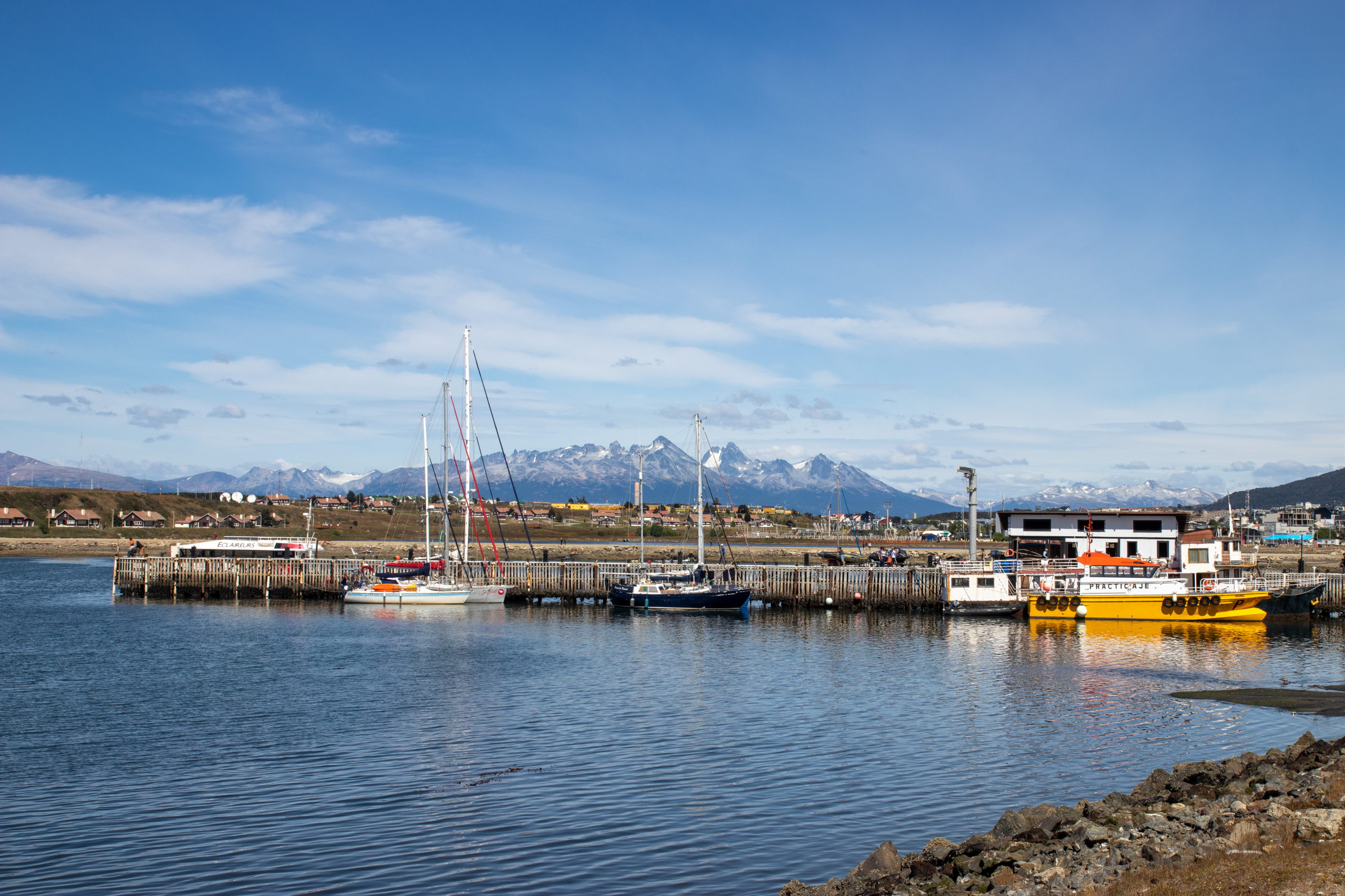 Mit fast einer halben Stunde Verspätung heben wir um zwei Uhr nachts von Santa Cruz de la Sierra ab. Der Sitzplatz neben mir ist frei und ich kann es mir bequem machen. So bequem, dass ich sogar den Service verpenne. 😁 Pünktlich um halb sechs Uhr setzen wir am AEP in Buenos Aires auf. Mit dem Gepäck geht es durch den Zoll zur elend langen Schlange von Aerolineas Argentinas, um das Gepäck aufzugeben. Dann durch die Sicherheitskontrolle und zum Gate gehuscht und um kurz vor acht Uhr fliege ich erneut nach Ushuaia. Morgen vor einem Jahr war ich gerade von zuhause aus unterwegs zum ersten Stop meiner Weltreise. Dieses Mal ist der Anflug spektakulärer, da die Sicht auf die mit noch etwas Schnee bedeckten Berge frei ist. Butterweich landen wir um elf Uhr und nach nur einer halben Stunde düse ich mit dem Taxi zur Unterkunft, wo ich herzlich empfangen werde.